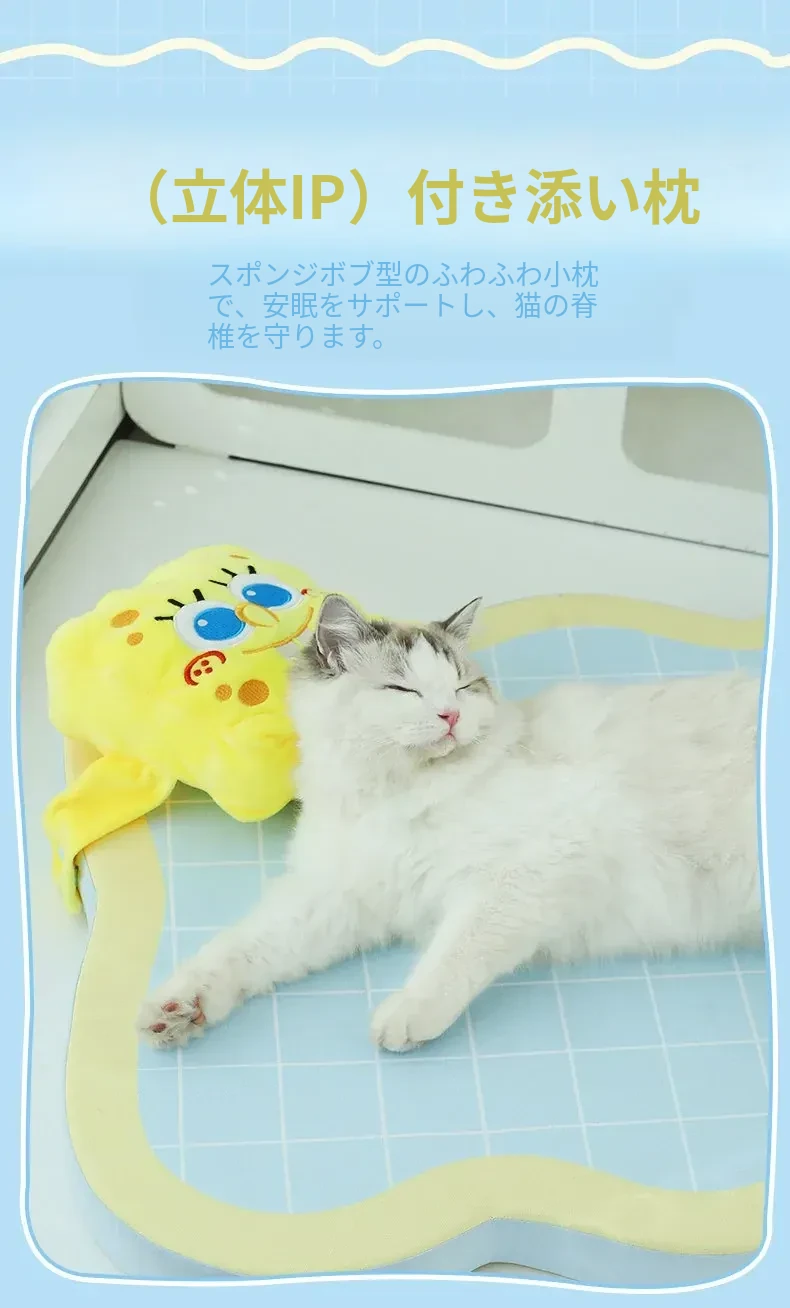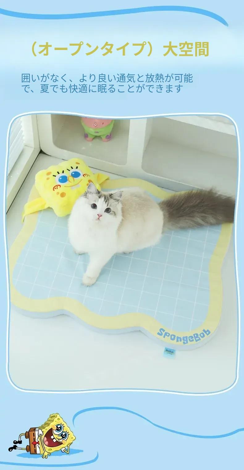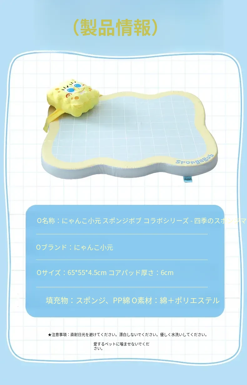 喵小元×海绵宝宝コラボ!猫と犬のための夏用クールマット、滑り止め付きで快適な睡眠環境を提供します。愛するペットのために、心地よいひんやり感をお届け!