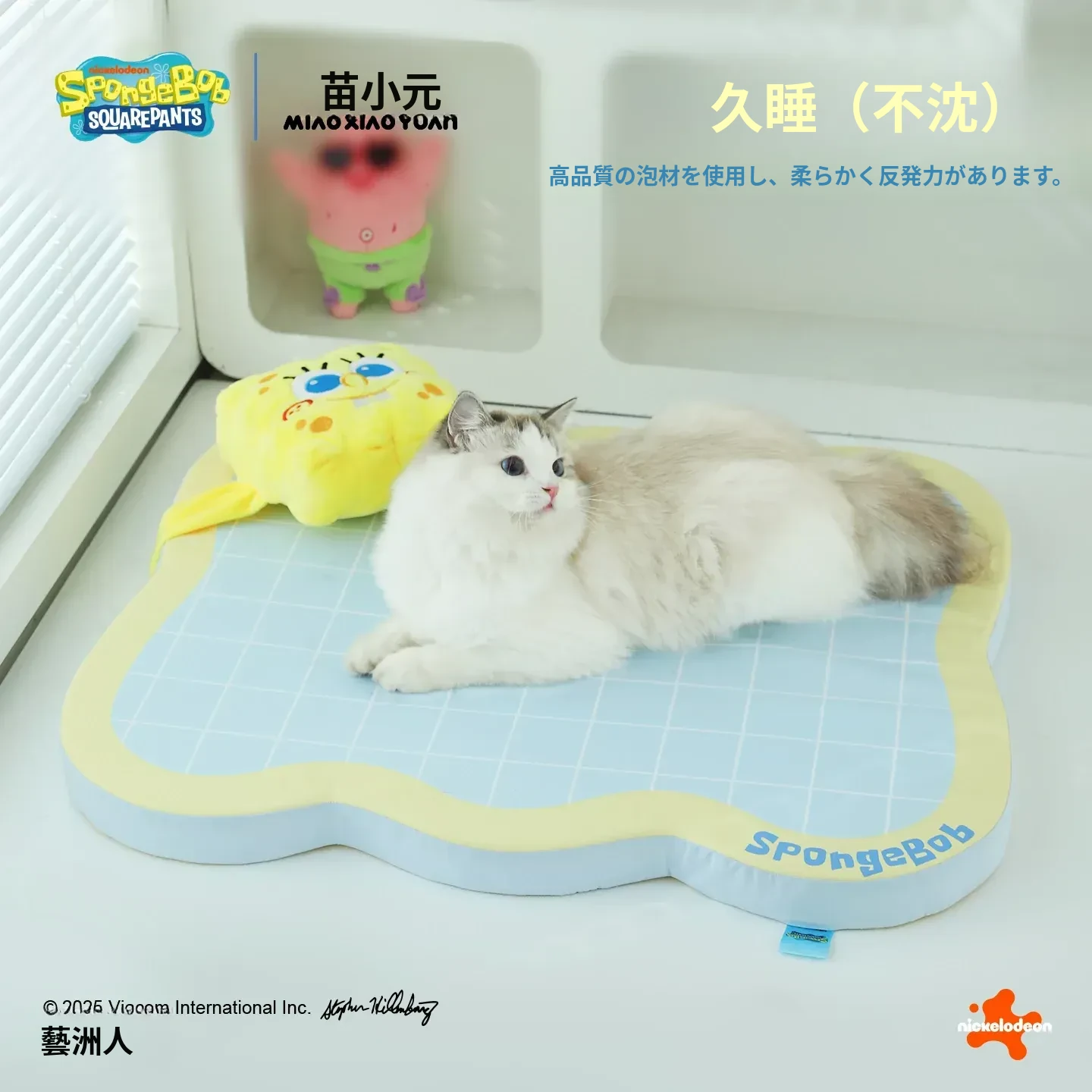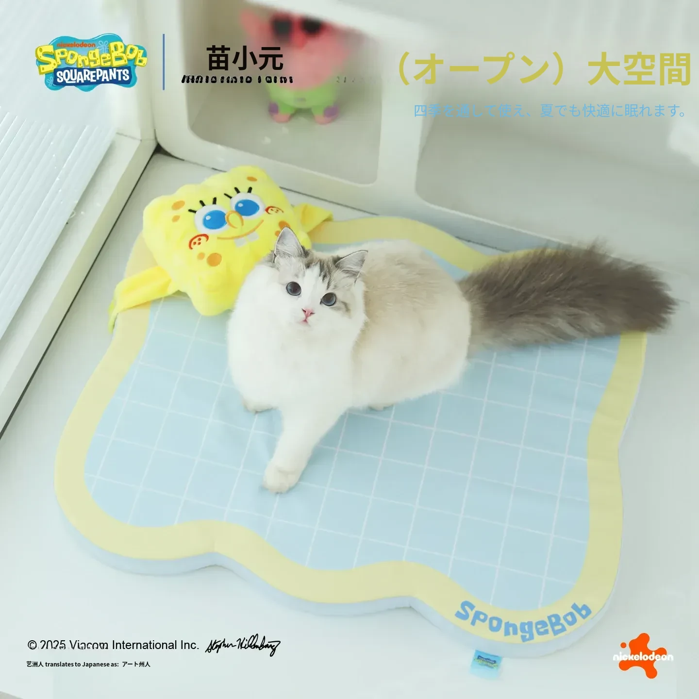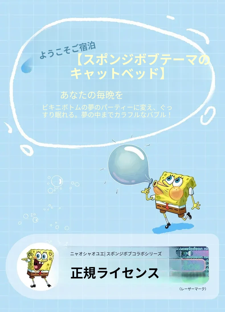 喵小元×海绵宝宝コラボ!猫と犬のための夏用クールマット、滑り止め付きで快適な睡眠環境を提供します。愛するペットのために、心地よいひんやり感をお届け!