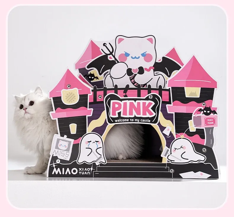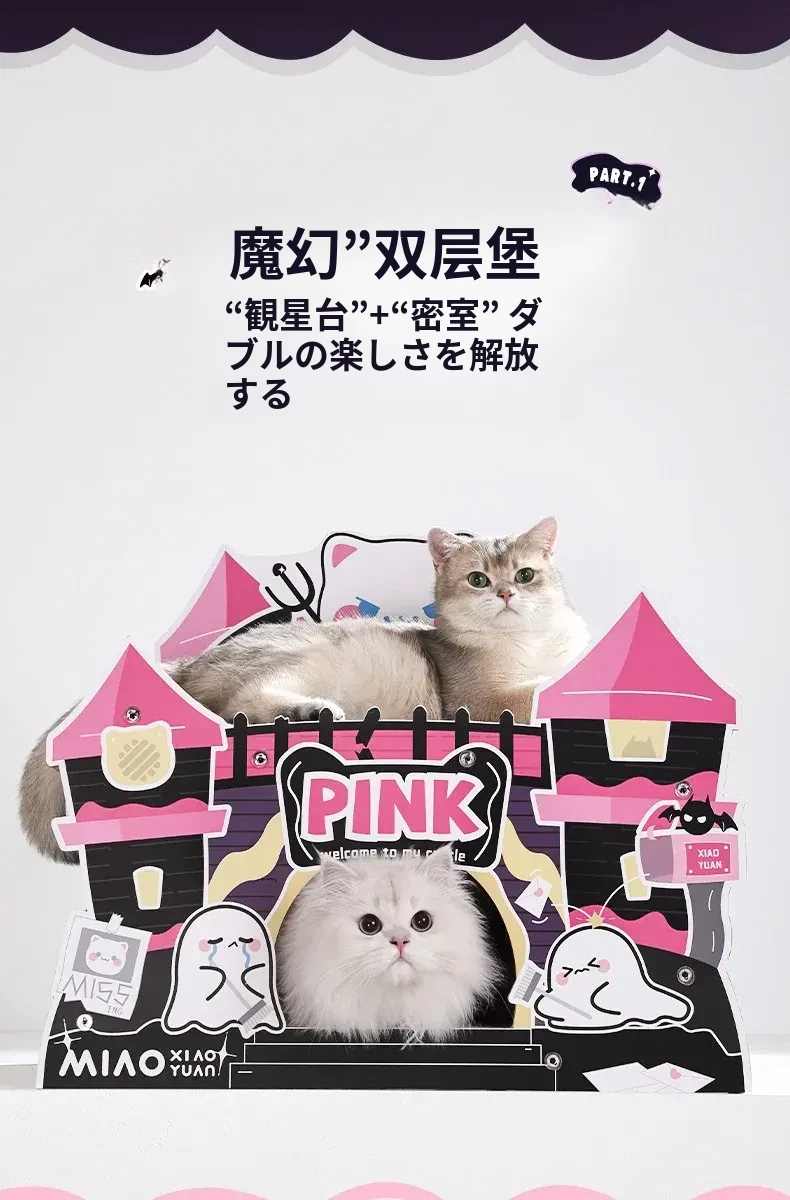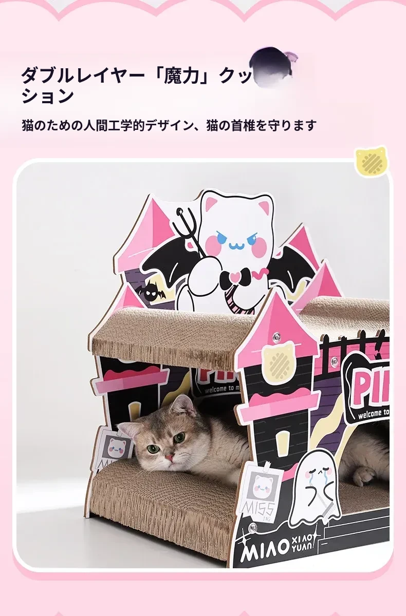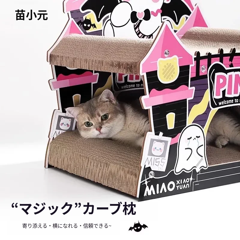 ニャオシャオユアン 猫用2層キャットスクラッチャー&ベッド 一体型 猫爪磨きマット 四季通用 ペット用 ふわふわ快適な猫の隠れ家 かわいいデザインで猫ちゃんも大満足!