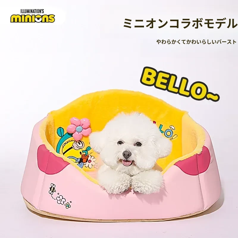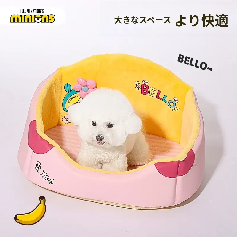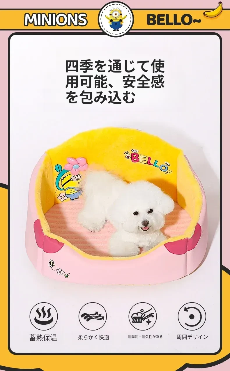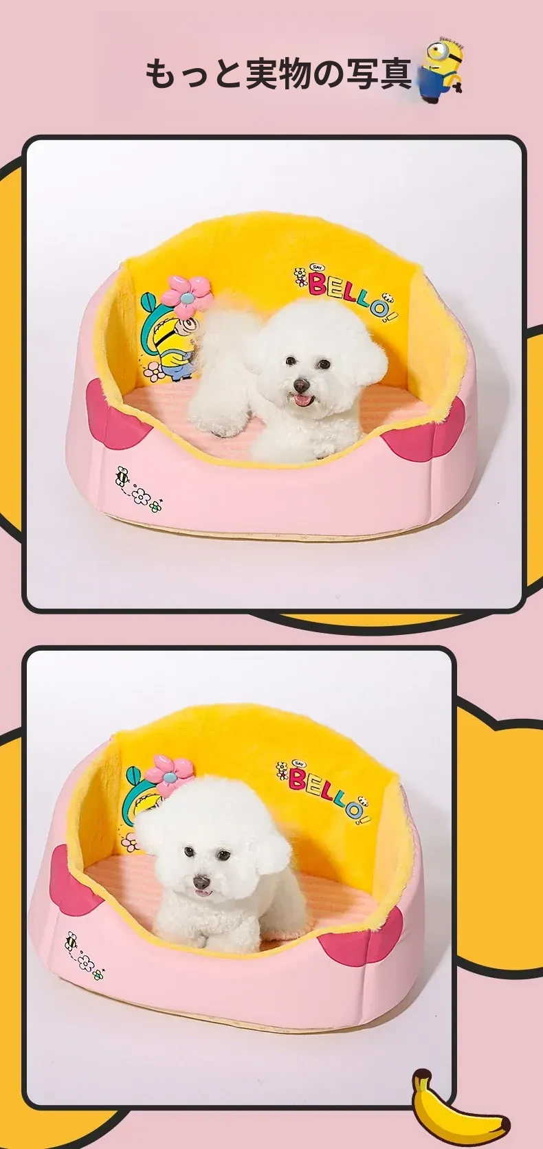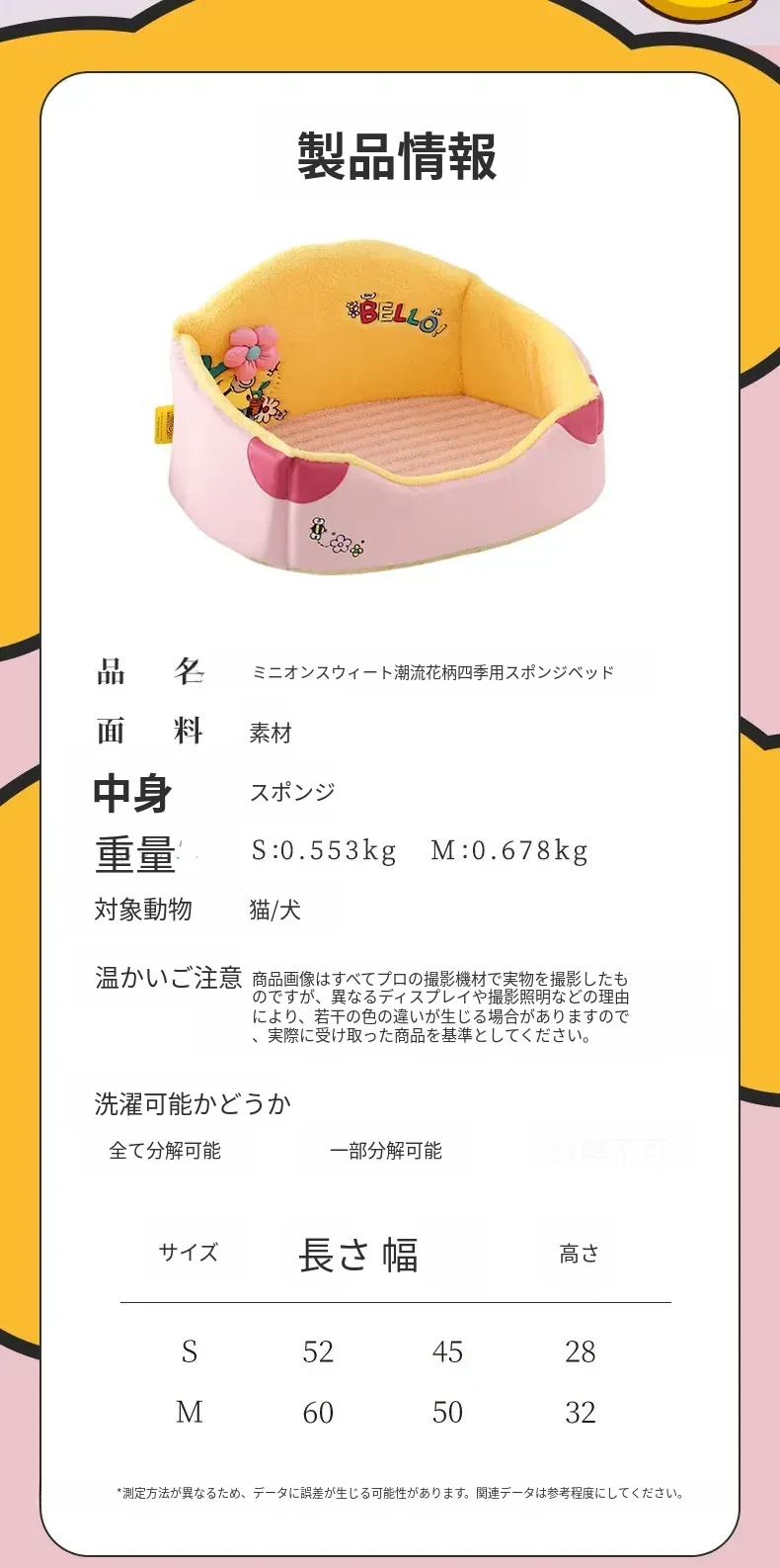 小さなミニオンのフラワー海綿ペットベッド - 夏にぴったりの涼感マット!中小型犬・猫用、四季折々の快適な眠りをサポートします。可愛さと機能性を兼ね備えたベッドで、あなたのペットも大満足!
