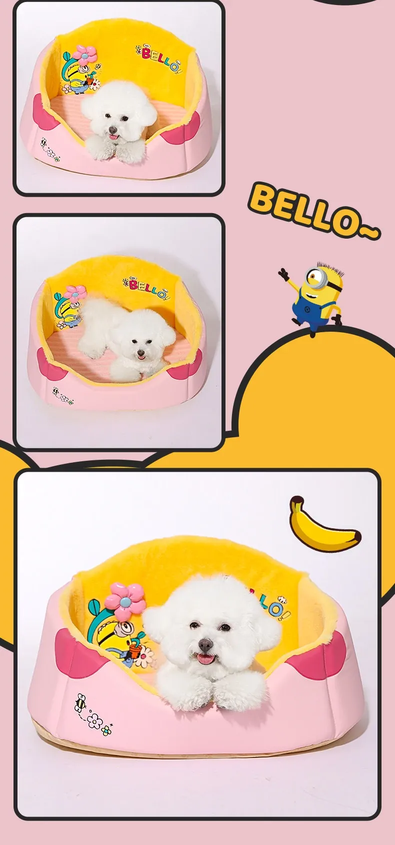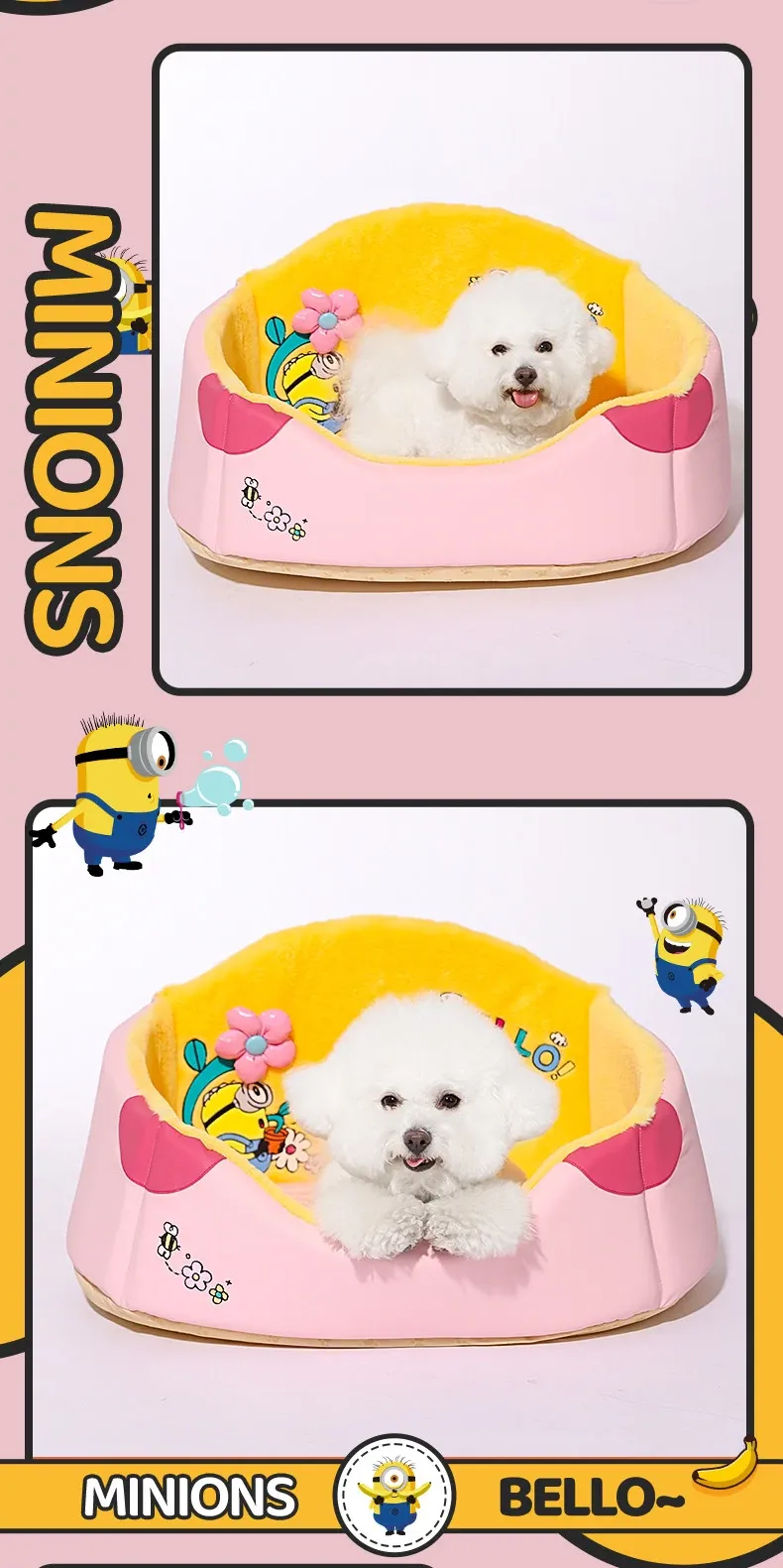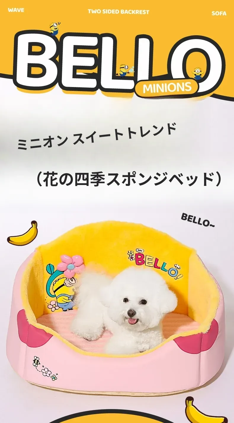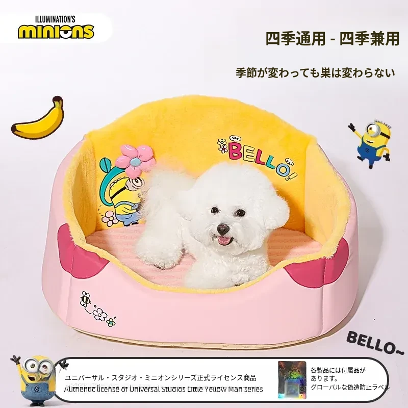 小さなミニオンのフラワー海綿ペットベッド - 夏にぴったりの涼感マット!中小型犬・猫用、四季折々の快適な眠りをサポートします。可愛さと機能性を兼ね備えたベッドで、あなたのペットも大満足!