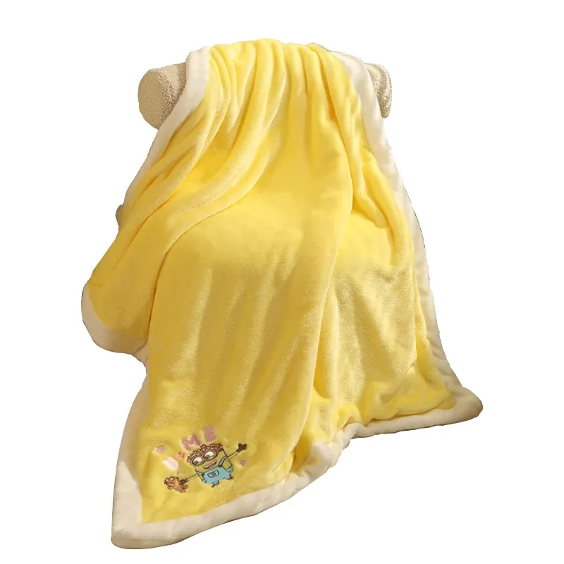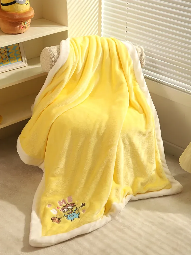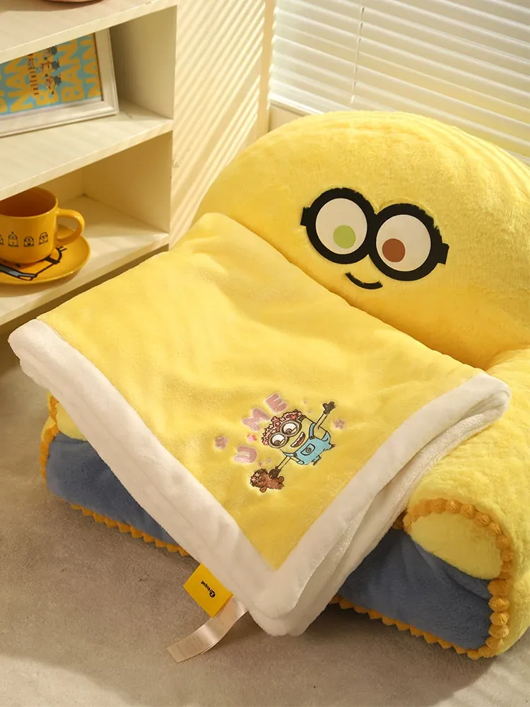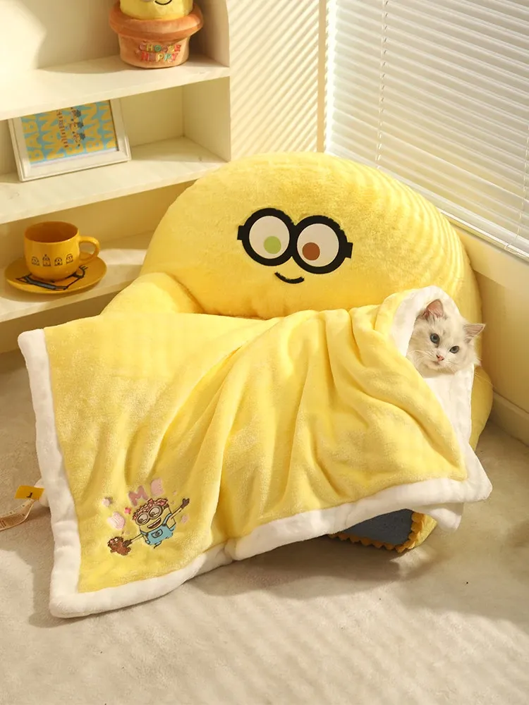 可愛いミニオンズシリーズのボブ&ティムペット用ブランケット!犬猫のための柔らかいお昼寝マット。四季を通じて使えるエアコンカバーとしても最適!愛するペットにぴったりの快適な眠りを提供します。