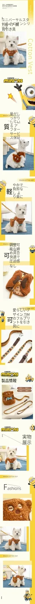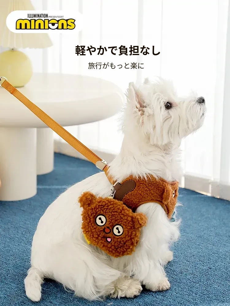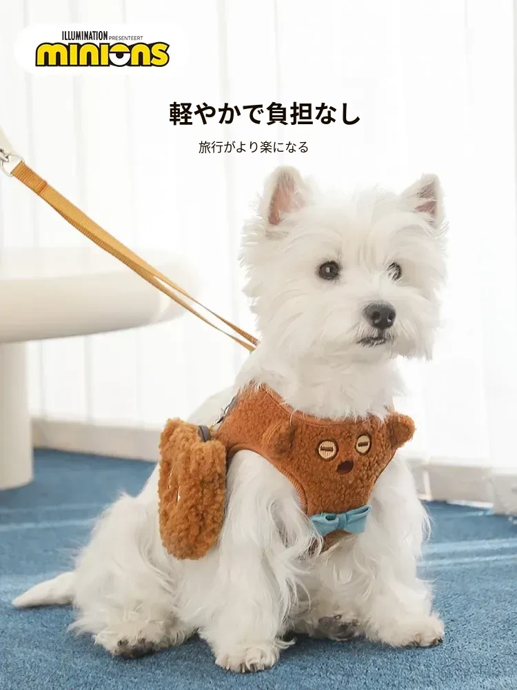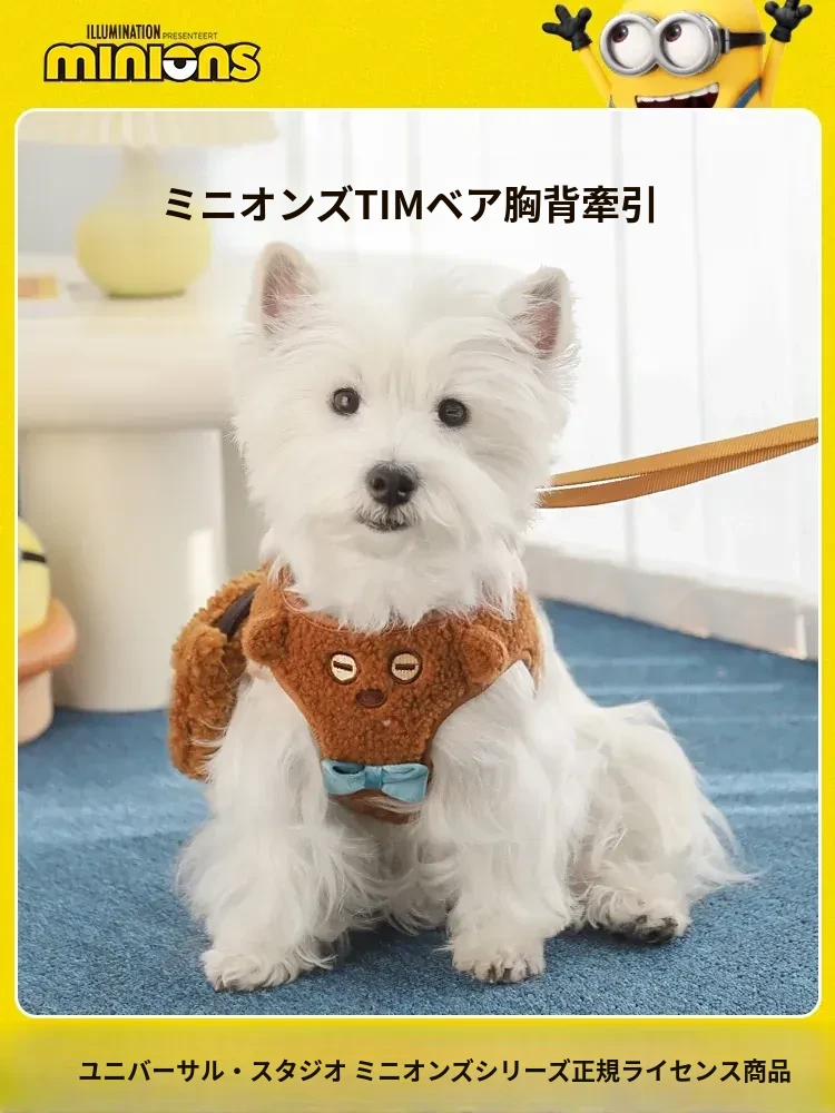 小黄人シリーズ TIMクマ犬用胸部ハーネス&リードセット - あたたかいフリース素材で小型・中型犬に最適!調整可能でお散歩も楽々!