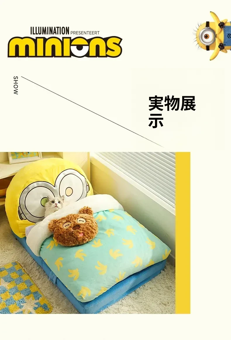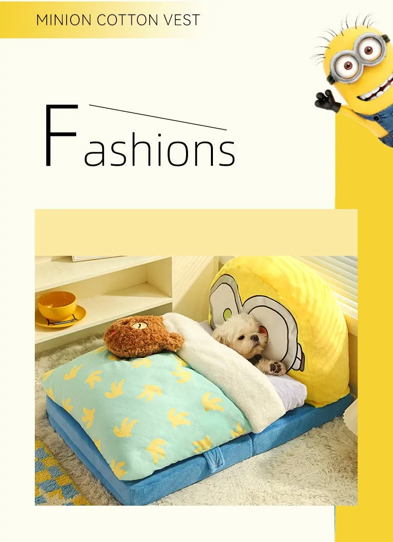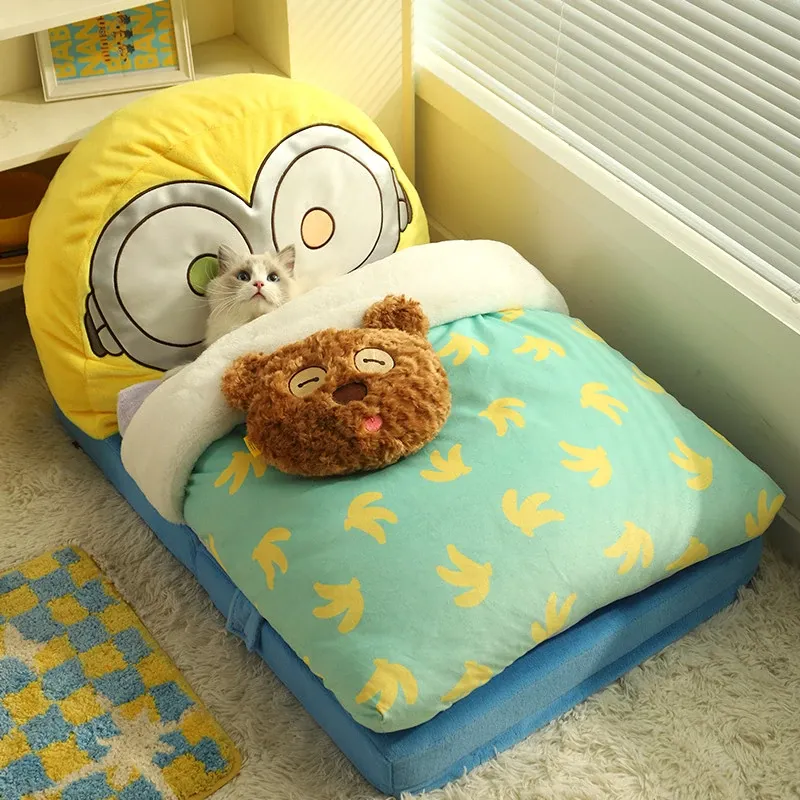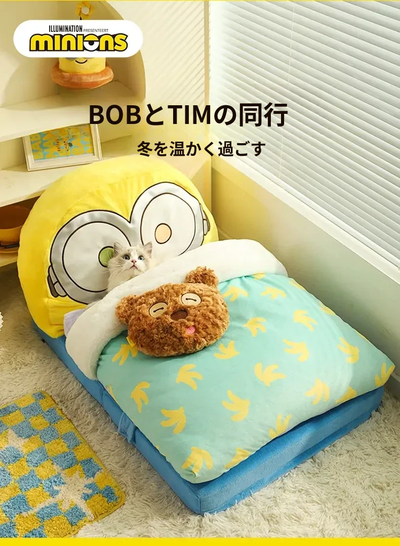 ミニオンTIMとボブのペット用深い眠りのソファ型ベッド!快適な猫の巣、子猫や小型犬に最適な居心地の良いおうち。あなたの愛するペットに最高の快適さを提供します!