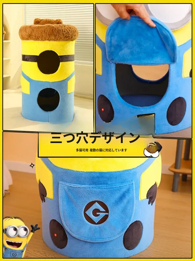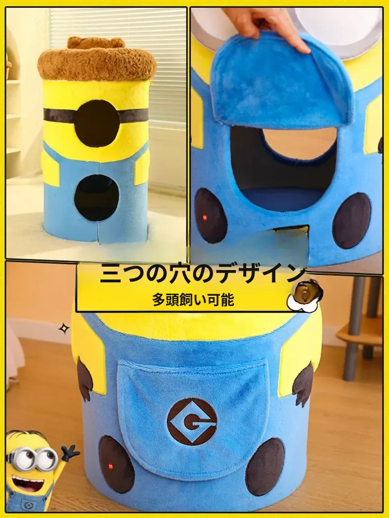 ミニオンシリーズのキャットハウス|四季対応のキャットマット|多層構造で遊び心満載!|子猫も安心してくつろげるキャットタワー&爪とぎ付きの快適空間!