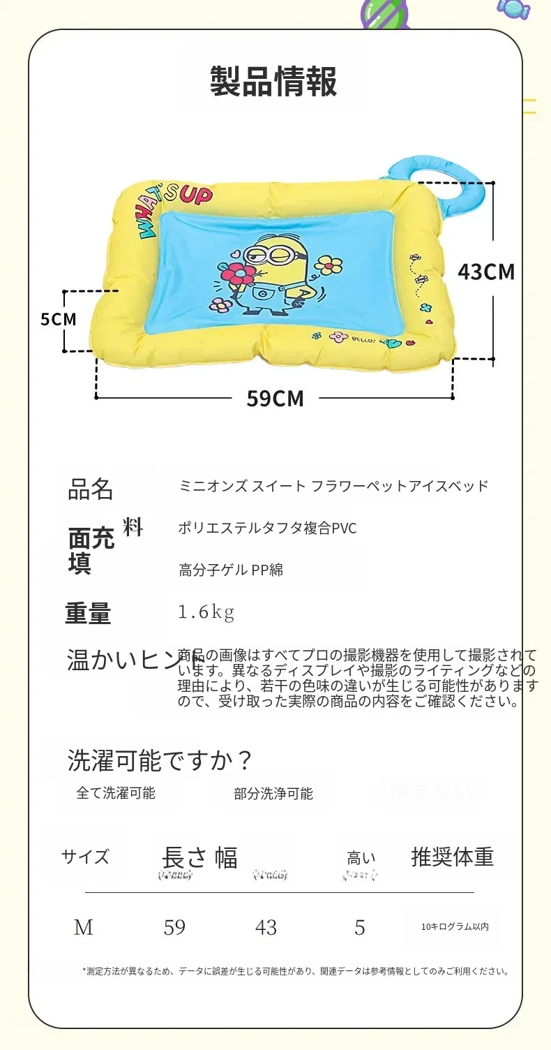 小さなミニオンペットアイスパッド|猫ちゃんのための夏用冷却マット|快適な寝床で涼しさをキープ|犬も喜ぶ!夏の睡眠マットとして最適です!