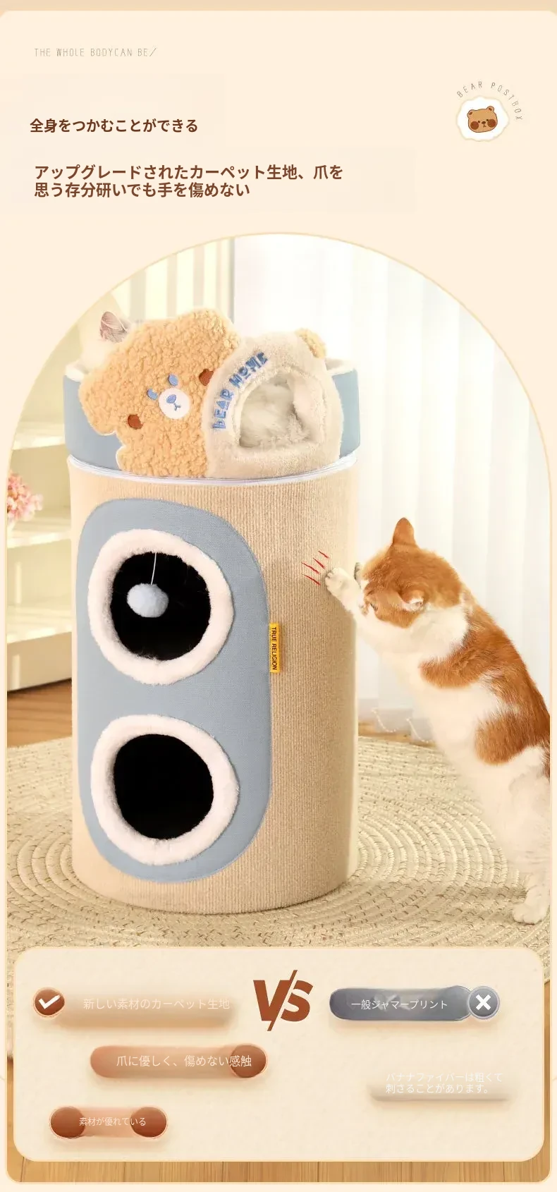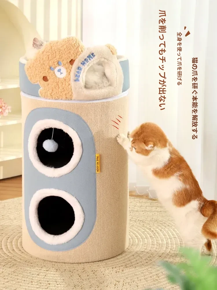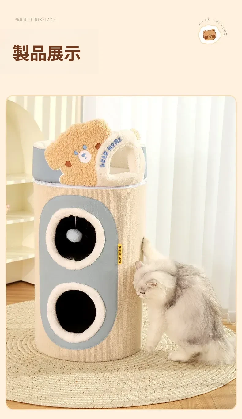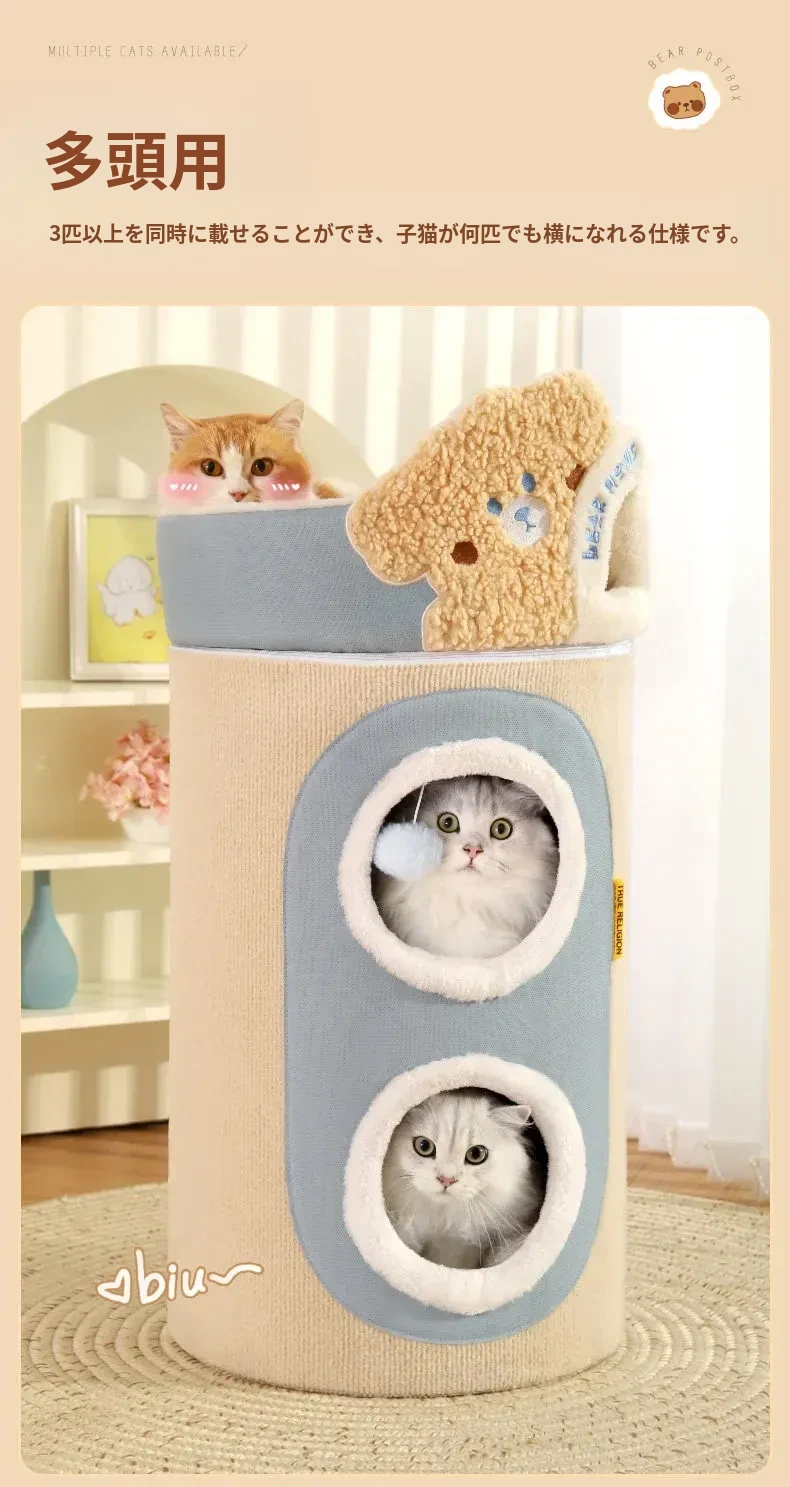 (大ヒットアップグレード版)クマ型3層キャットハウスキャットタワー(外側は爪とぎ可能、キャットハウスは取り外し可)