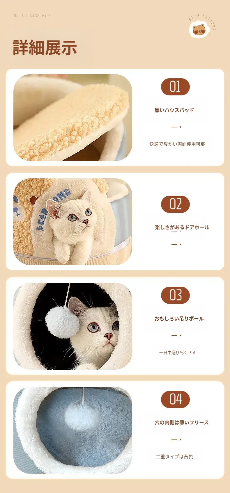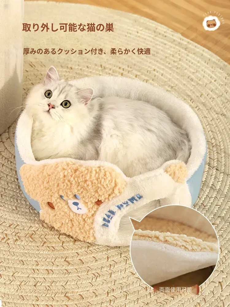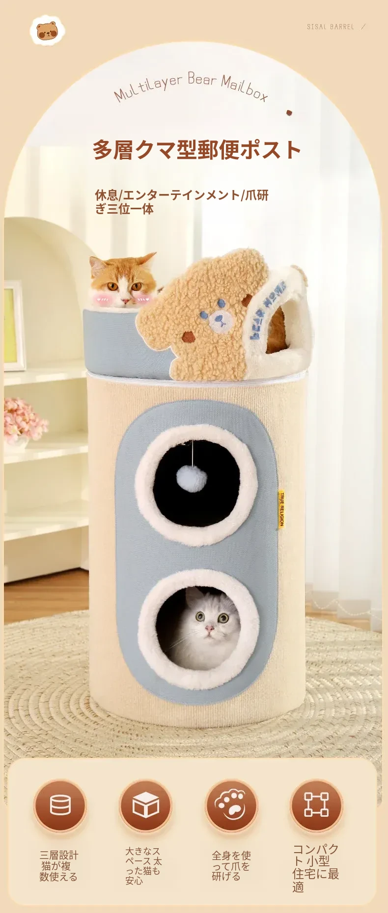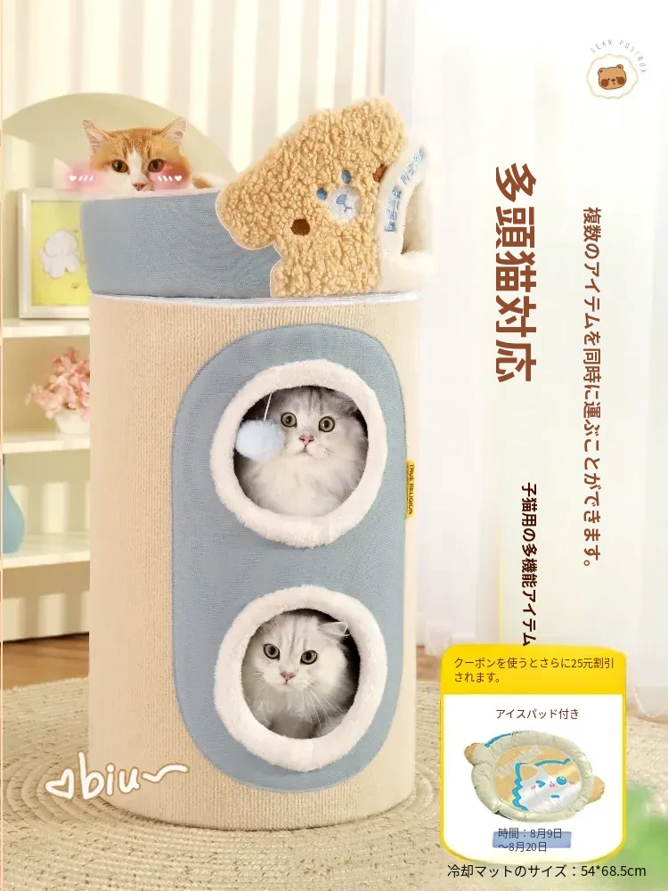 (大ヒットアップグレード版)クマ型3層キャットハウスキャットタワー(外側は爪とぎ可能、キャットハウスは取り外し可)