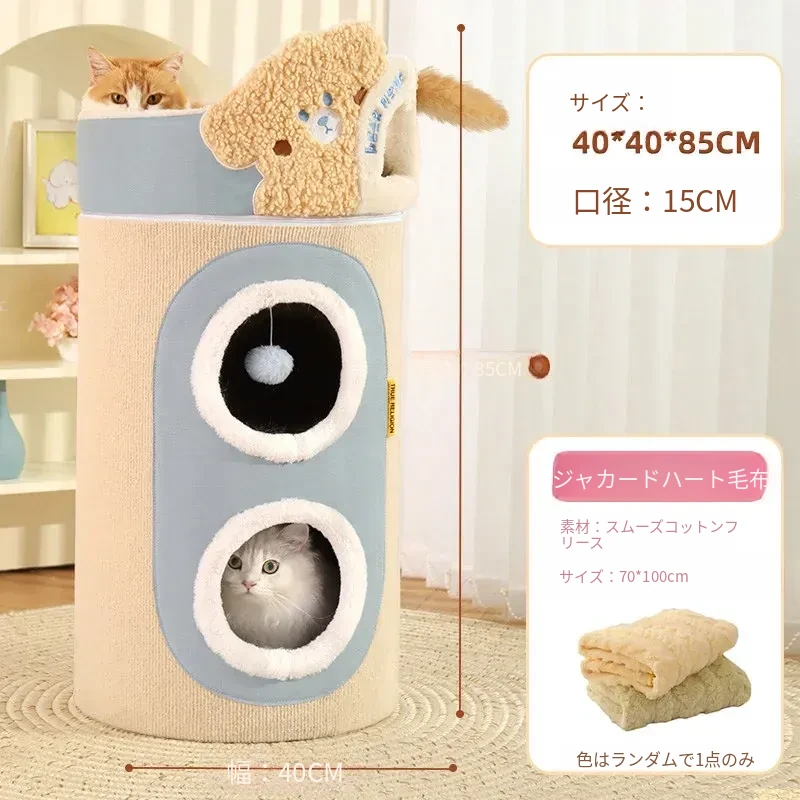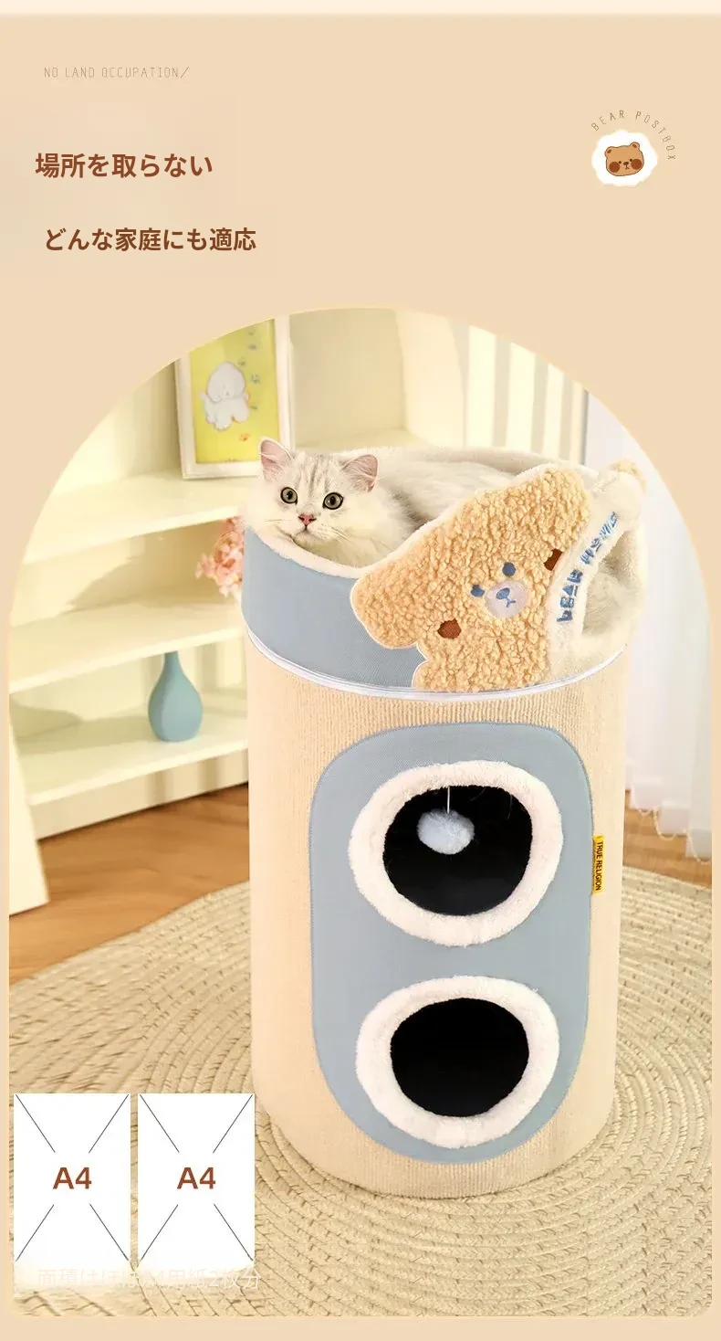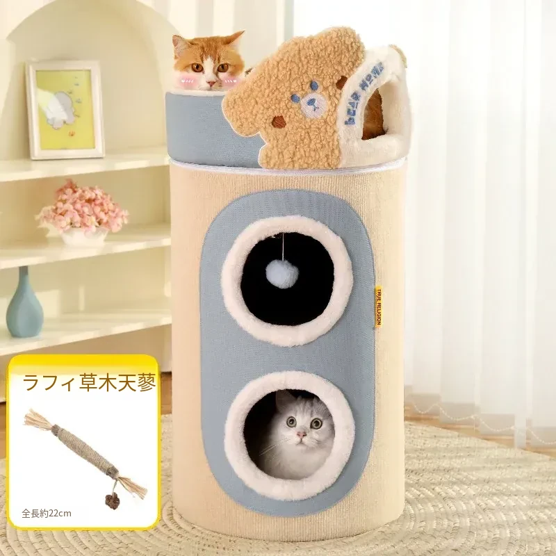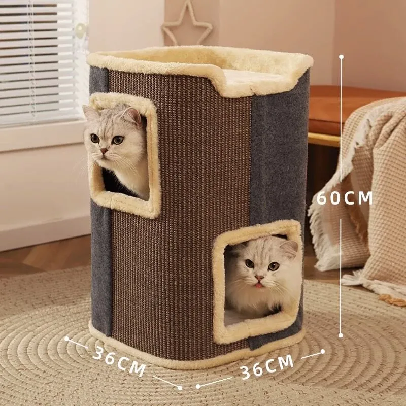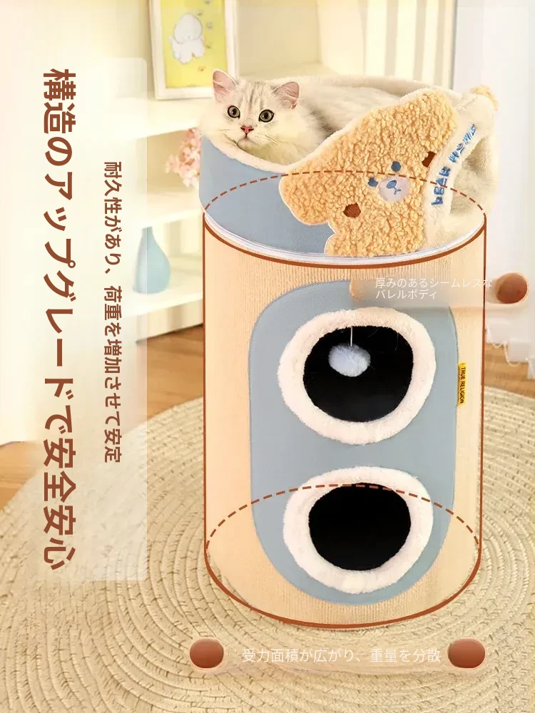 多機能キャットタワー!冬にぴったりの二重構造で、猫の寝床と遊び場が一体化。暖かいキャットハウスとキャットグラブボードを兼ね備えた、愛猫のための快適でおしゃれな空間を提供します!