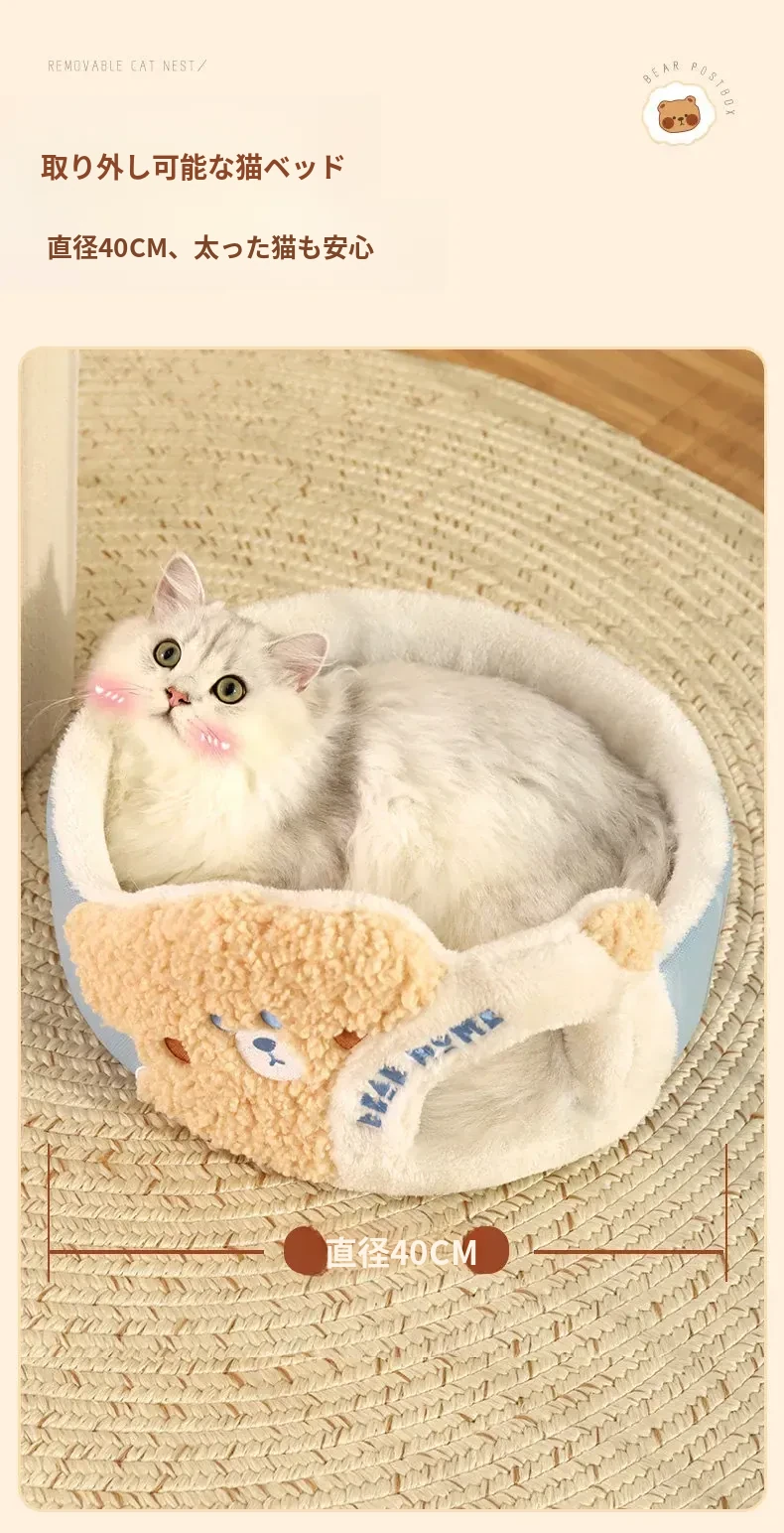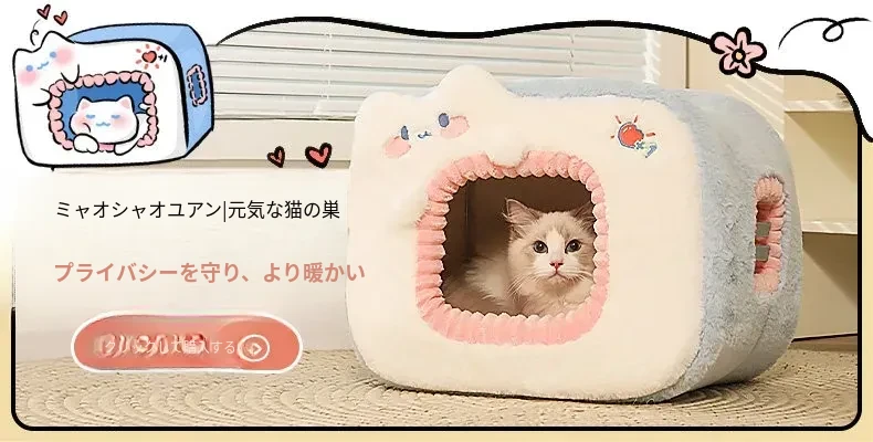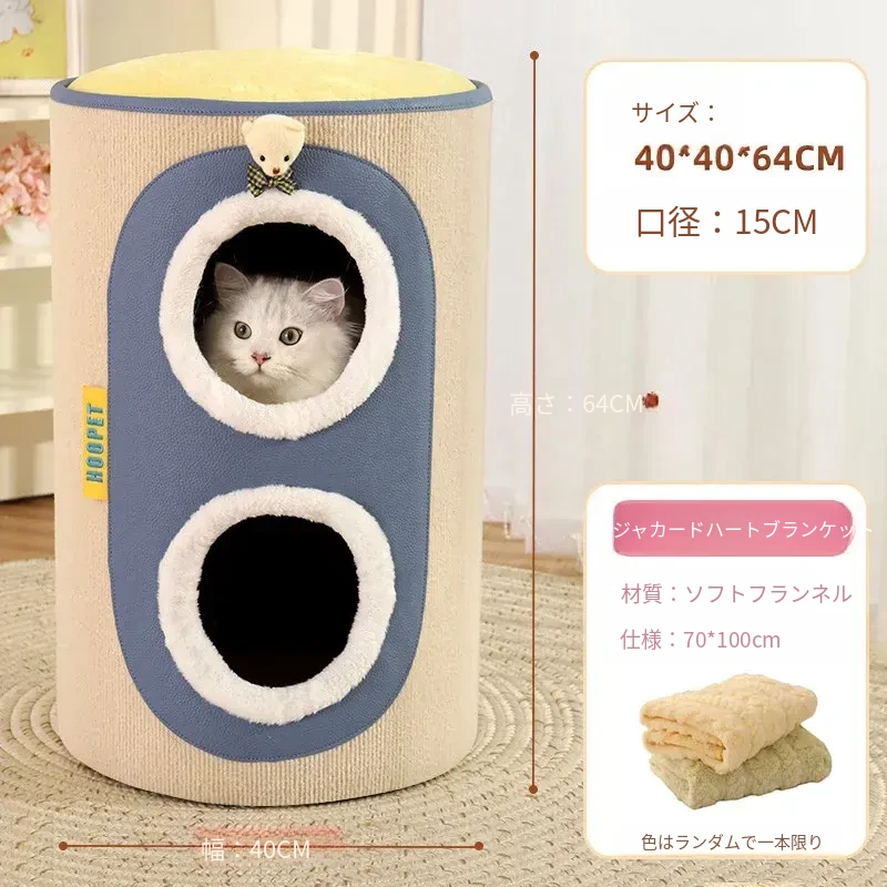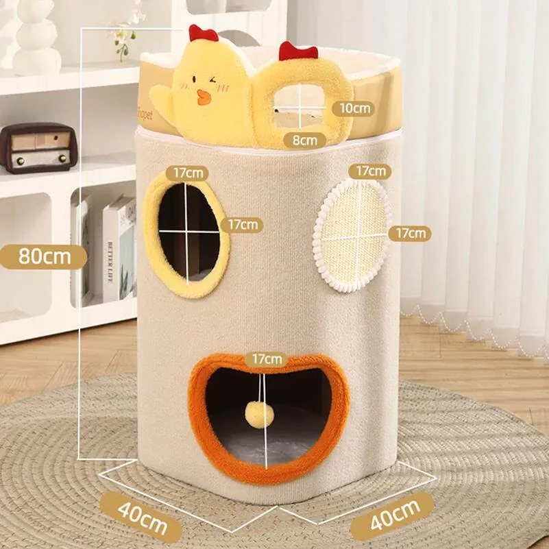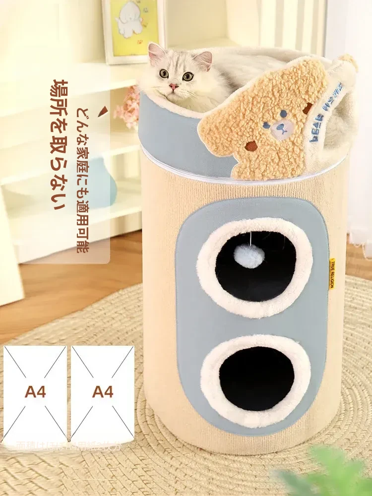 多機能キャットタワー!冬にぴったりの二重構造で、猫の寝床と遊び場が一体化。暖かいキャットハウスとキャットグラブボードを兼ね備えた、愛猫のための快適でおしゃれな空間を提供します!
