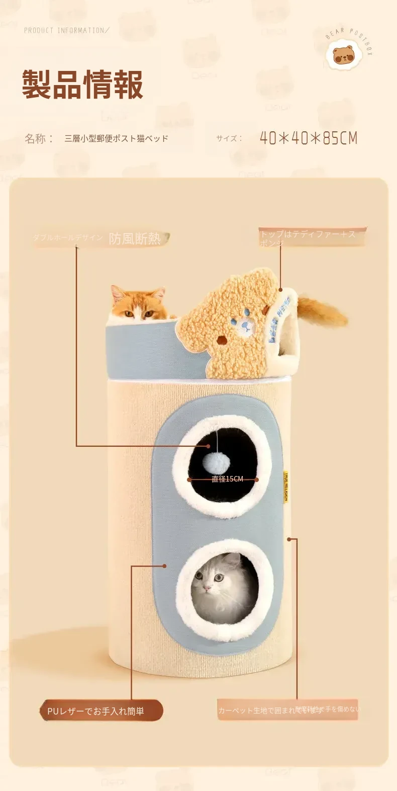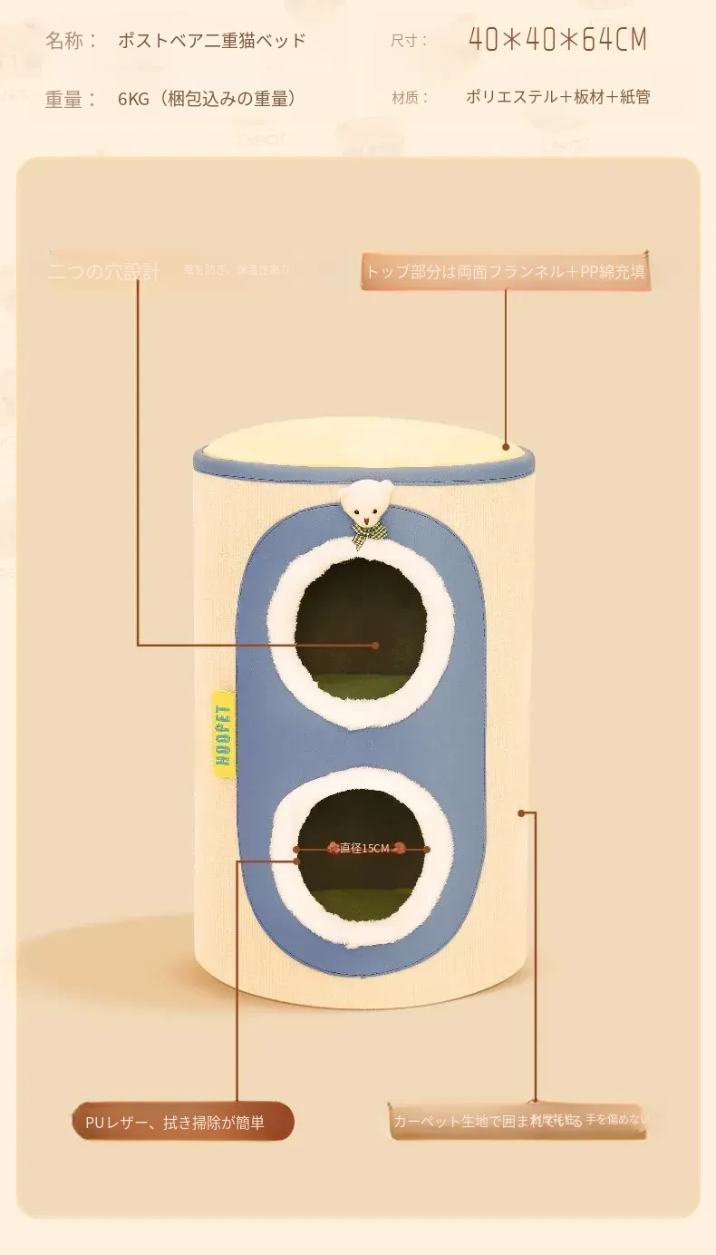 クマ型郵便ポスト2層キャットハウスキャットタワー