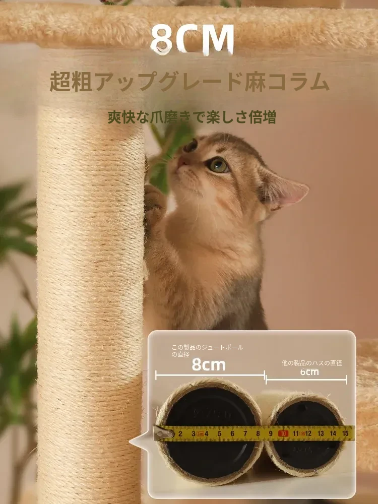 太くて厚い-七層猫ハウスキャットタワー(太くて厚い 柱の太さ約8cm)