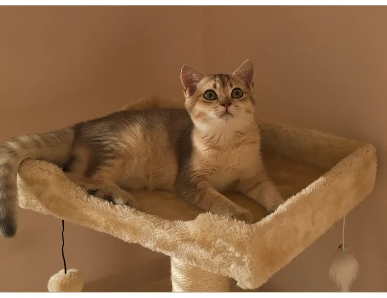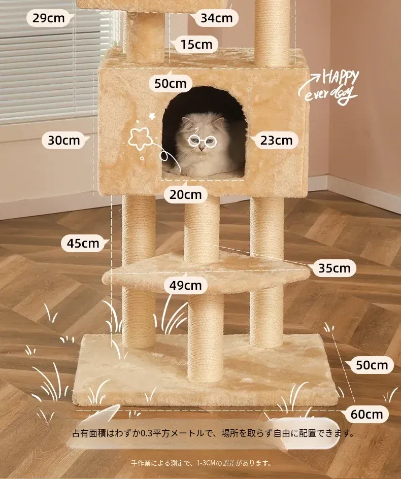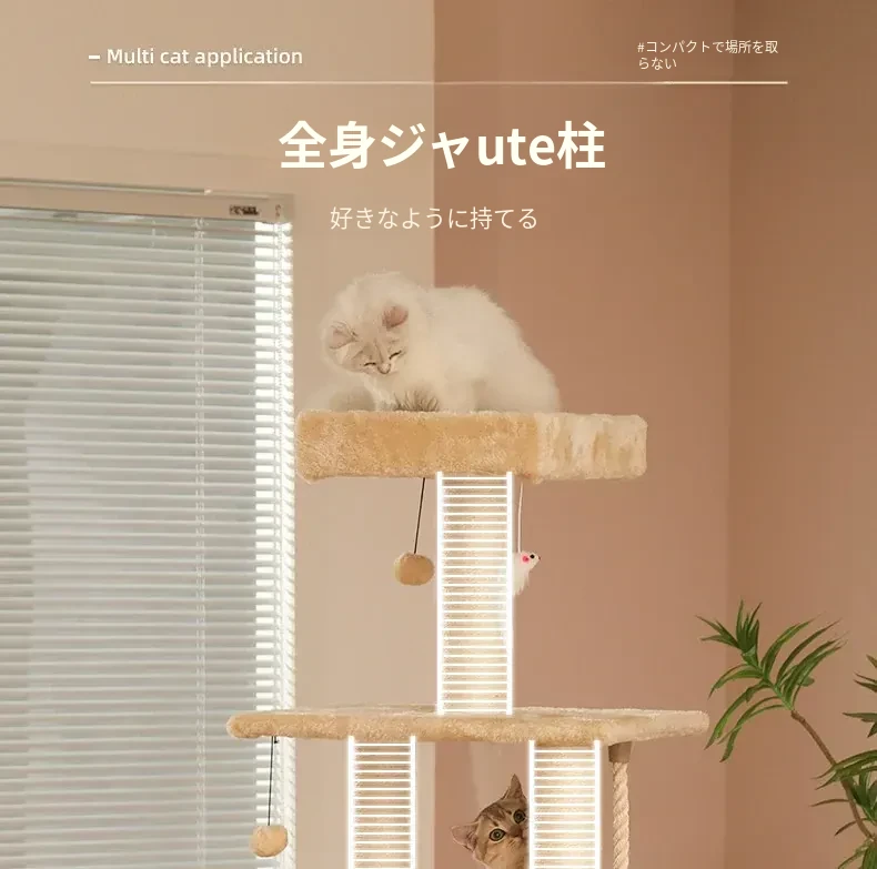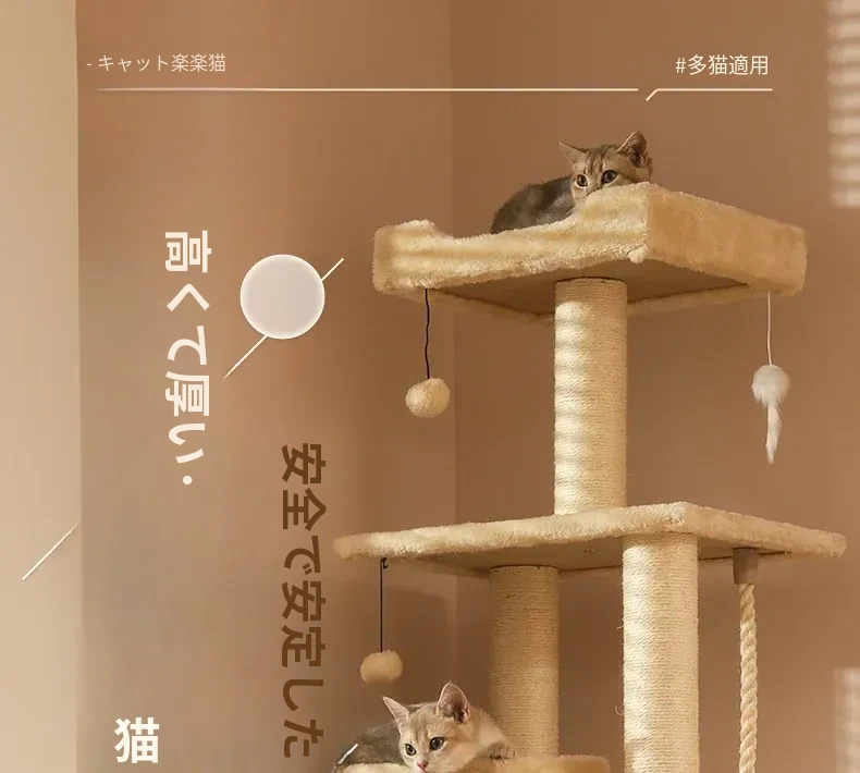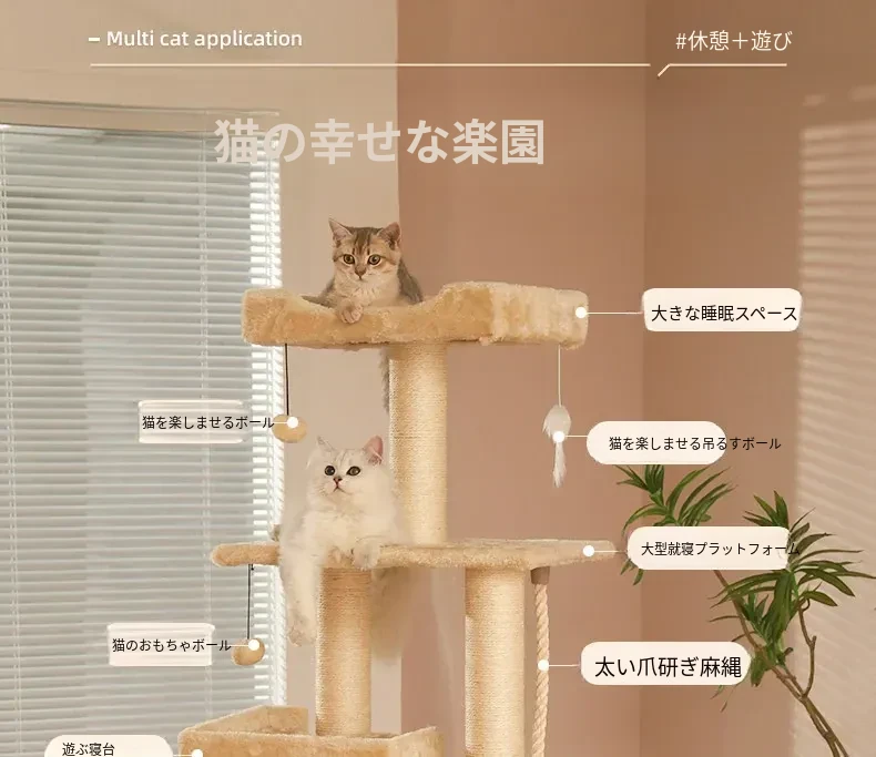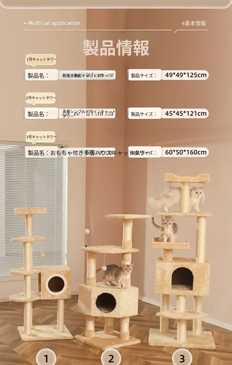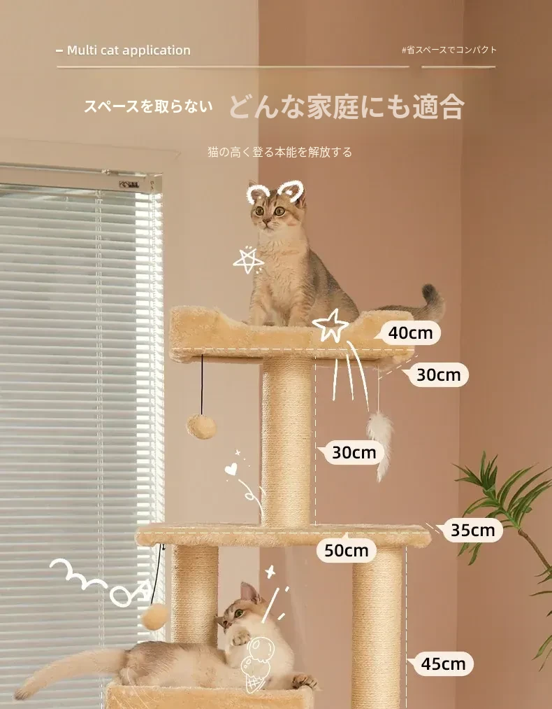 キャットタワー&キャットハウス一体型!おしゃれで機能的な大容量キャットツリー、愛猫のための快適な遊び場。高い爪研ぎポール付きで、元気な猫ちゃんも大満足!家庭用に最適な大型キャットフレームです。