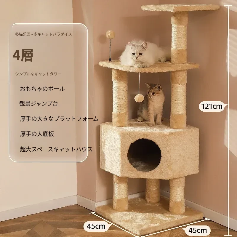 太くて厚い-四層大猫ハウスキャットタワー[場所を取らず 角に置ける]