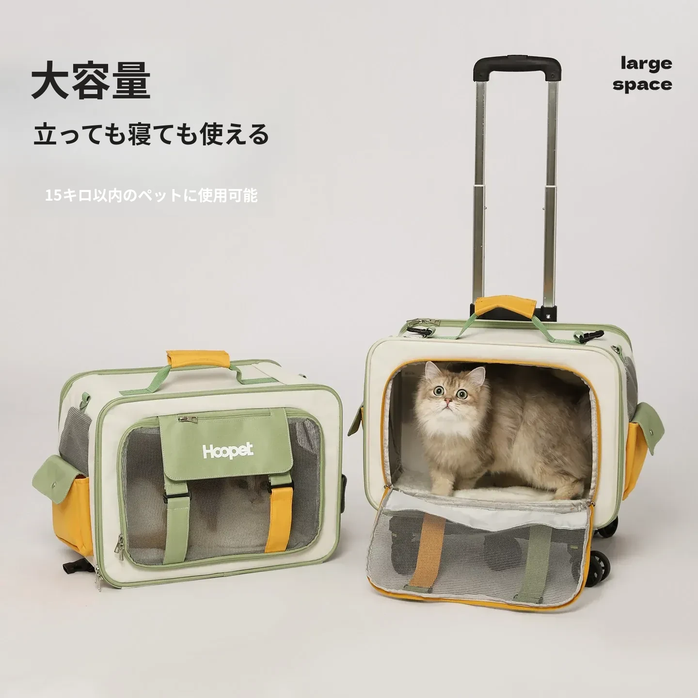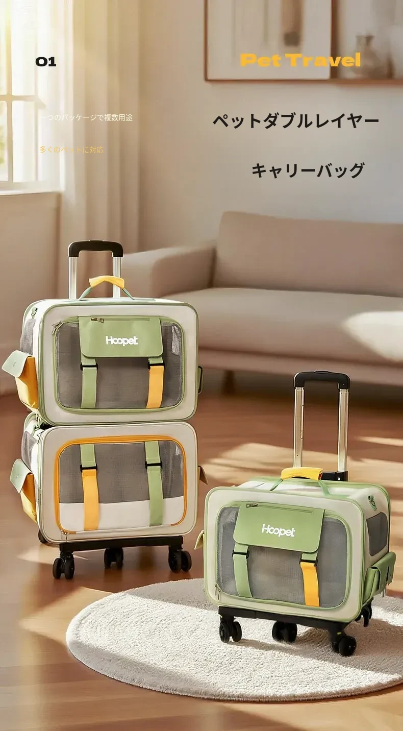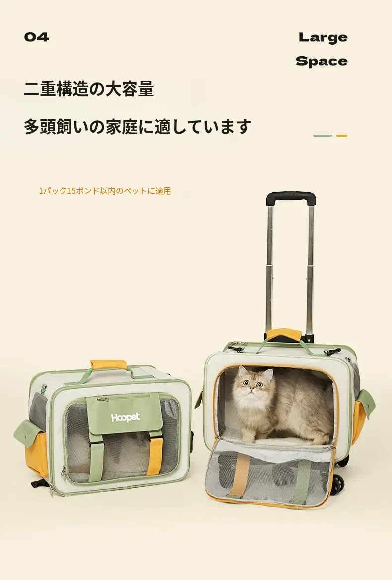 キャリーバッグ 猫用 スペースキャビン 大容量 便利な持ち運び ペット用 ローラーケース ストレス軽減設計 犬も使える 車載対応 ペットリュック