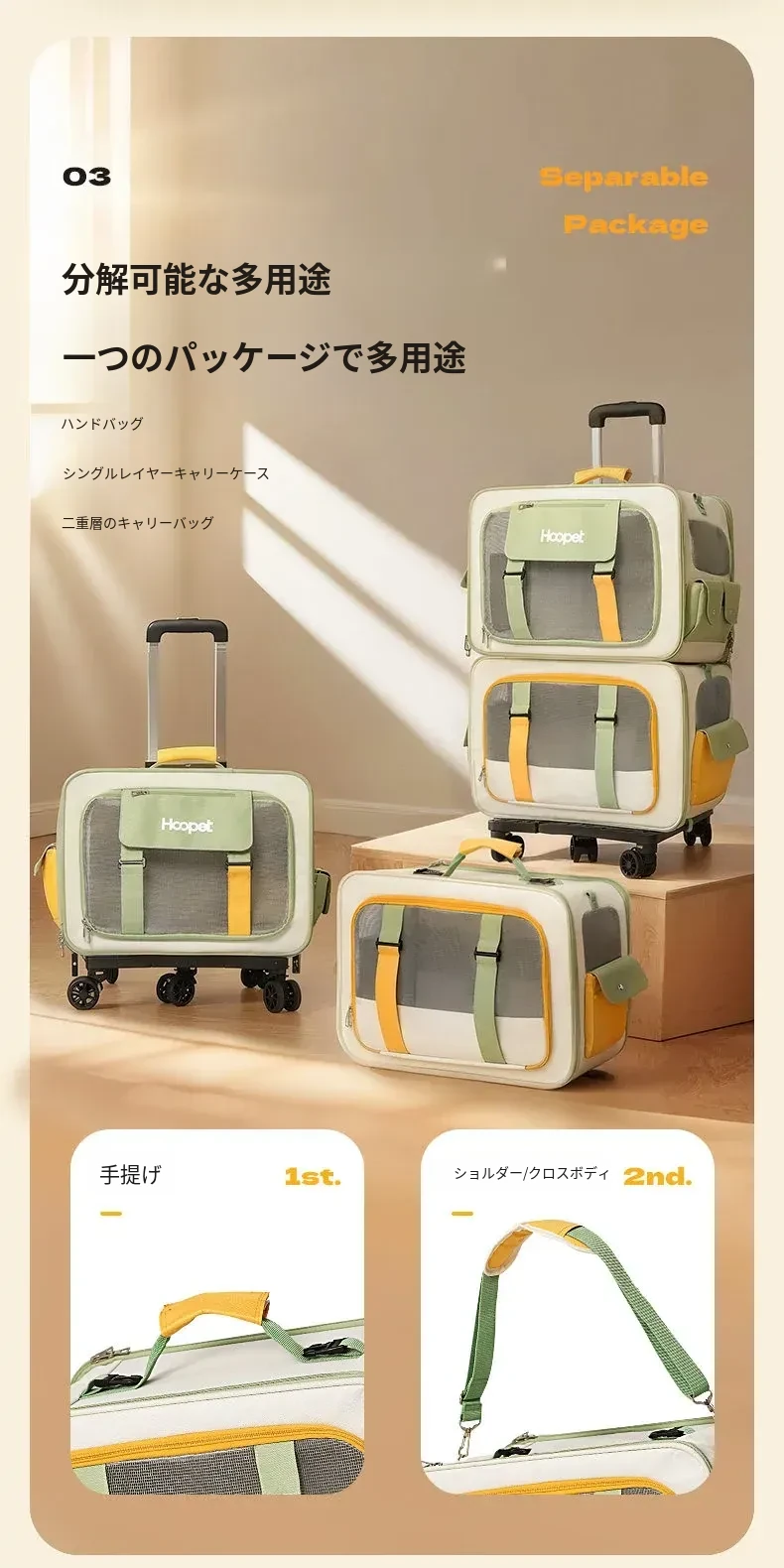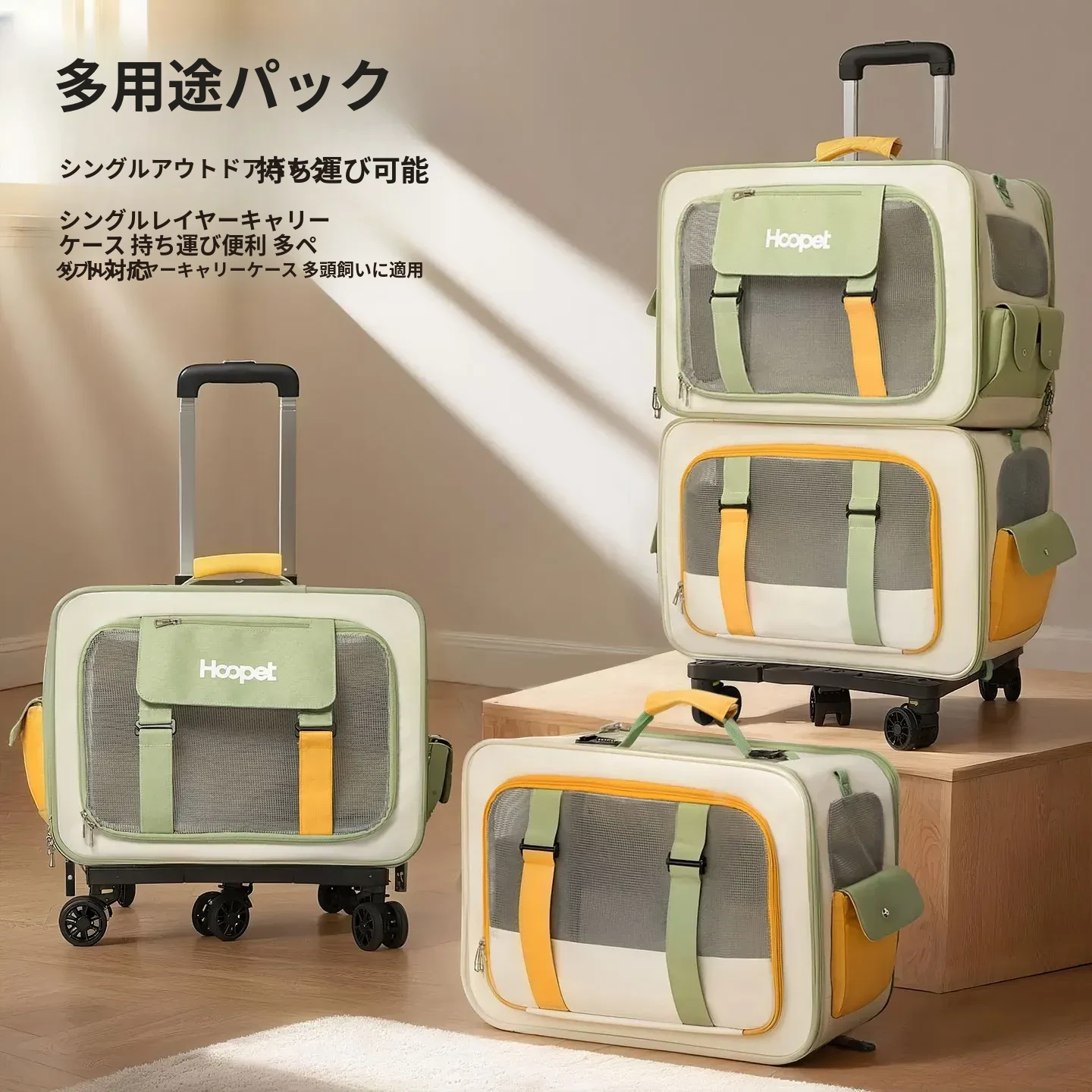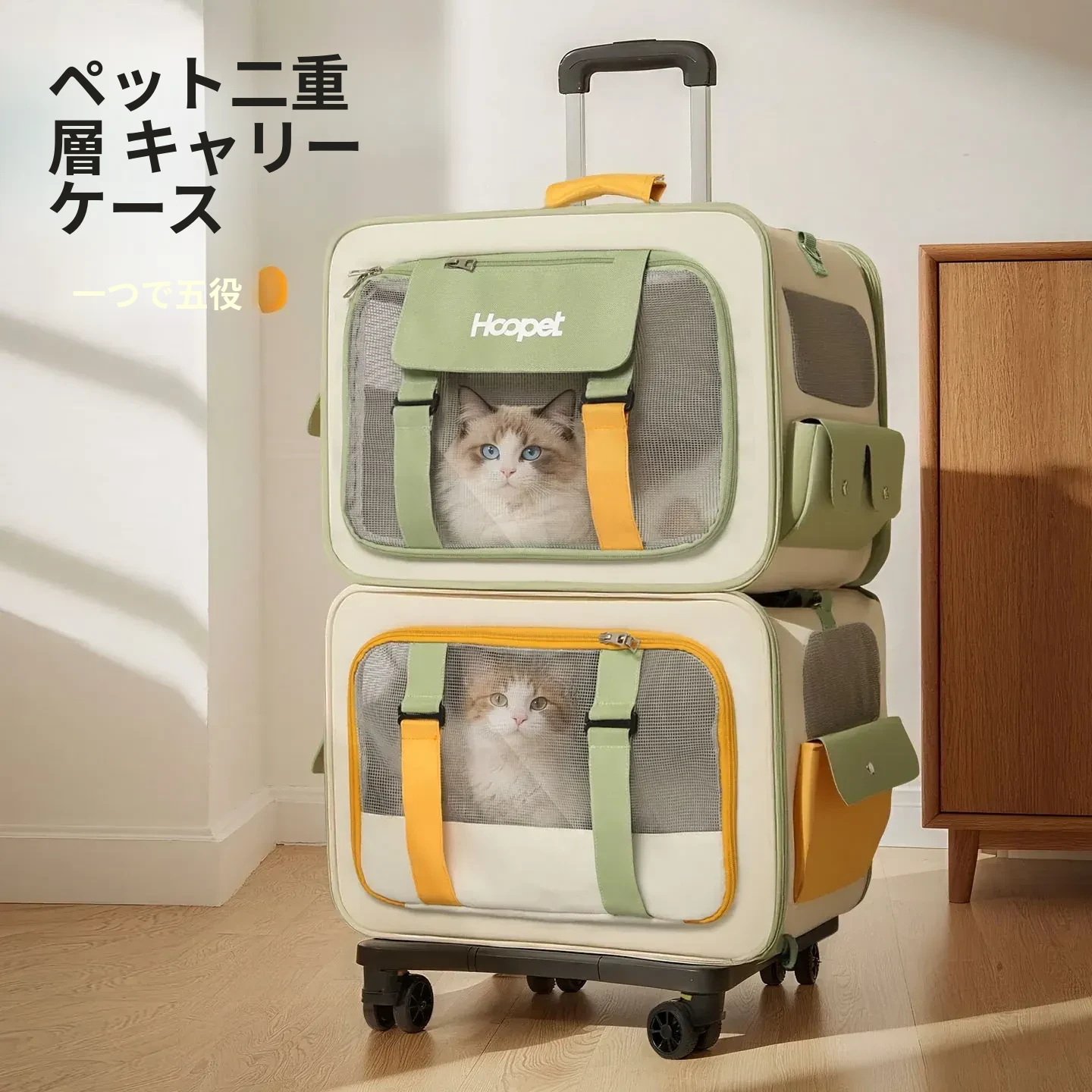 キャリーバッグ 猫用 スペースキャビン 大容量 便利な持ち運び ペット用 ローラーケース ストレス軽減設計 犬も使える 車載対応 ペットリュック