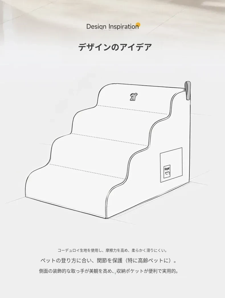 ペット用階段 犬用ベッドやソファに便利な滑り止め傾斜階段 小型犬や高齢犬向け 四季に対応 安心の設計で愛犬も楽々昇降!