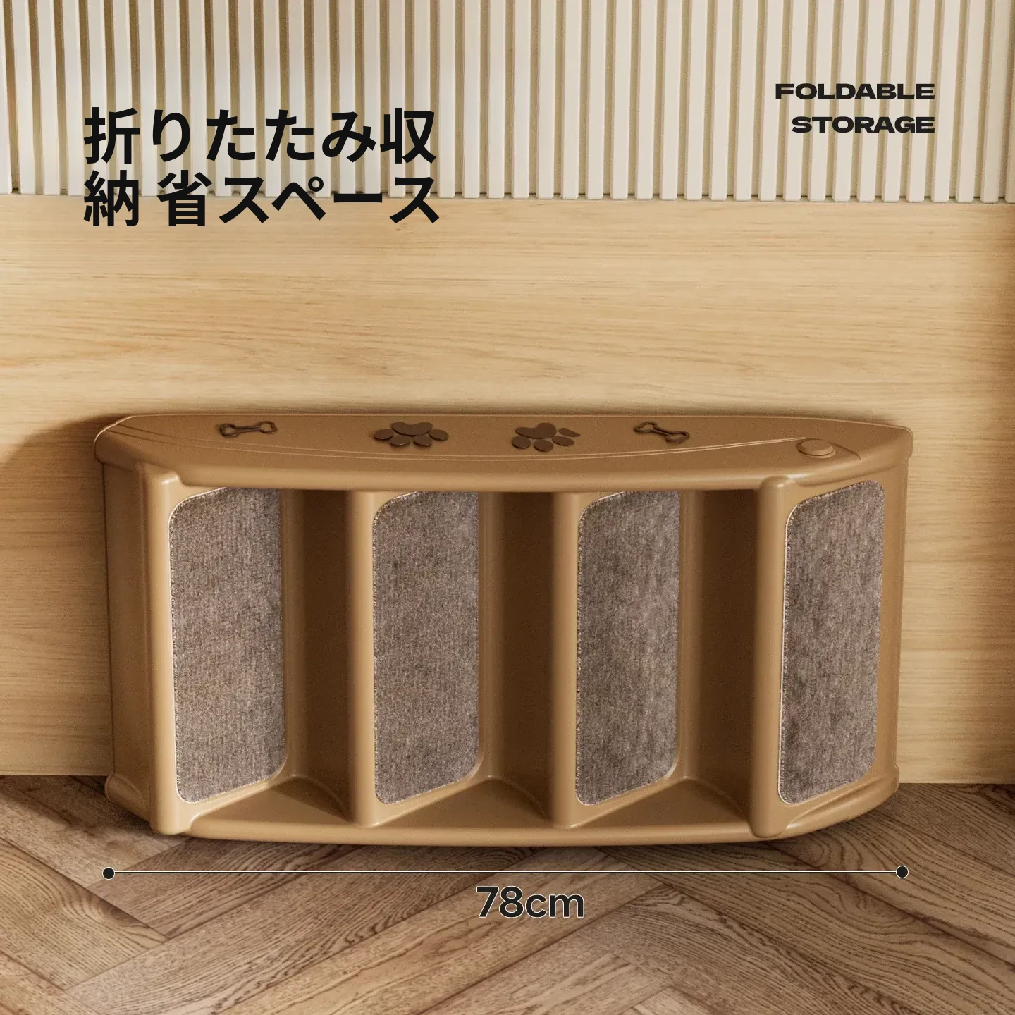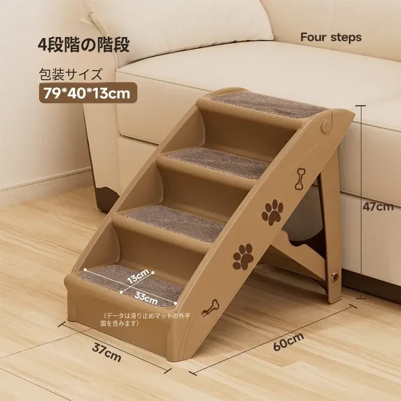 ペット用折りたたみ階段 - 4段【耐荷重50kg】[万能ブラウン色]