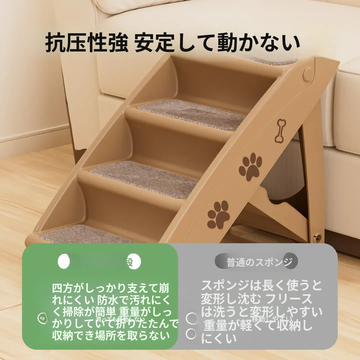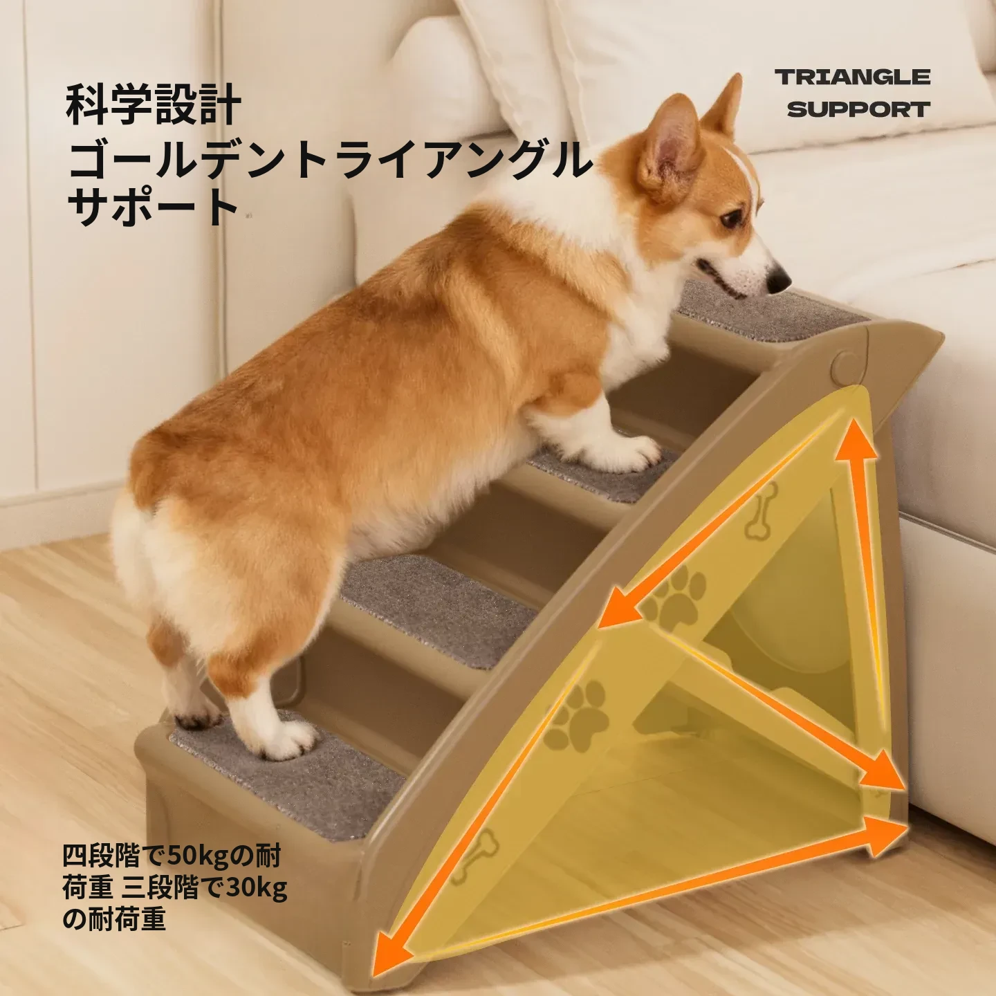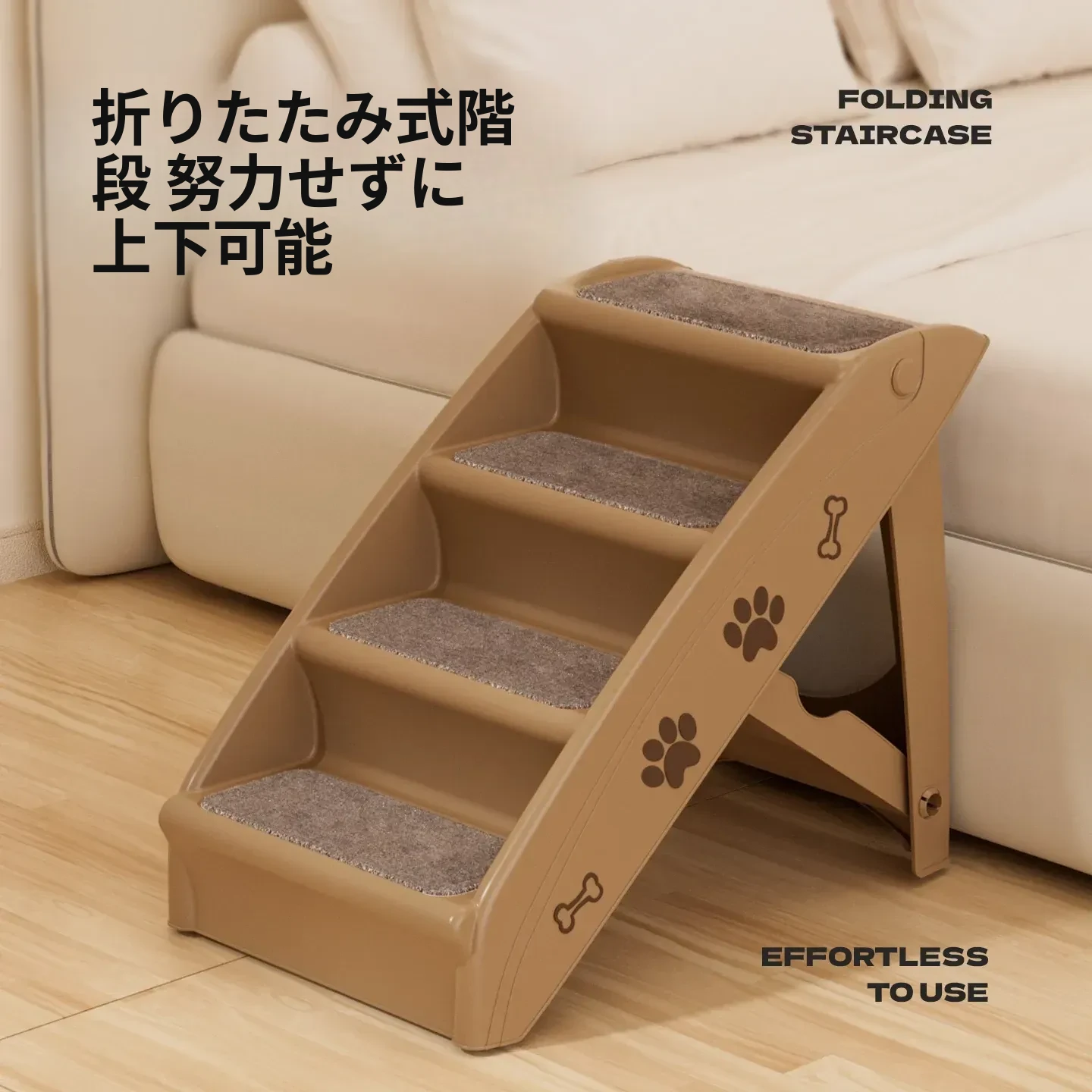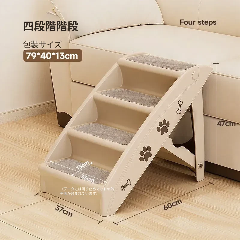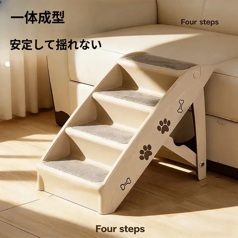 ペット用折りたたみ階段 - 4段【耐荷重50kg】[万能ベージュ色]