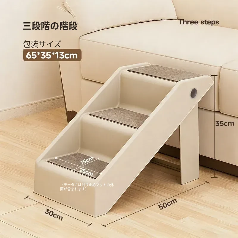 ペット用折りたたみ階段 - 3段【耐荷重30kg】[万能ベージュ色]