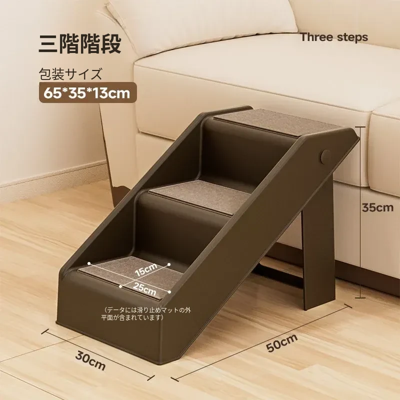 ペット用折りたたみ階段 - 3段【耐荷重30kg】[汚れに強いチョコレート色]