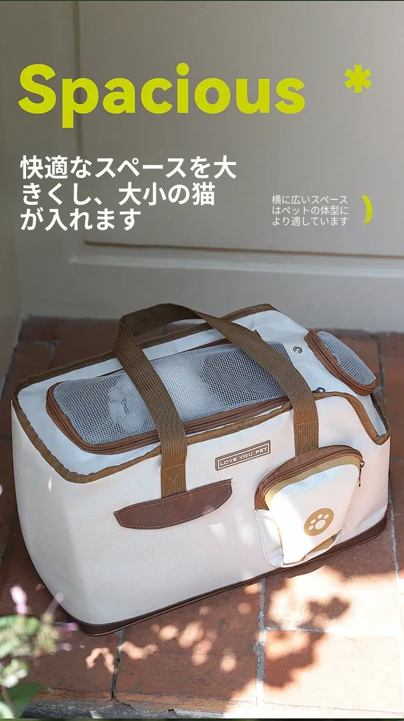 猫ちゃんと犬ちゃんのための軽量大容量ペットキャリー!外出にぴったりなストレスフリー設計で、猫ちゃんが顔を出せる安心感を提供します。あなたの愛するペットとの素敵な冒険をお楽しみください!