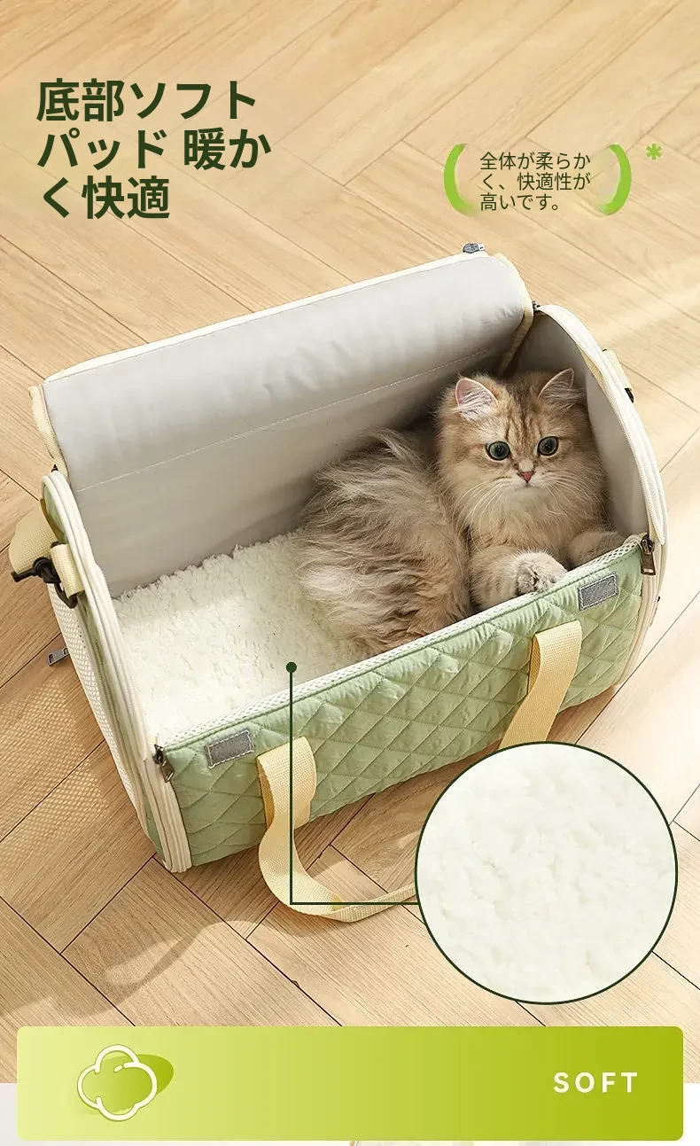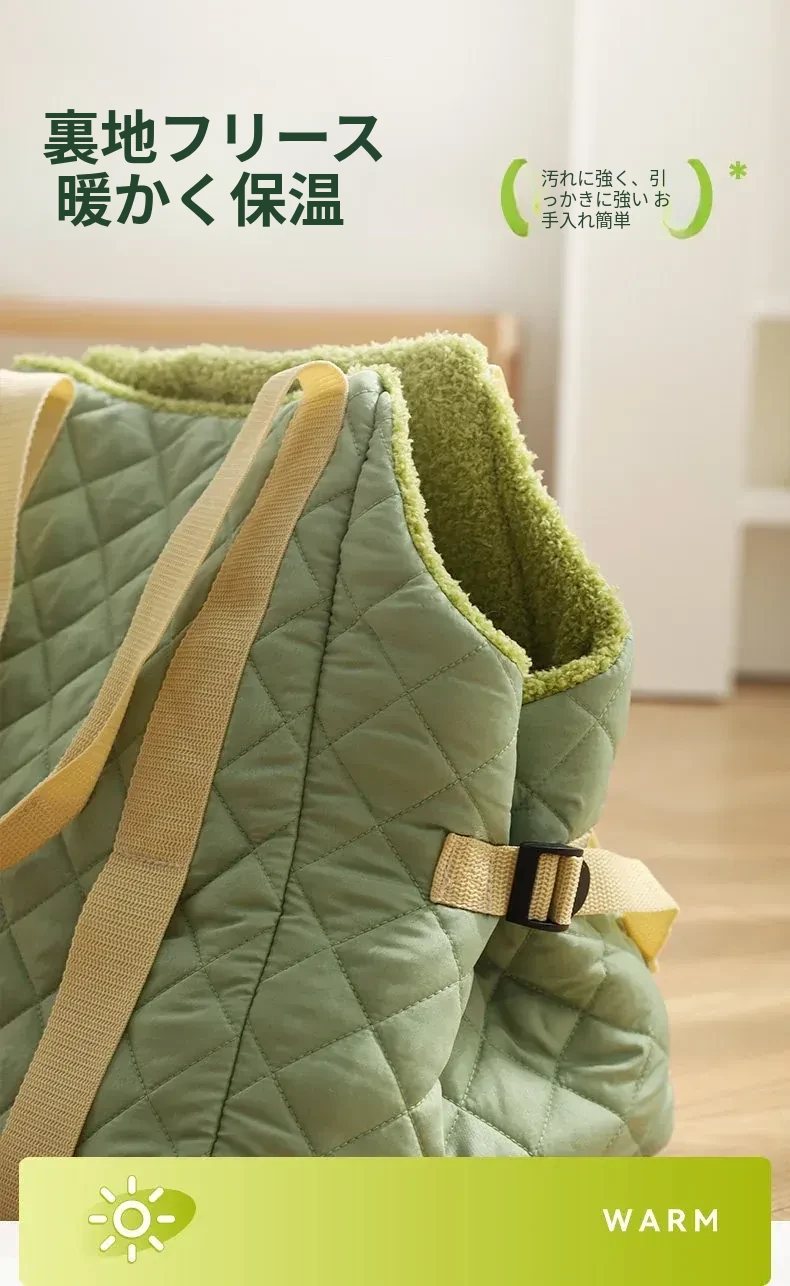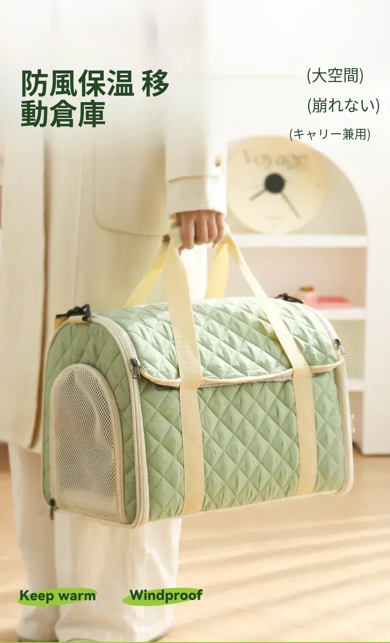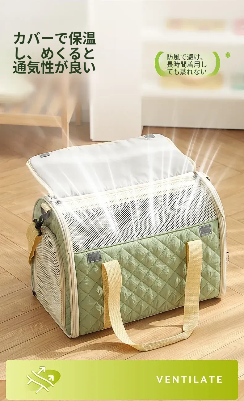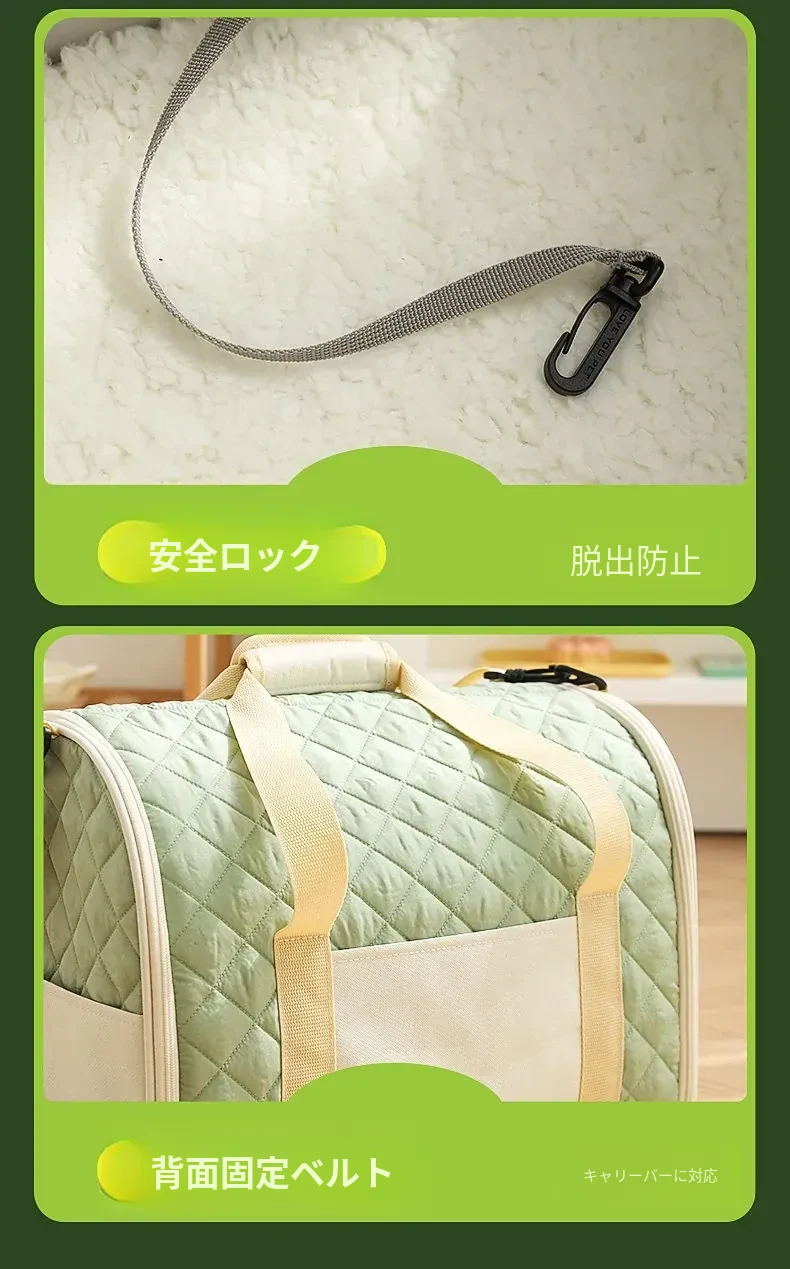 バニラグリーン-内側にフリースパッド/ショルダーストラップ【防風保温】20ポンド以下の猫におすすめ/12ポンド