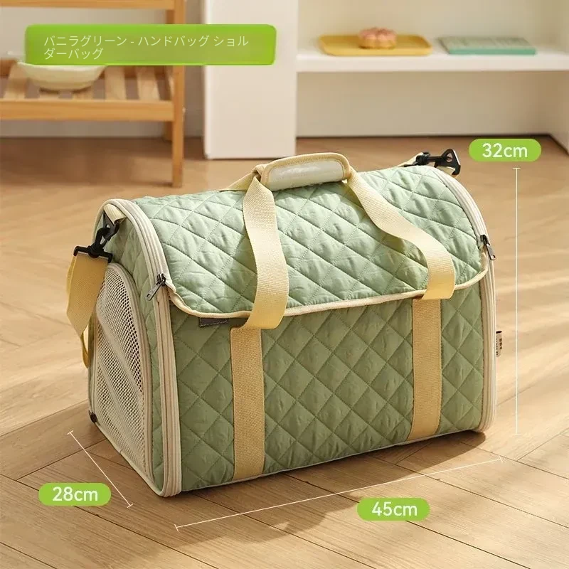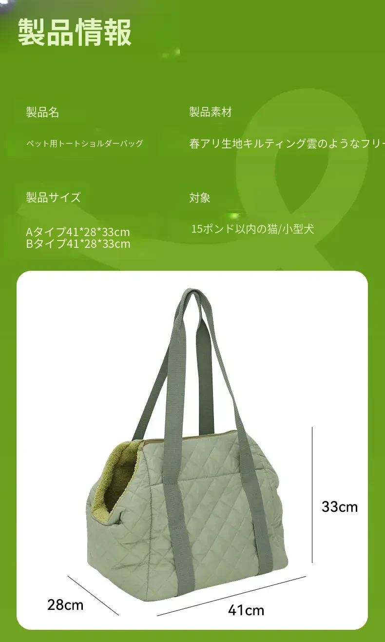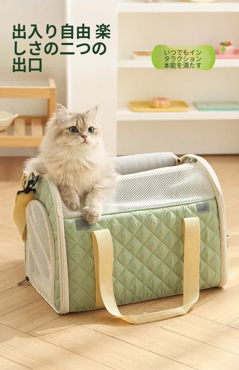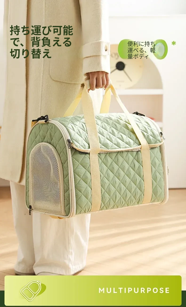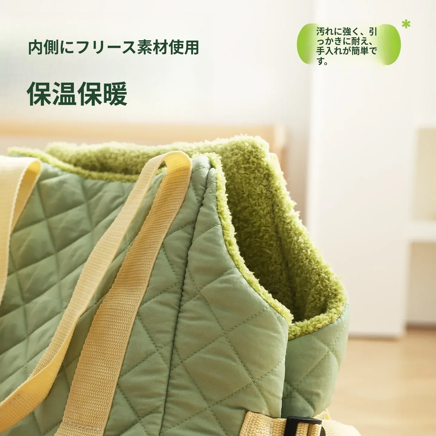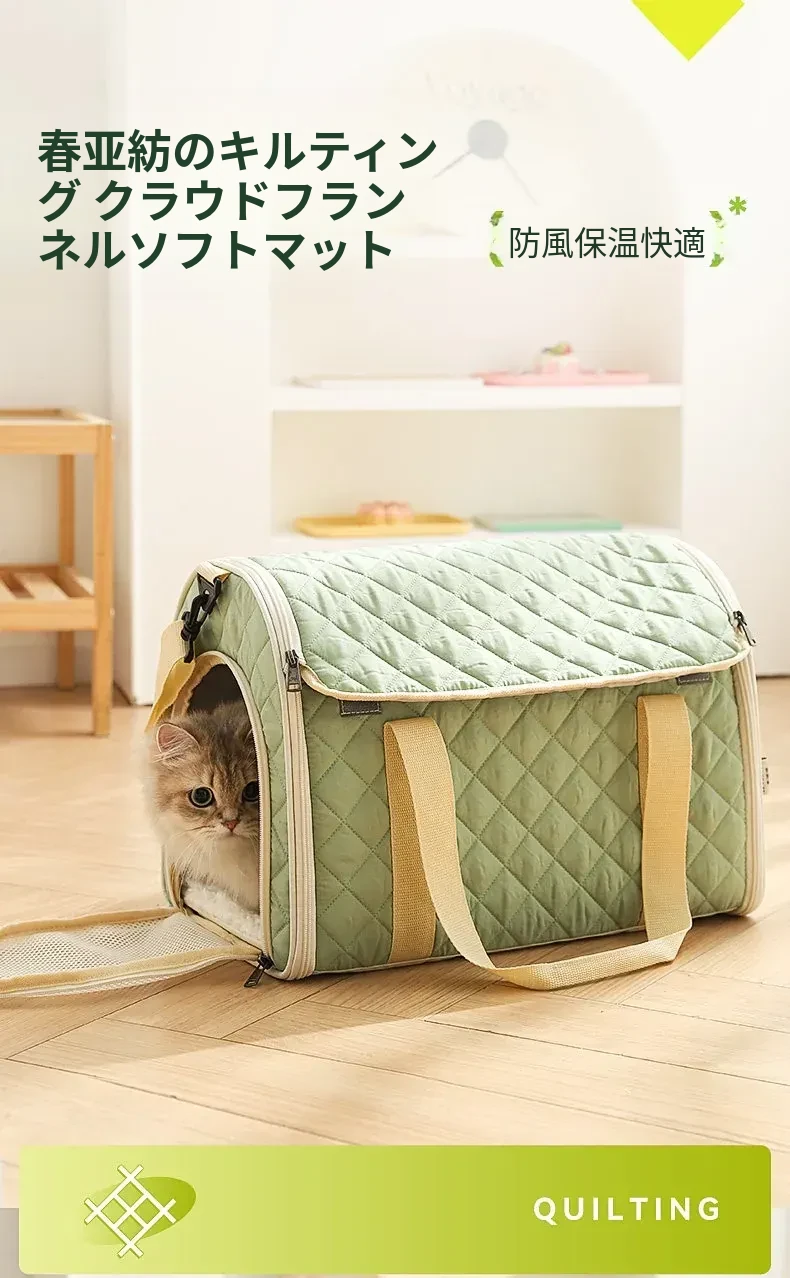 バニラグリーン-内側にフリースパッド/ショルダーストラップ【防風保温】20ポンド以下の猫におすすめ/12ポンド
