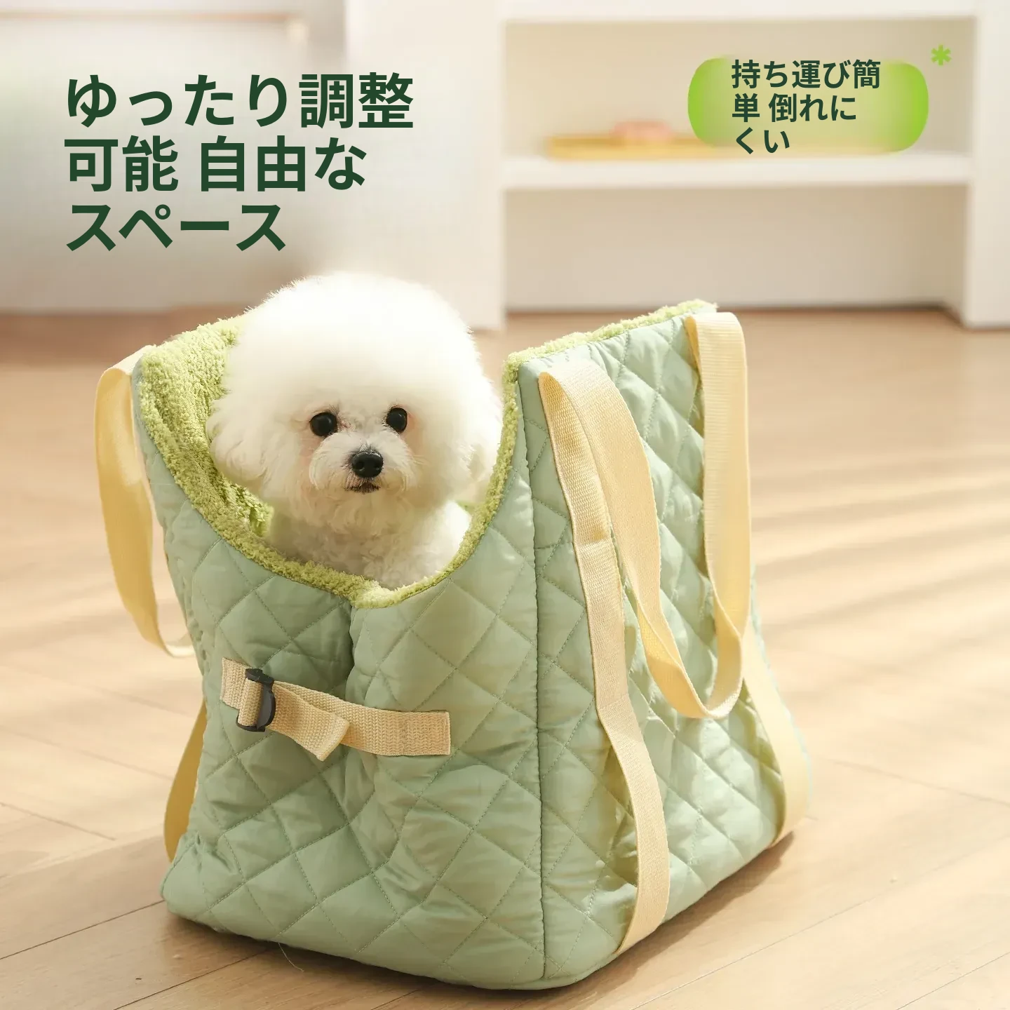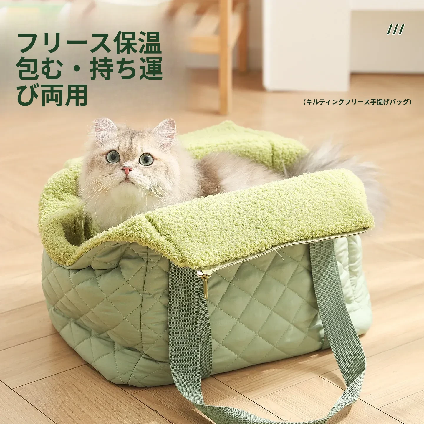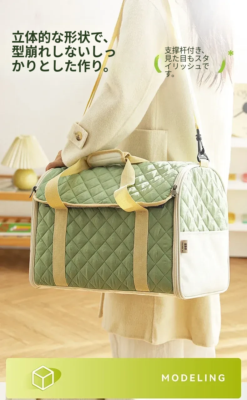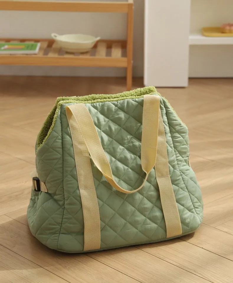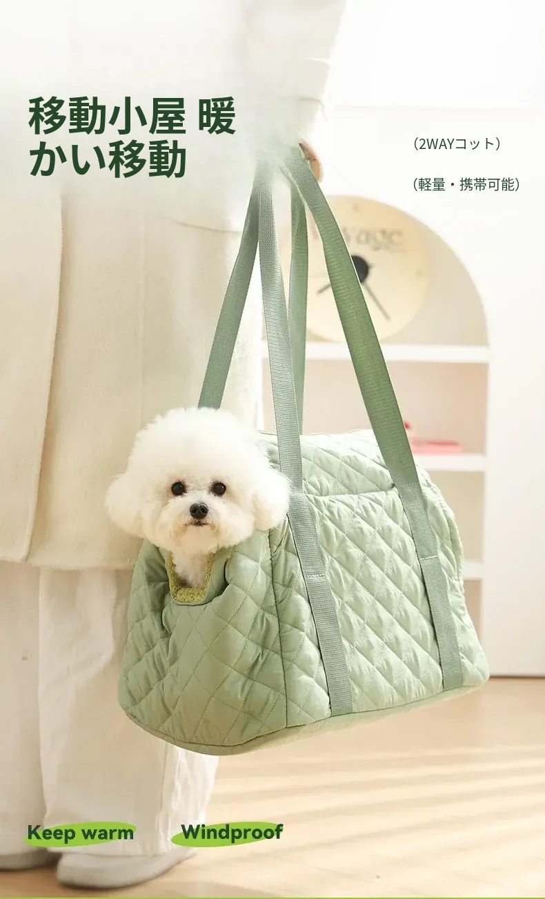バニラグリーン-内側にフリースパッド/ショルダーストラップ【防風保温】20ポンド以下の猫におすすめ/12ポンド