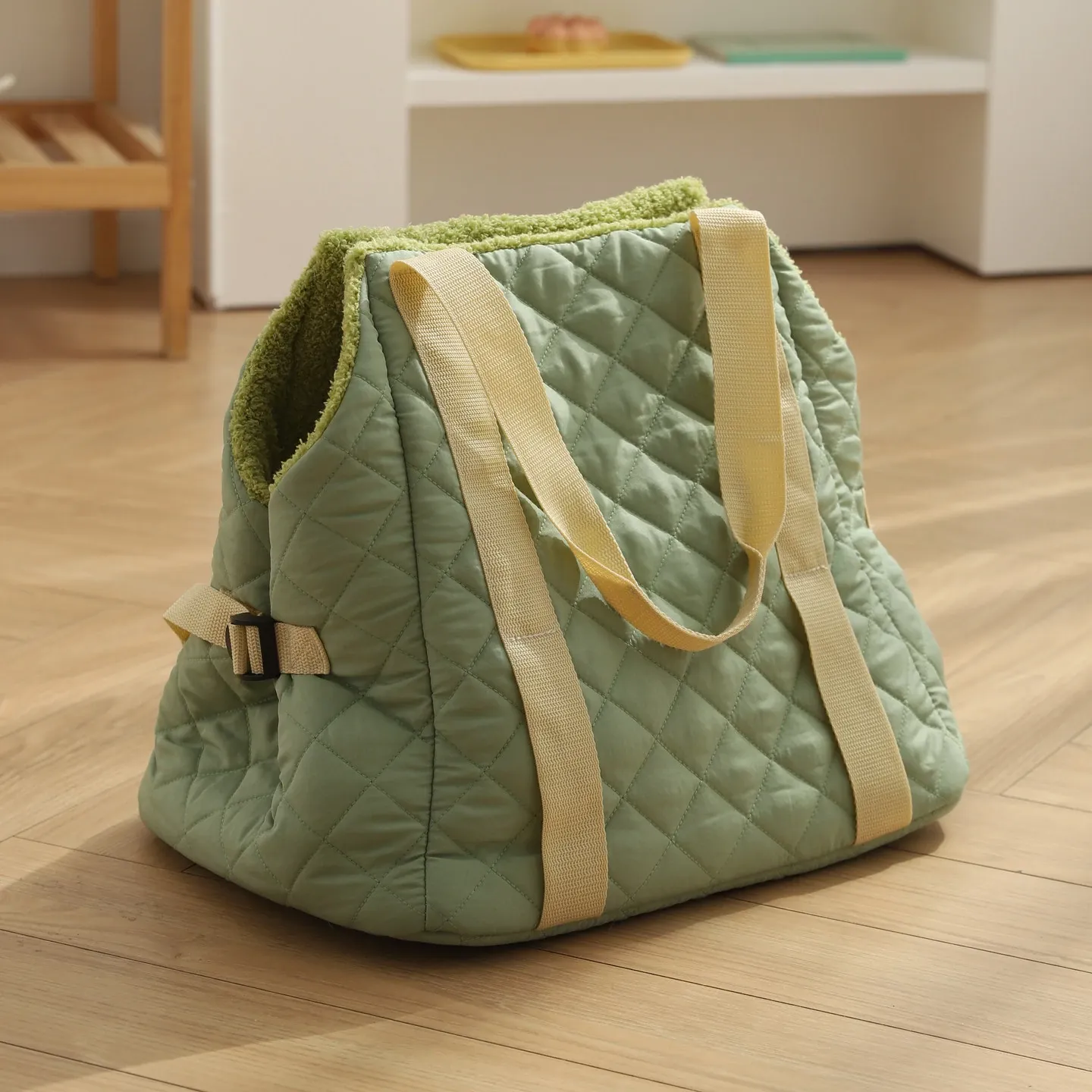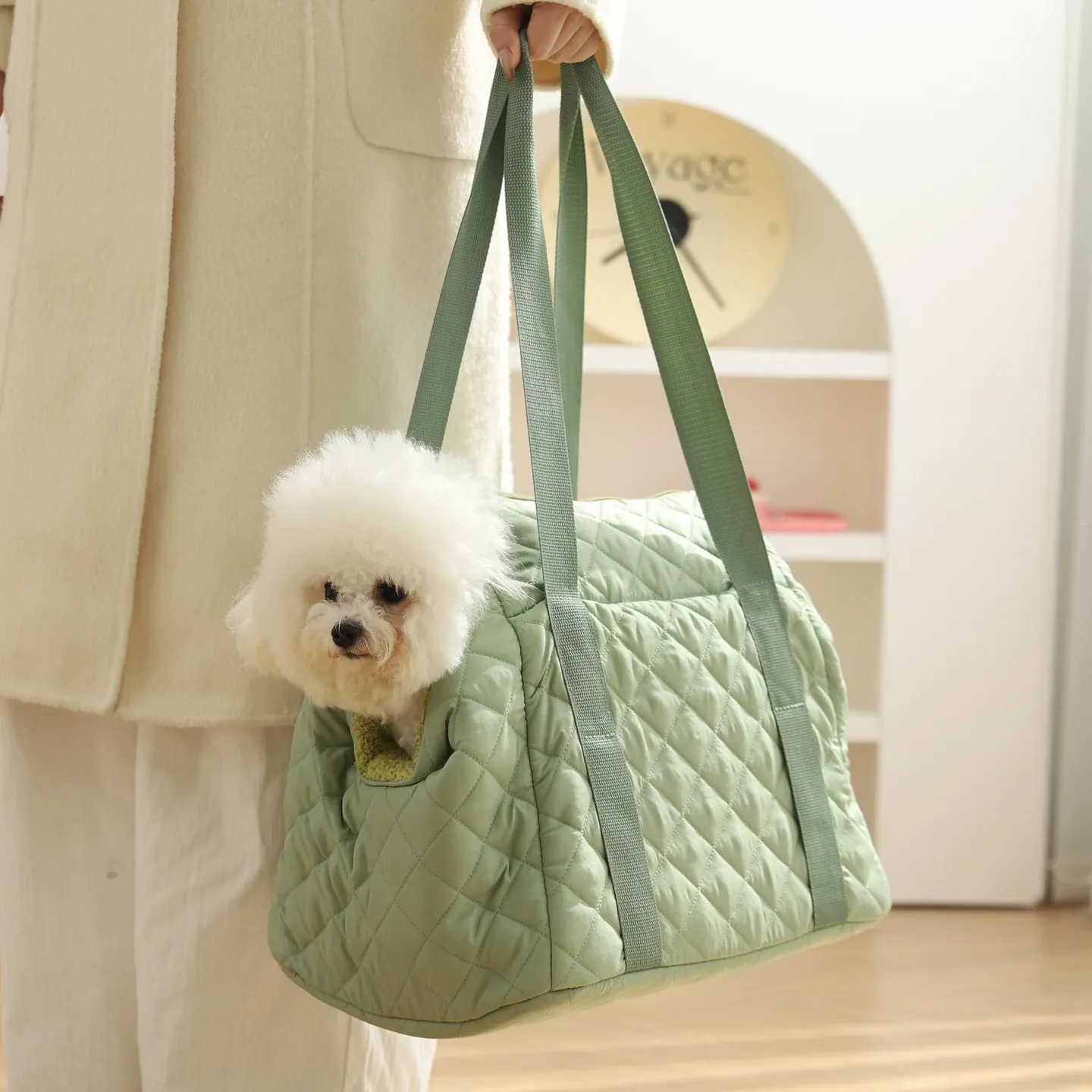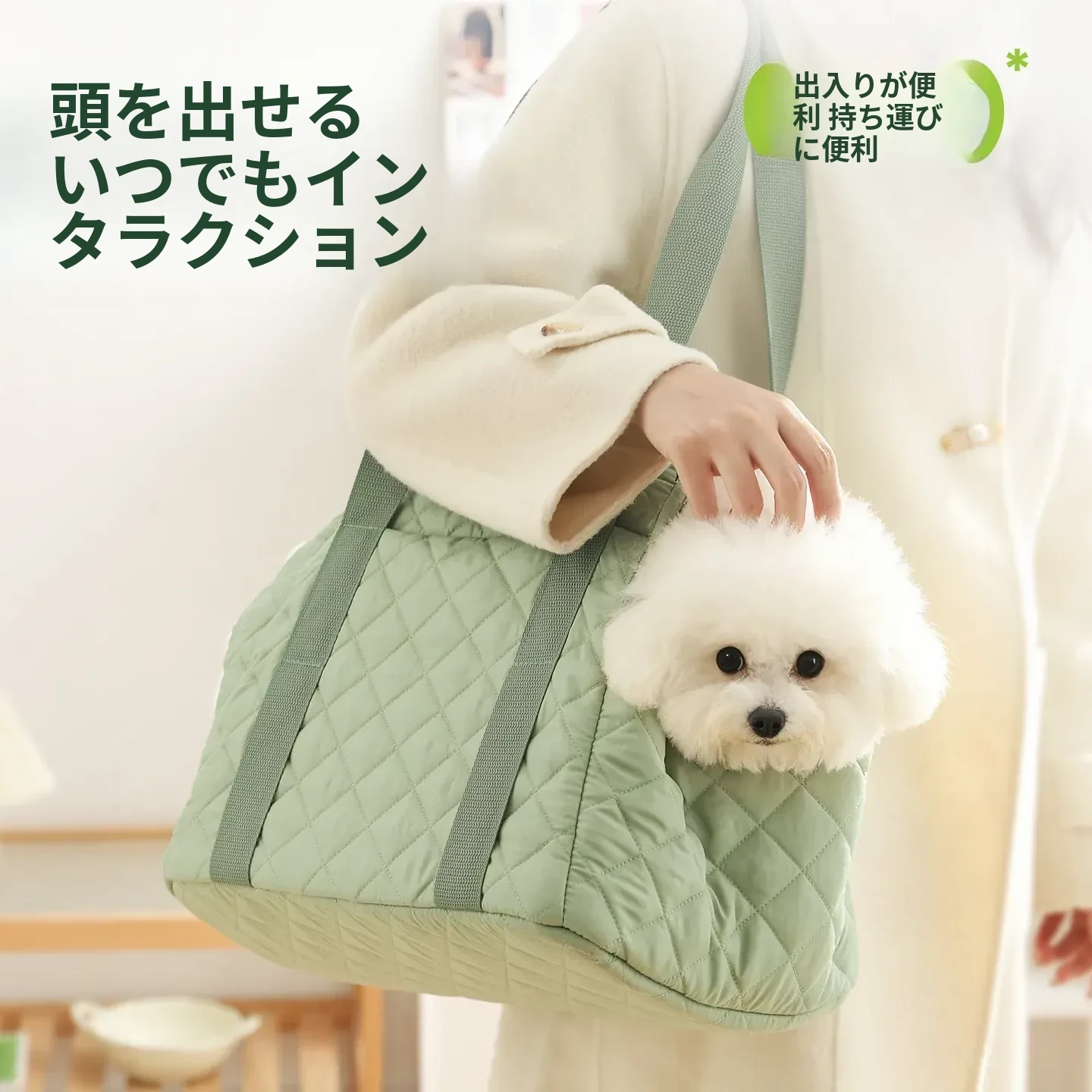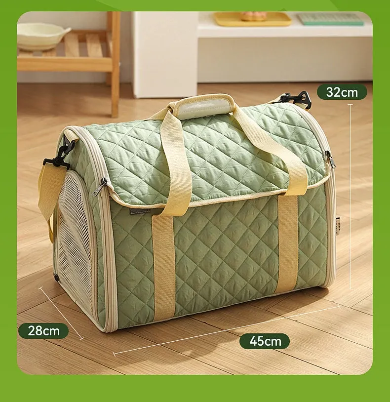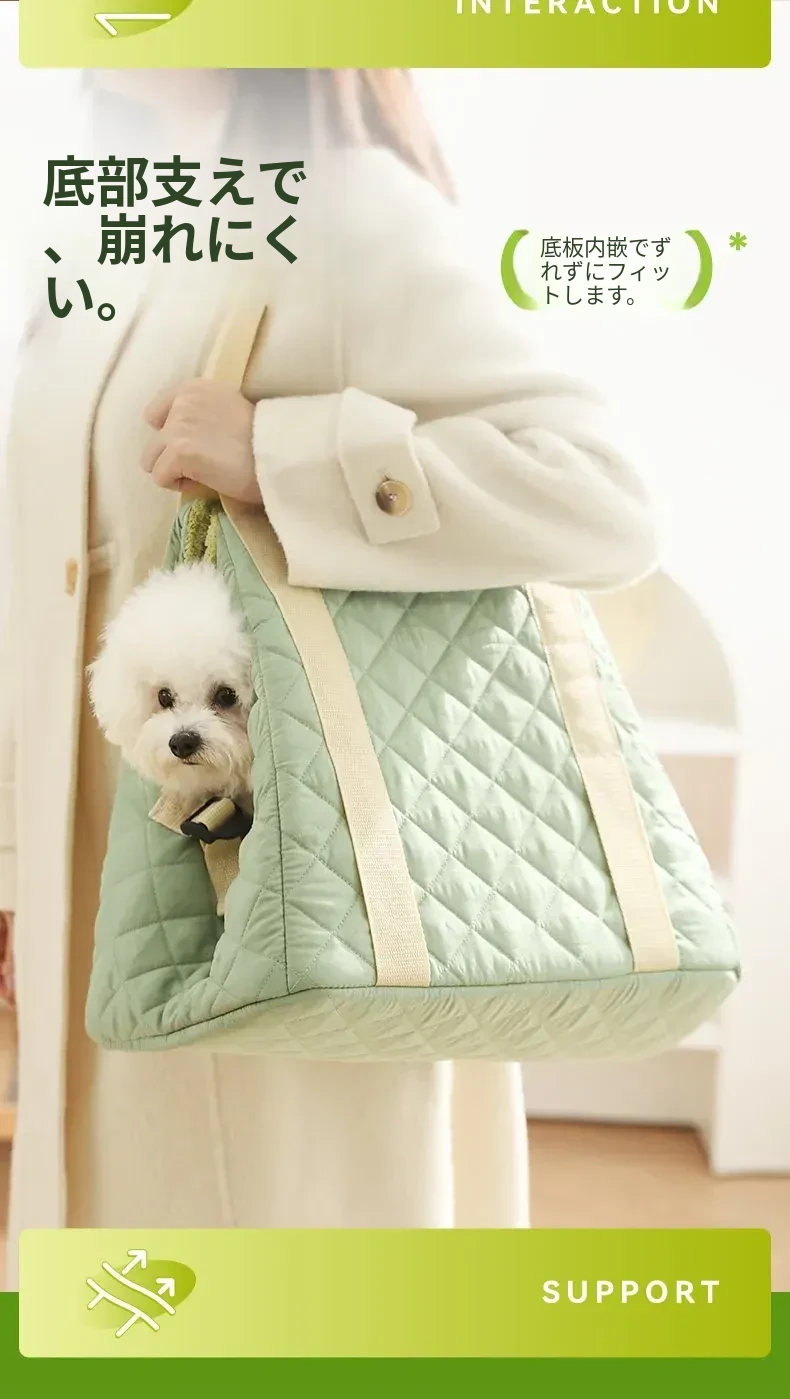 バニラグリーン-内側にフリースパッド/ショルダーストラップ【防風保温】20ポンド以下の猫におすすめ/12ポンド