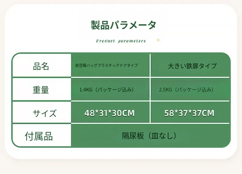 抹茶緑大サイズ(25斤内-尿隔て板、食器付き)