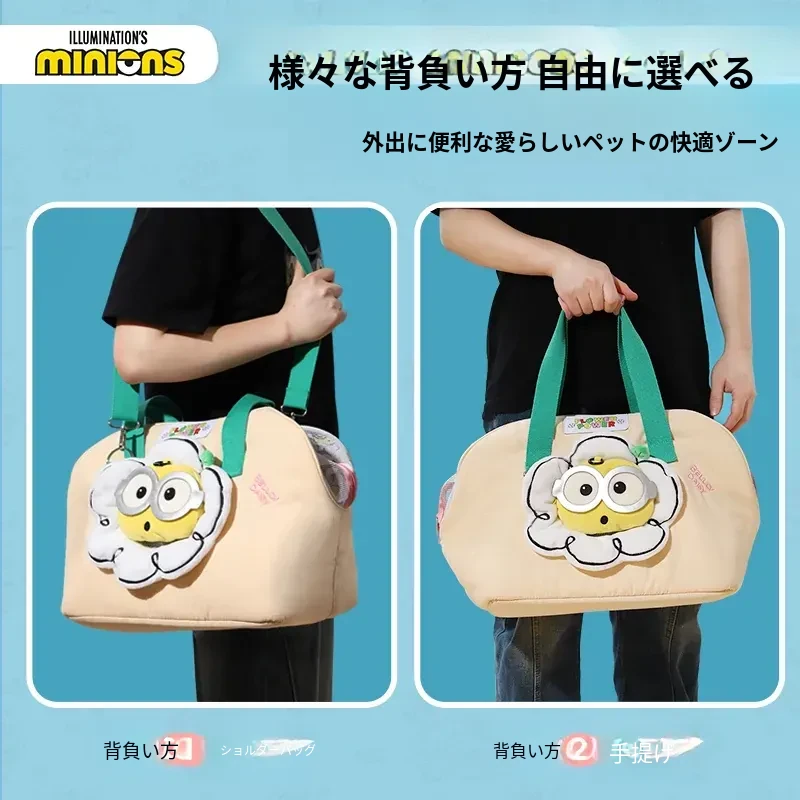 犬猫用キャリーバッグ - お出かけ便利!小型犬・猫対応のミニオンシリーズ、肩掛け・斜めがけOK。愛犬・愛猫と一緒に楽しい時間を過ごしましょう!
