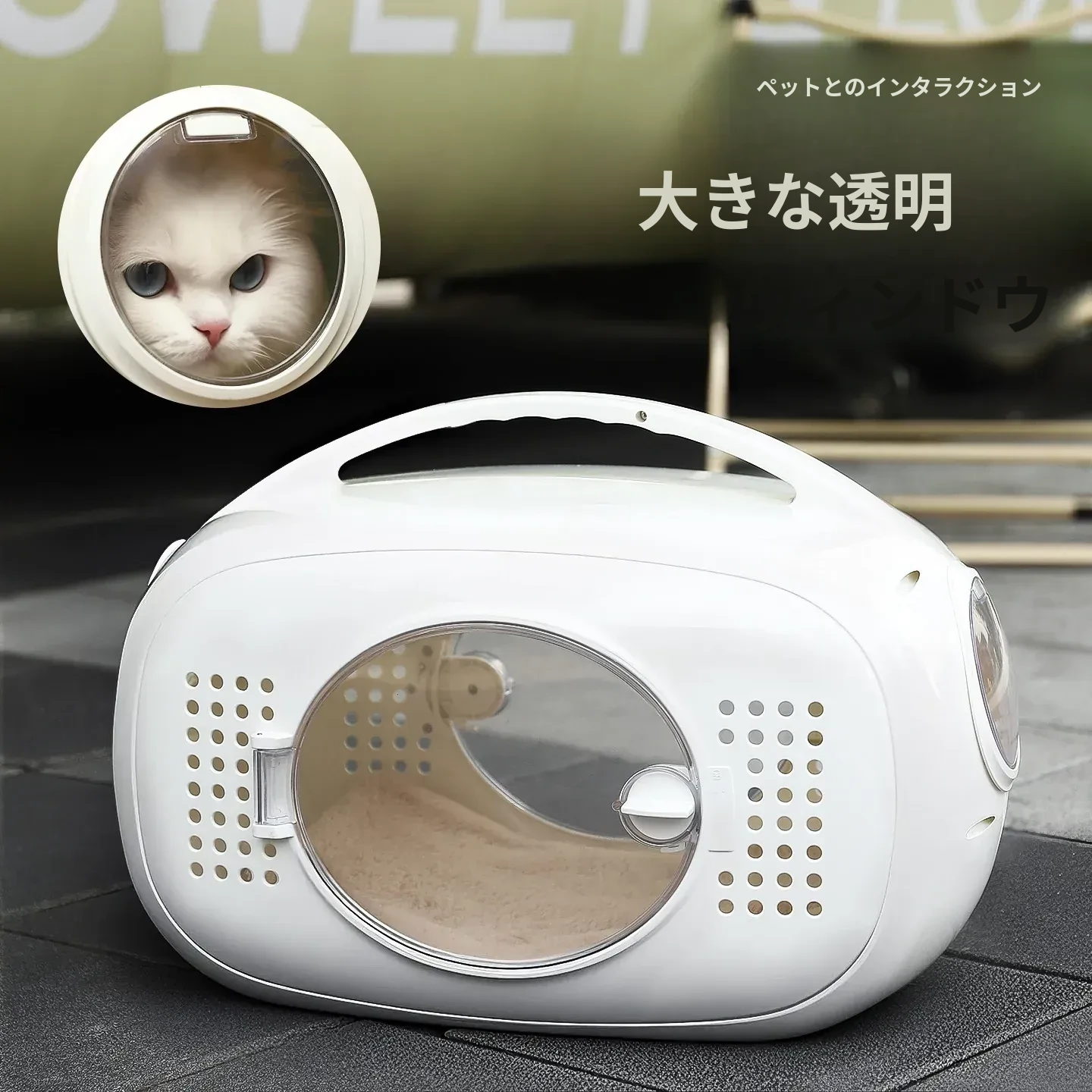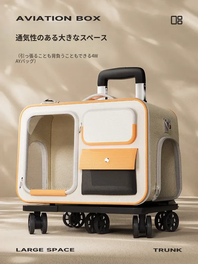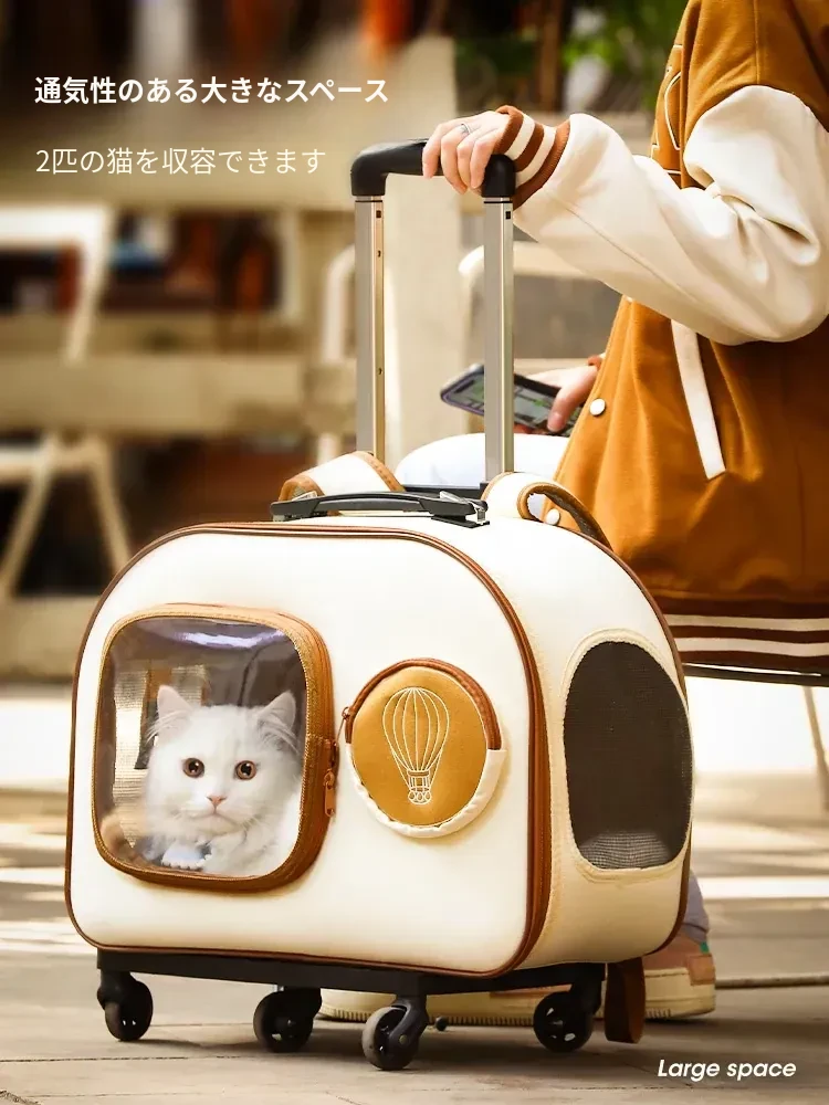外出に最適!猫や小型犬用のコンパクト航空キャリーケース - スペースカプセルデザインで、ペットとの旅行をもっと快適に!おしゃれで便利なペットバックパック。