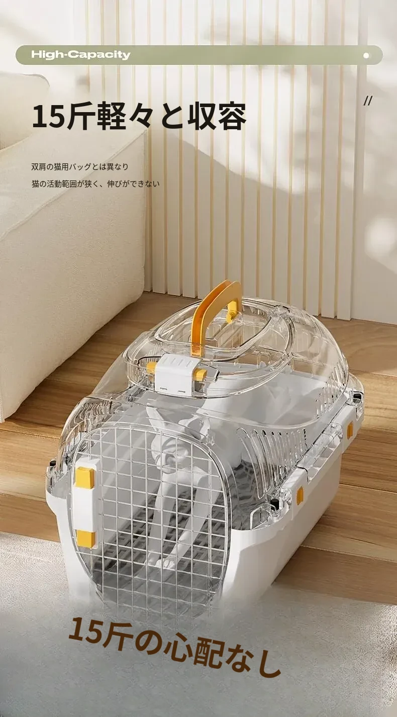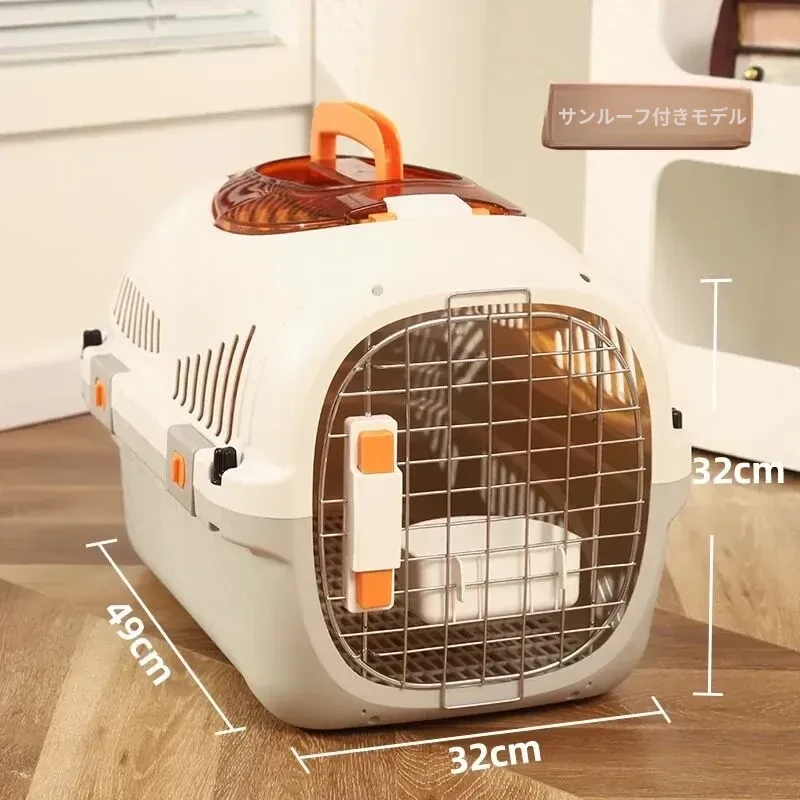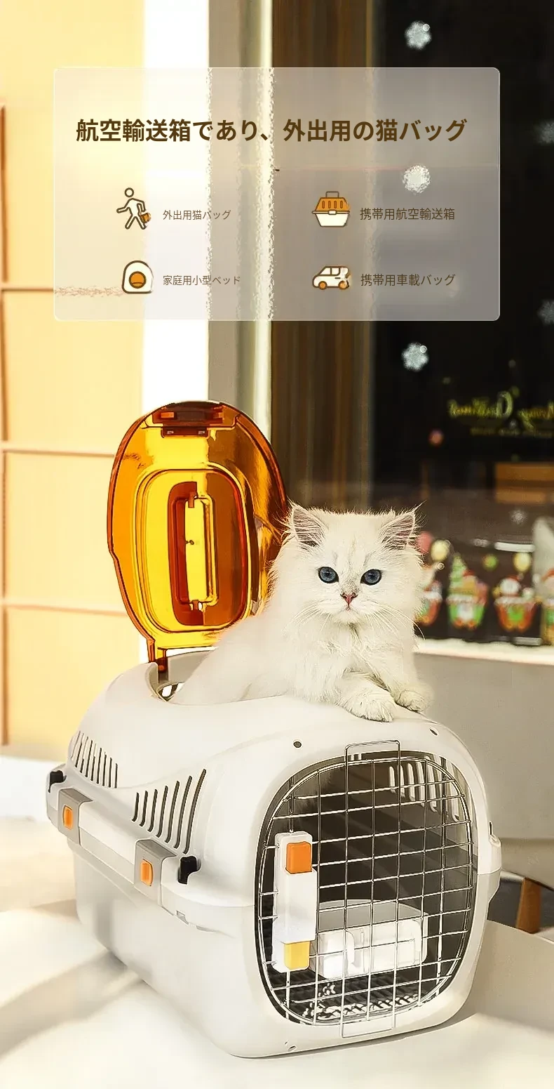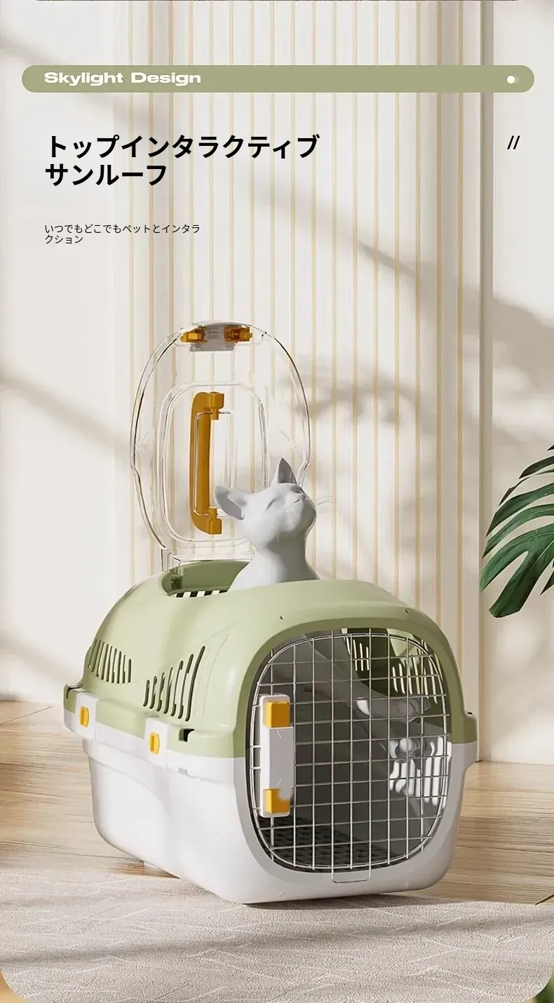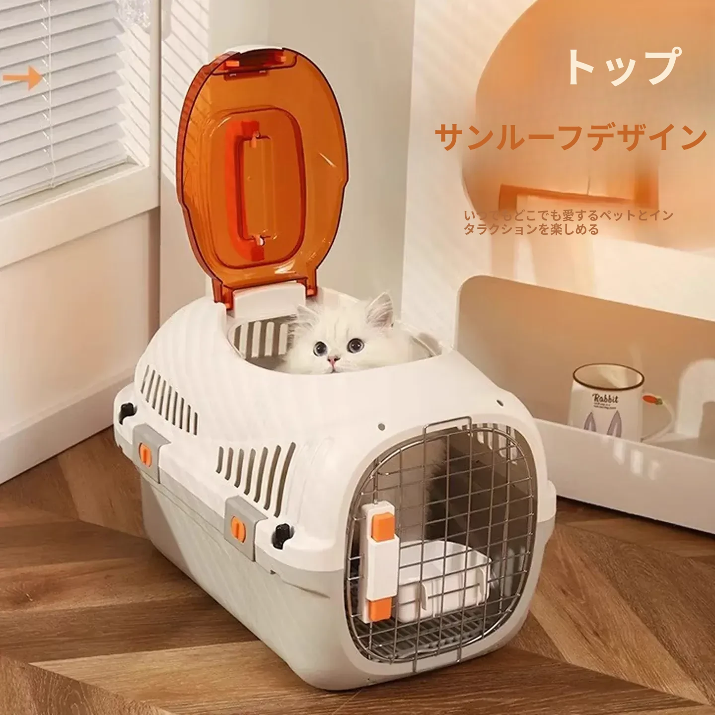 猫ちゃん用エアラインキャリーケース|お出かけに最適なポータブルキャリーバッグ|犬にも対応|天窓付きペットスペースで快適移動を実現!