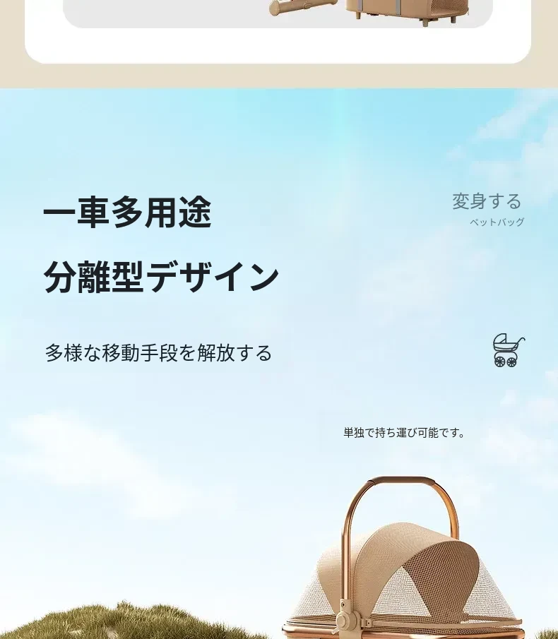 ペットキャリー専用の猫バッグ!外出に便利な折りたたみ可能な小型犬用、取り外し可能なデザインで、猫ちゃんとワンちゃんが快適にお出かけできます!手押し車としても使える多機能ペットカート!