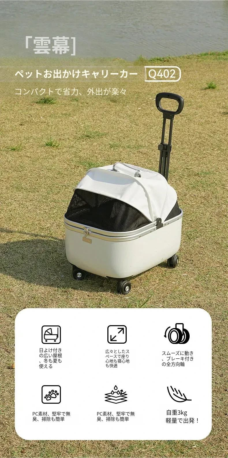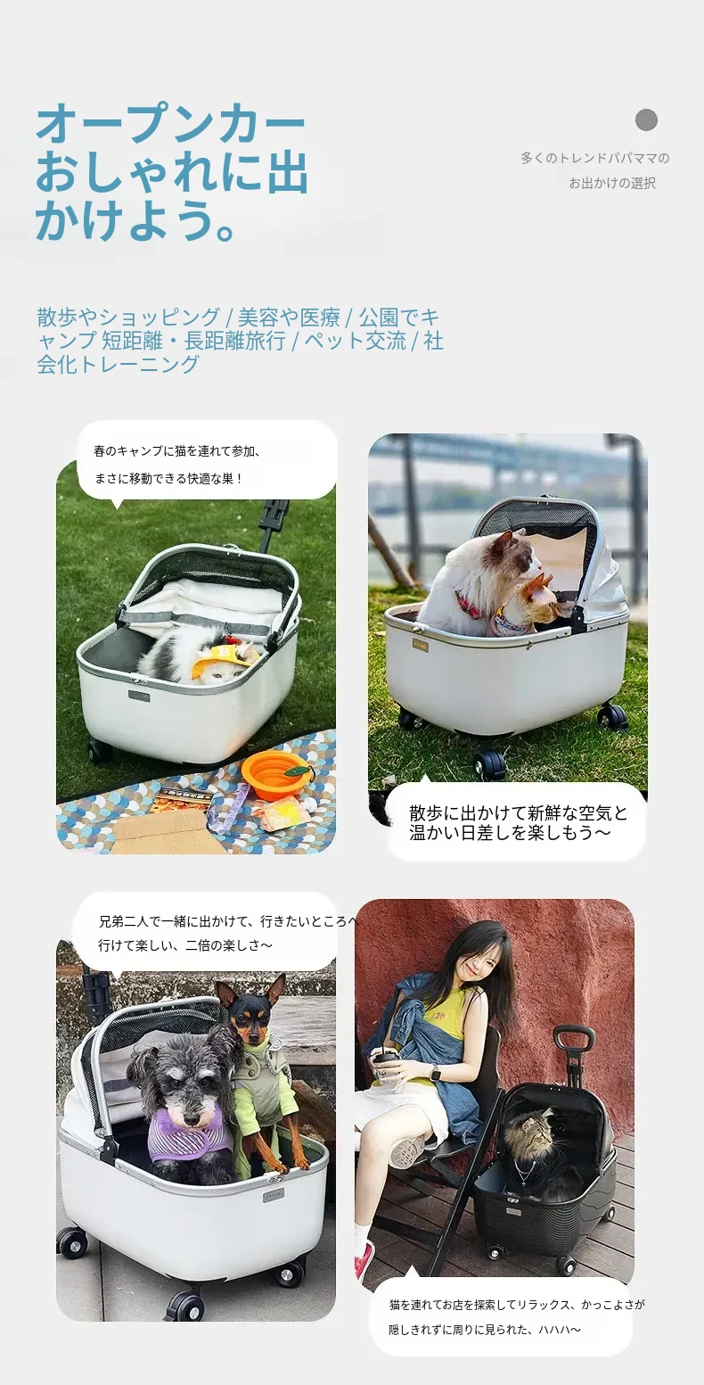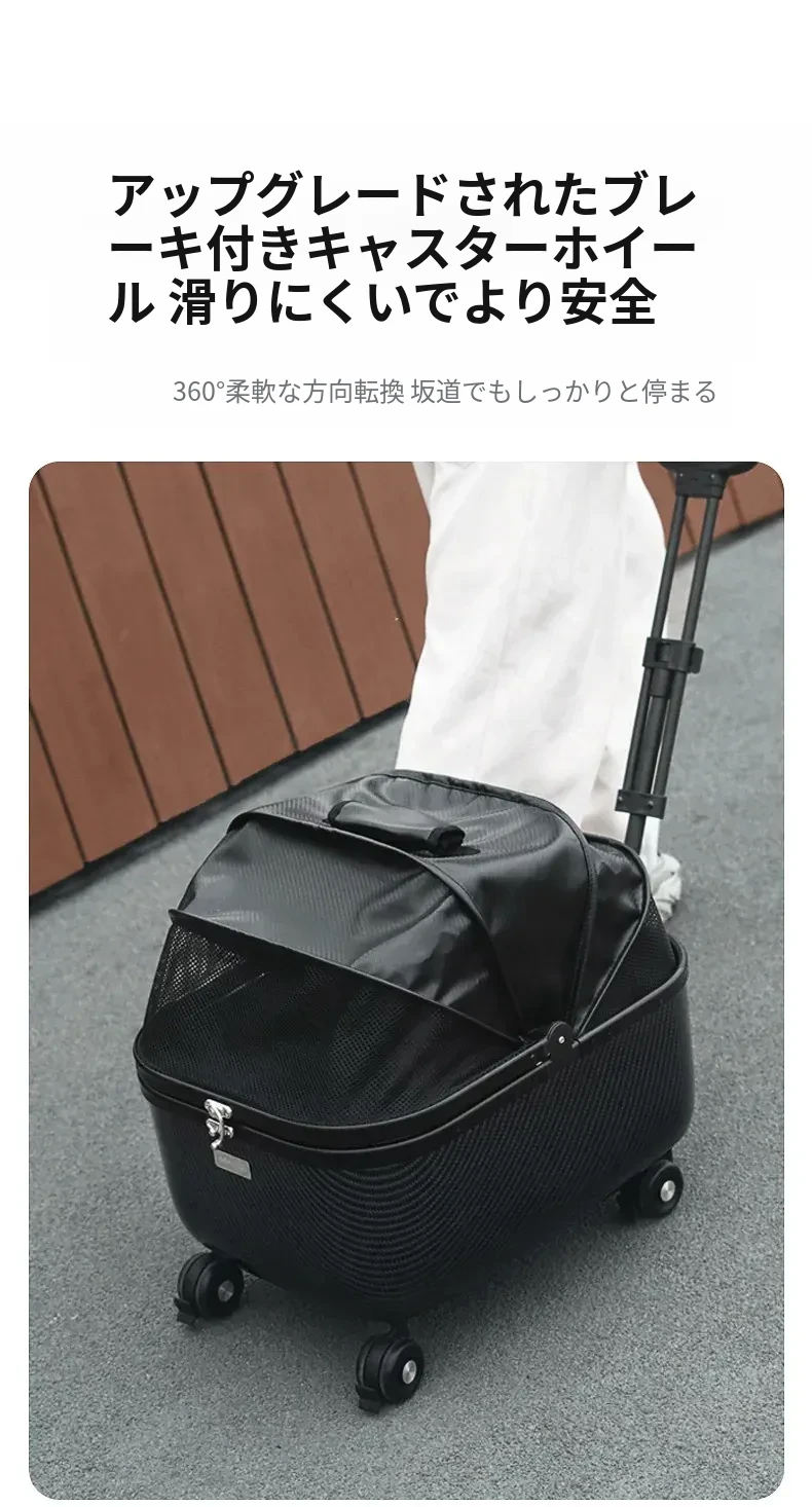 ペット用キャリーカート 小型犬・猫対応 お出かけ便利なハンドル付き ベビーカー型 散歩用・旅行用に最適なトロリーキャリー バッグ付きで持ち運びも楽々!