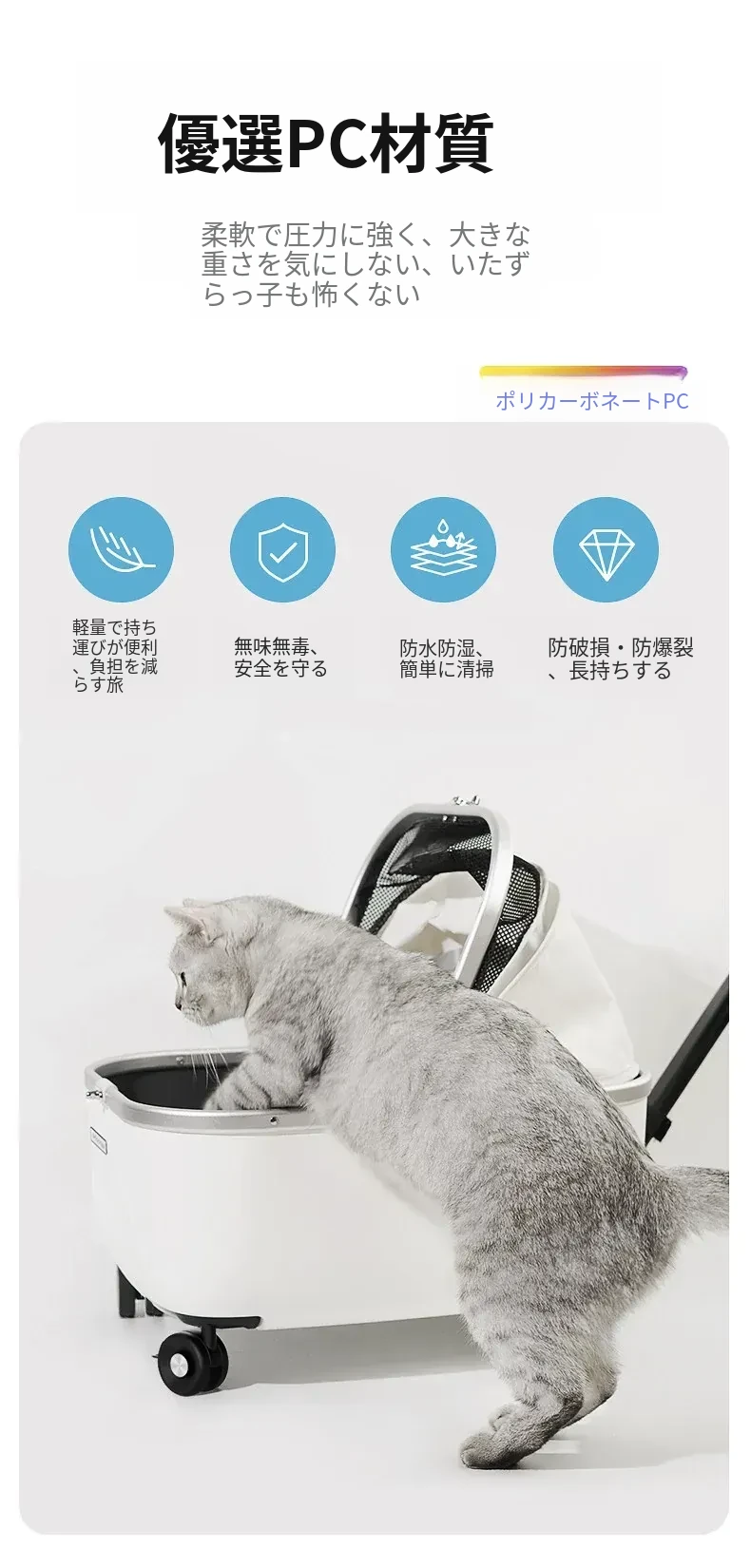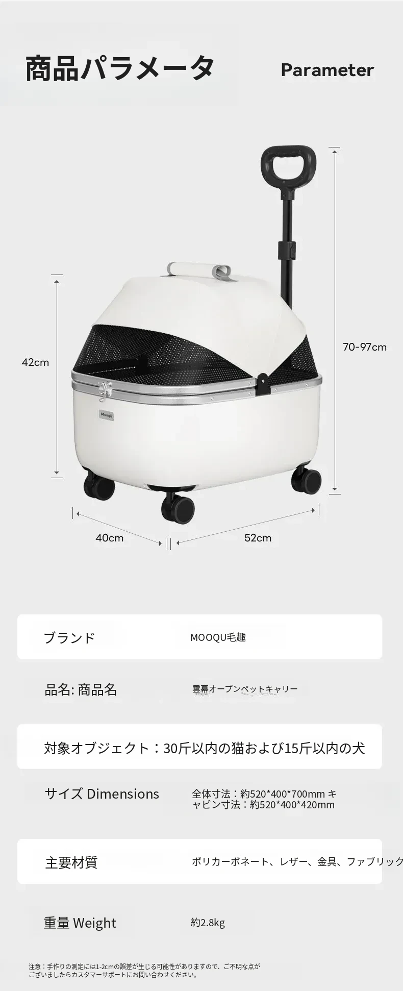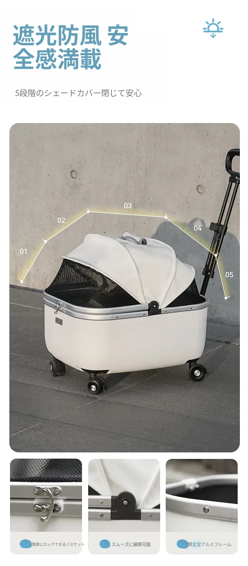 ペット用キャリーカート 小型犬・猫対応 お出かけ便利なハンドル付き ベビーカー型 散歩用・旅行用に最適なトロリーキャリー バッグ付きで持ち運びも楽々!