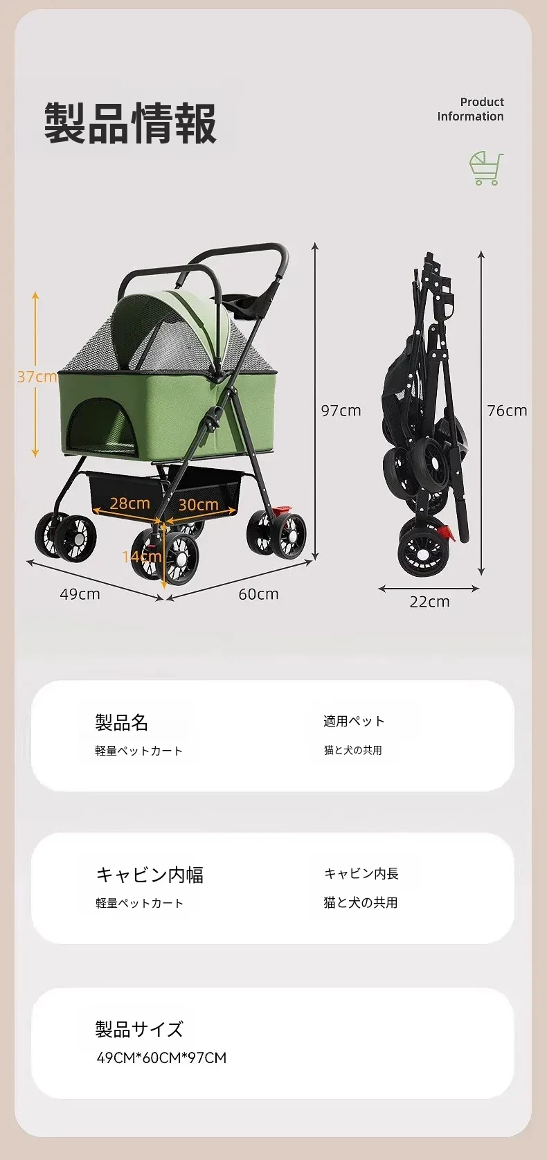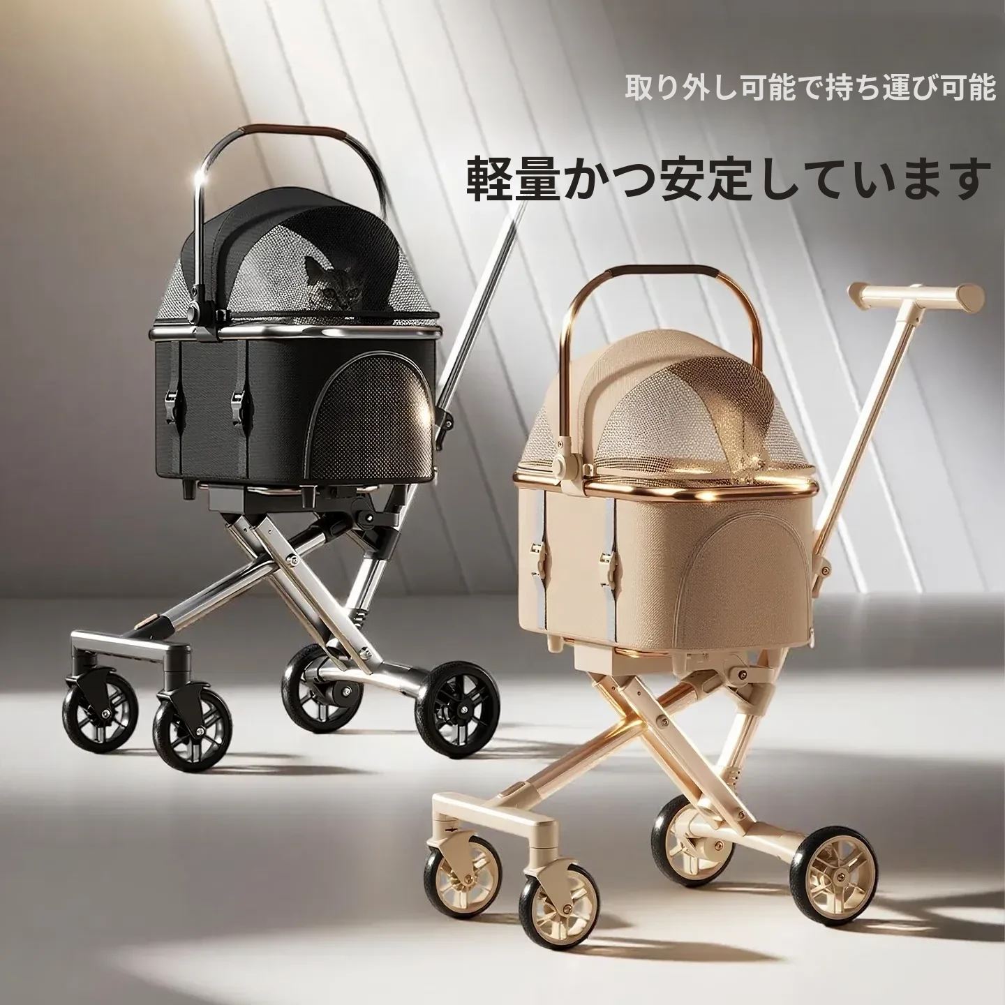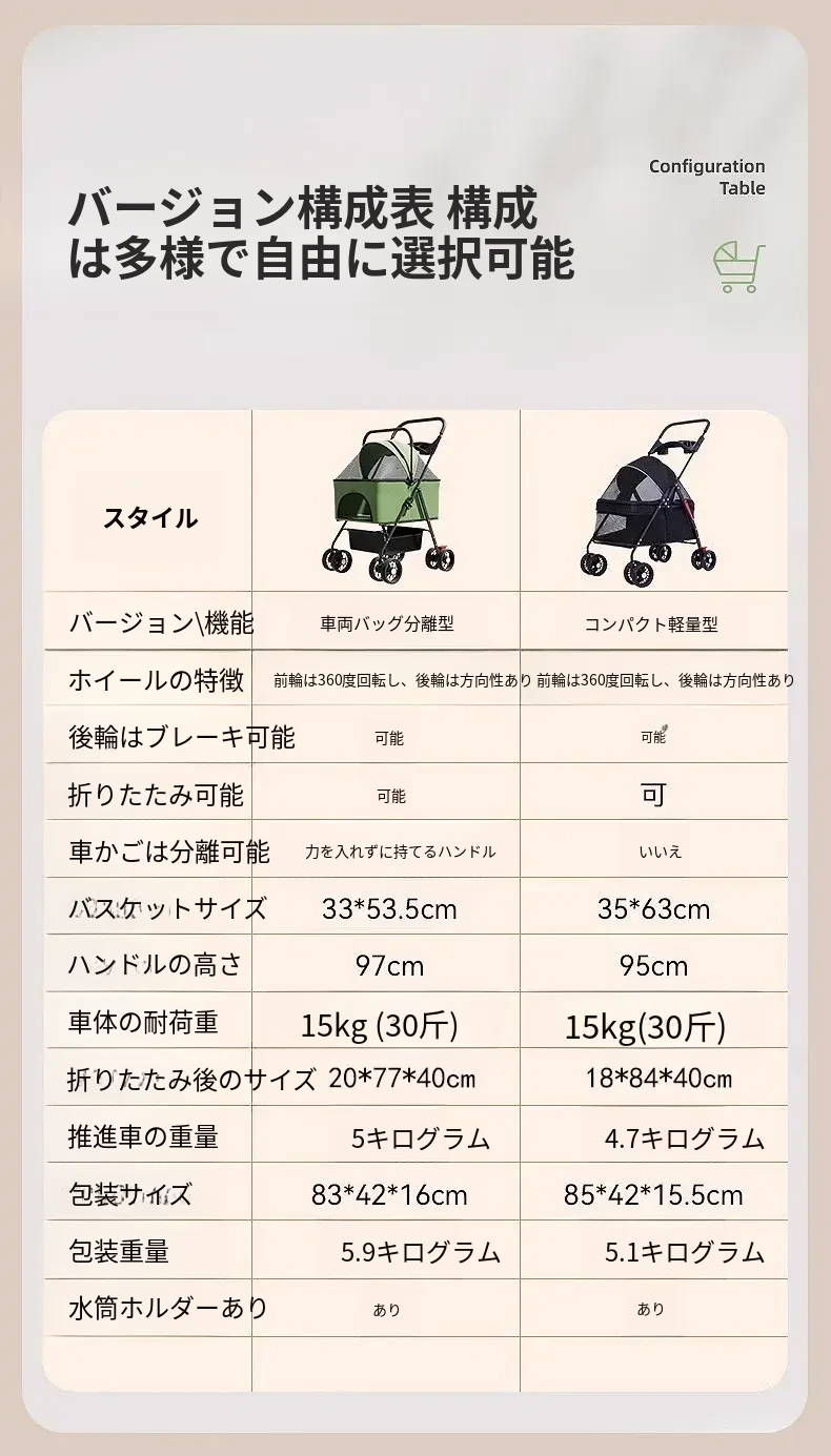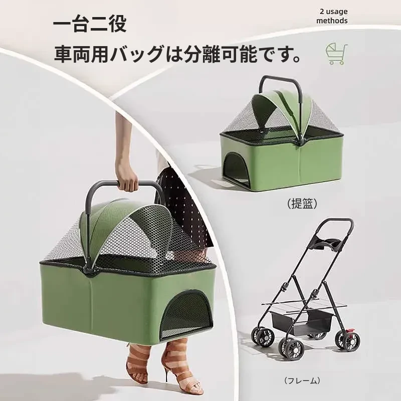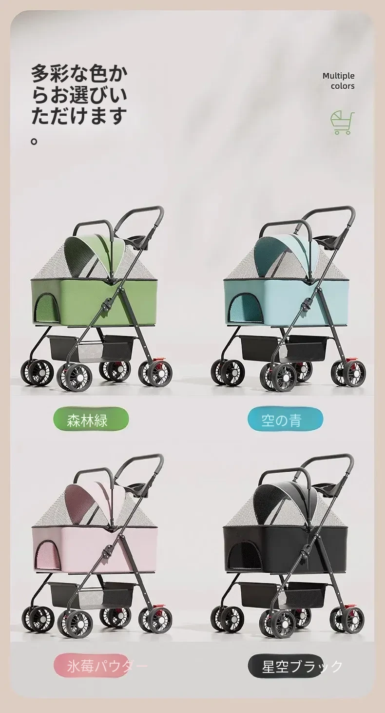 ペット用折りたたみカート - 外出に便利な軽量デザイン!犬や猫のための通気性のある小型車椅子。愛するペットと一緒に快適なお散歩を楽しもう!