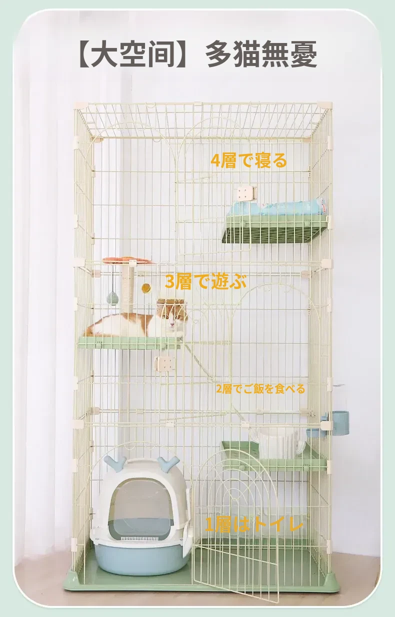 超大スペースの猫用ケージ!2階建て・3階建ての豪華キャットハウスで、猫ちゃんも大満足!快適な住まいを提供する猫用品、家でのリラックスタイムを演出します。