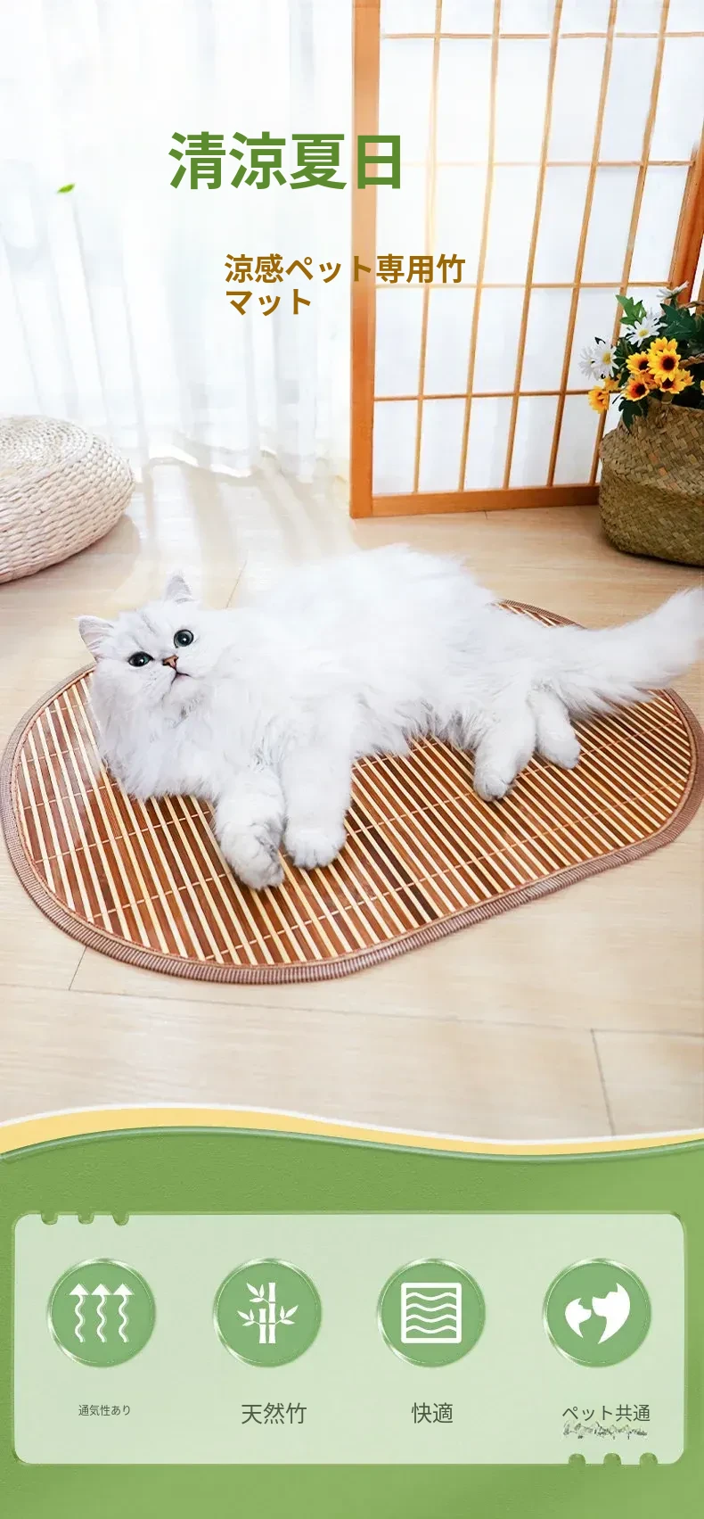 【特価款】折りたたみ可能な縁付き竹マットペットクールマット-良質な素材
