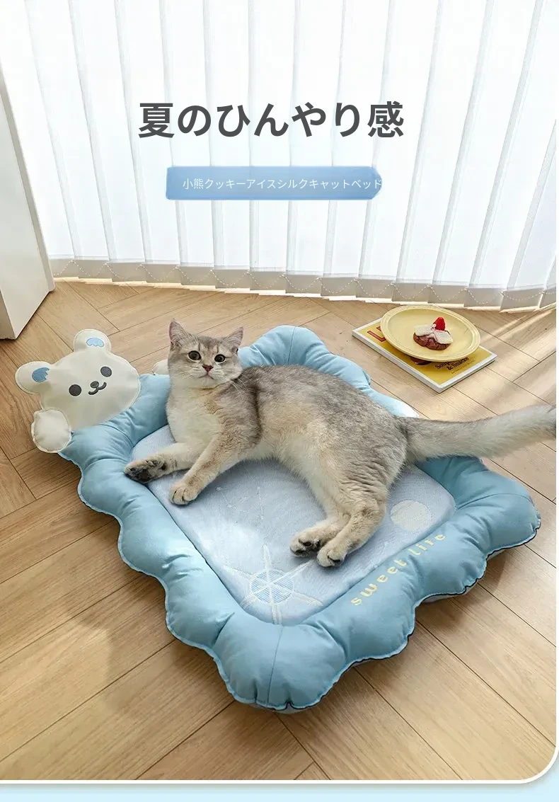【新商品で売上アップ】アイスシルク猫マット-くまクッキー