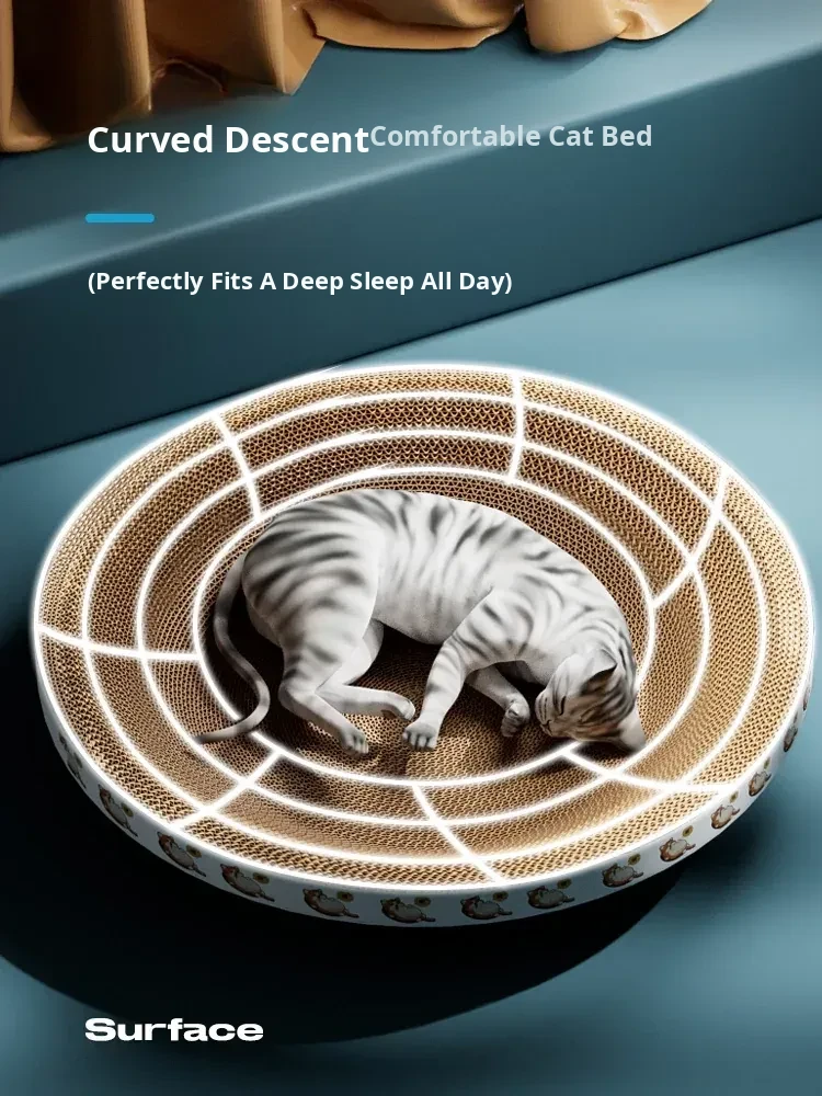 Super Durable Cat Scratching Bed - Large Round Corrugated Cardboard Cat Lounge & Scratch Pad for Your Feline Friends, No Shedding, Perfect for Play and Relaxation