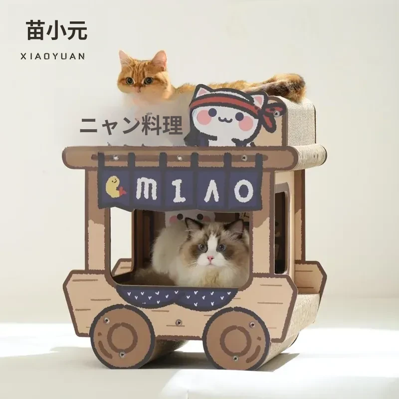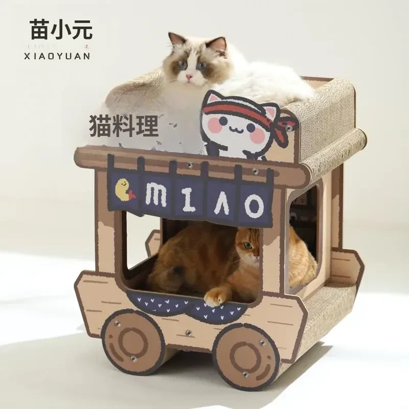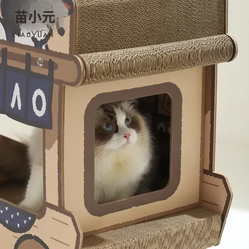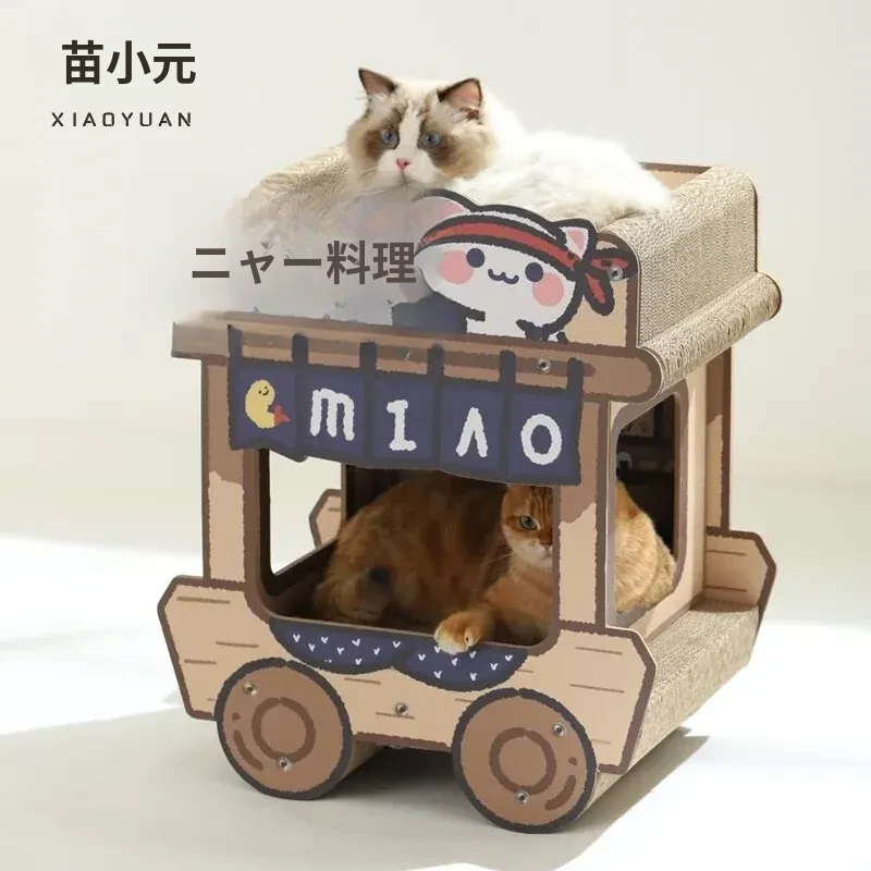 喵小元キャットスクラッチャー&スーパー大猫ハウス一体型!耐久性抜群で毛が落ちにくい!立てて使えるソファ型の猫爪板で、あなたの猫ちゃんも大満足!