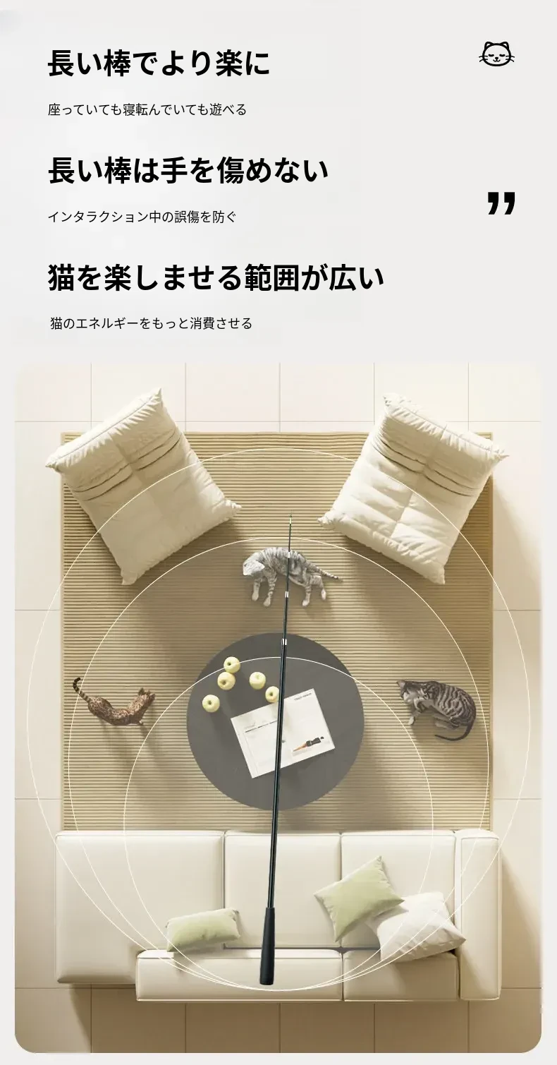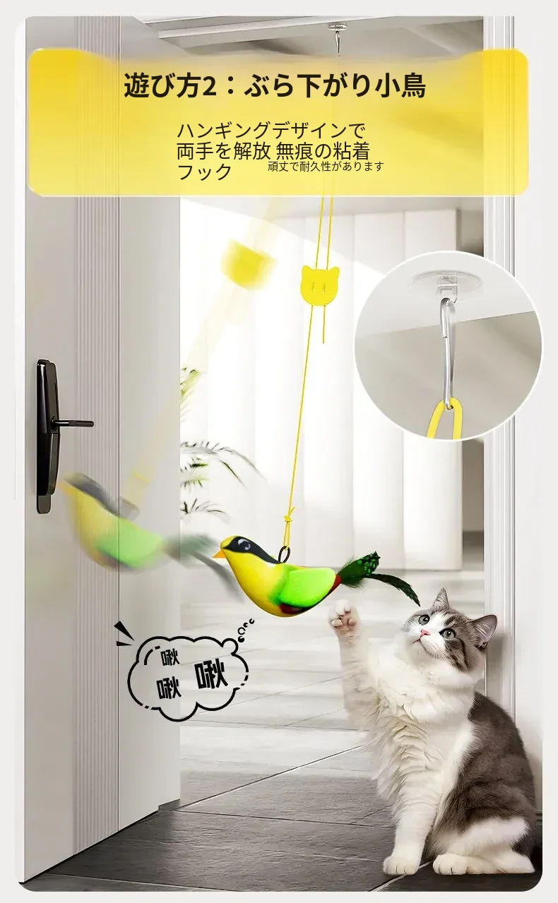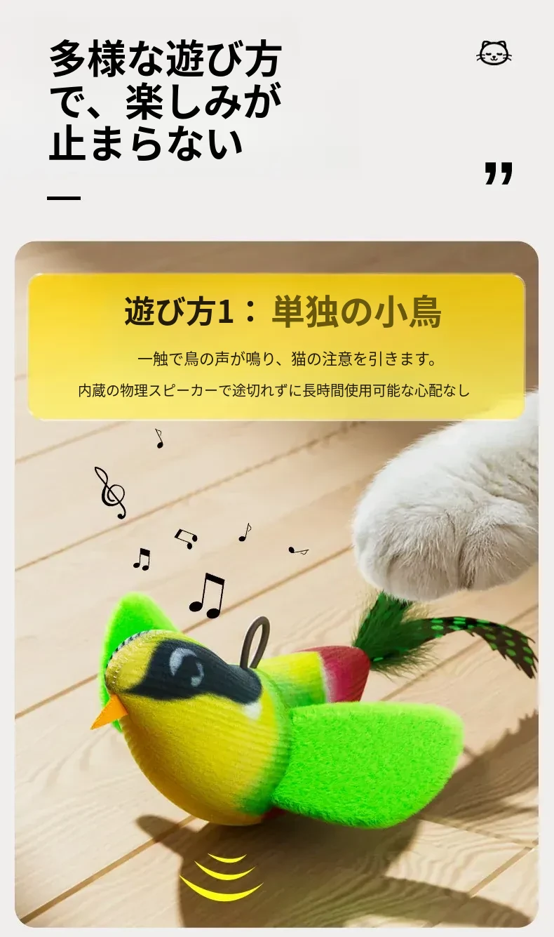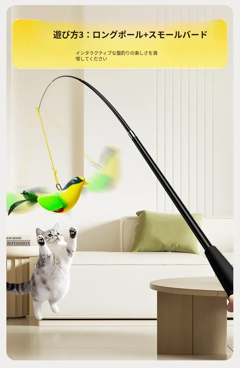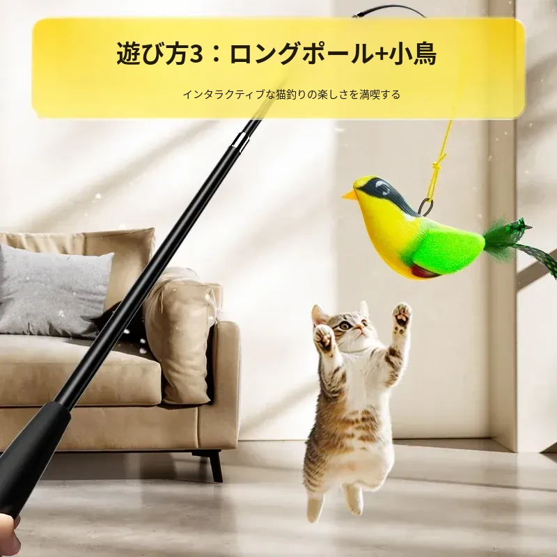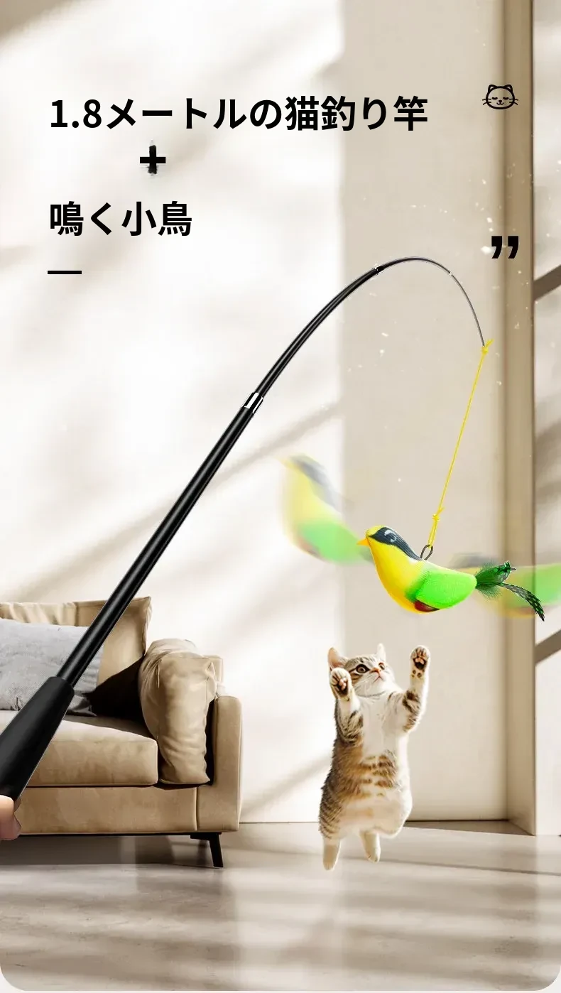猫ちゃんを夢中にさせる!伸縮可能なロングキャットボールで、小鳥の声とともに遊ぼう!自分で楽しむこともできる遊び道具、かわいい子猫やペット猫に最適!秋の気分を満喫しながら、猫ちゃんとの楽しい時間をお届けします。