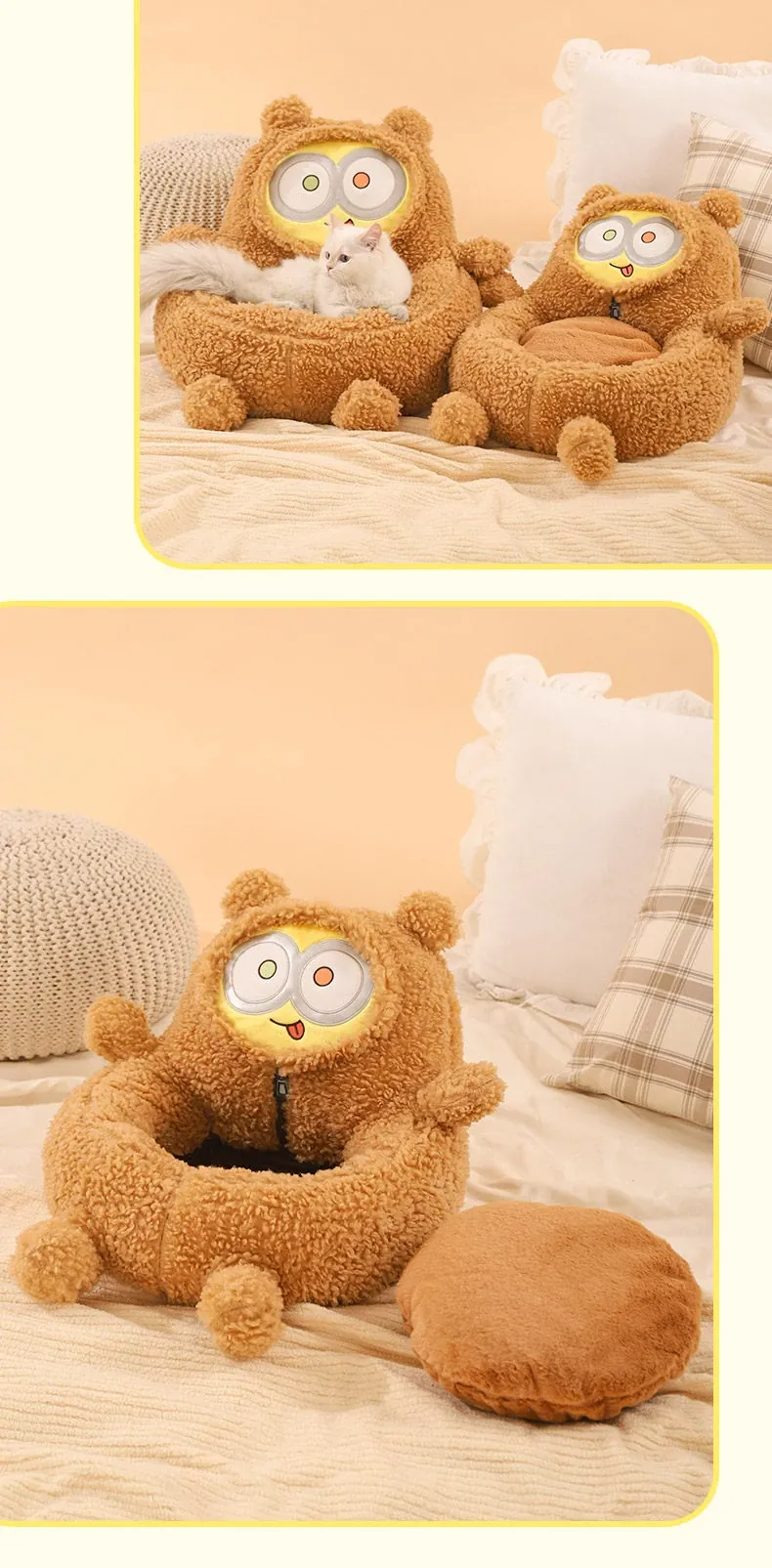 冬の寒さに最適!小型犬用の厚手半閉鎖型ドッグベッド - テディやビションフリーゼにぴったりの洗えるペット用ベッド。快適で暖かい眠りを提供します!