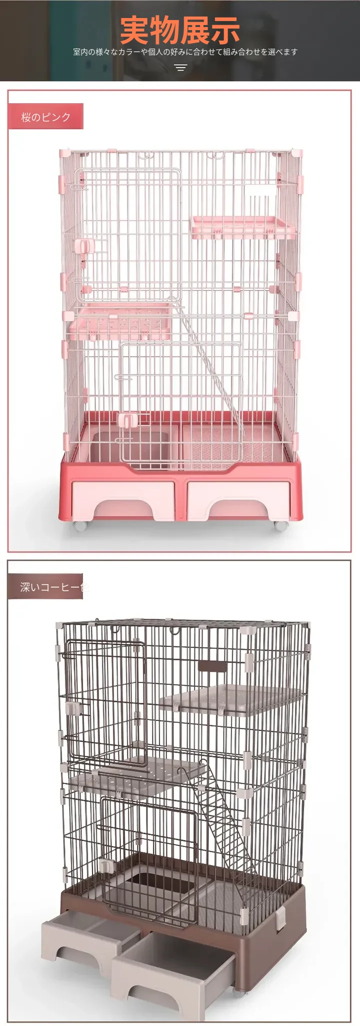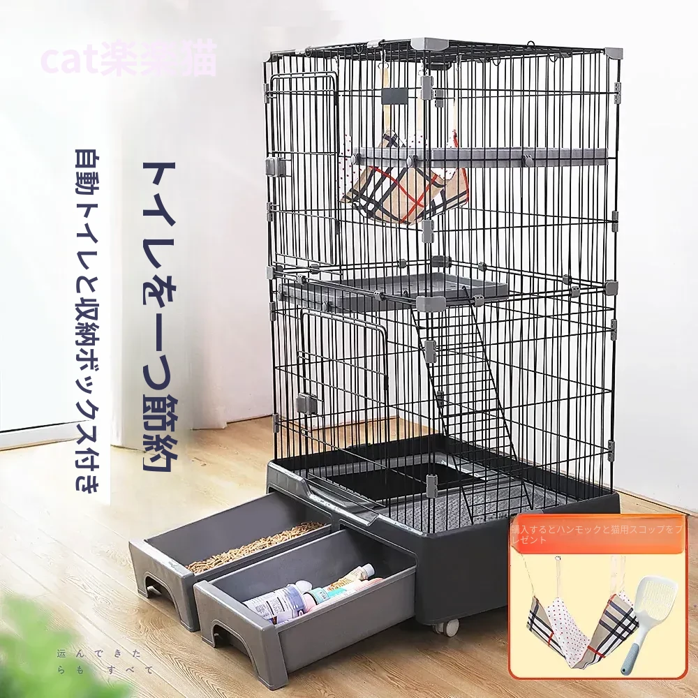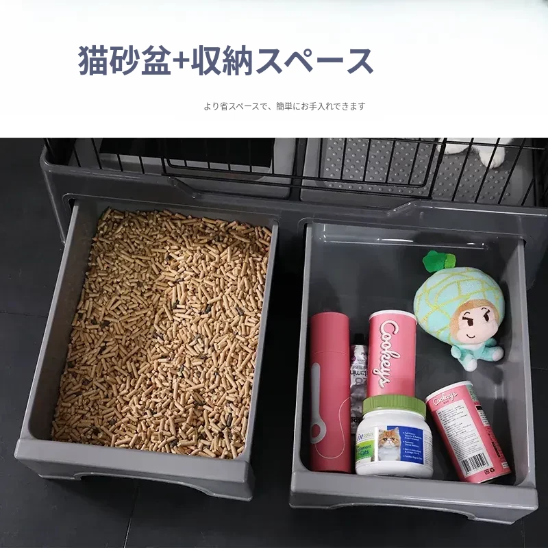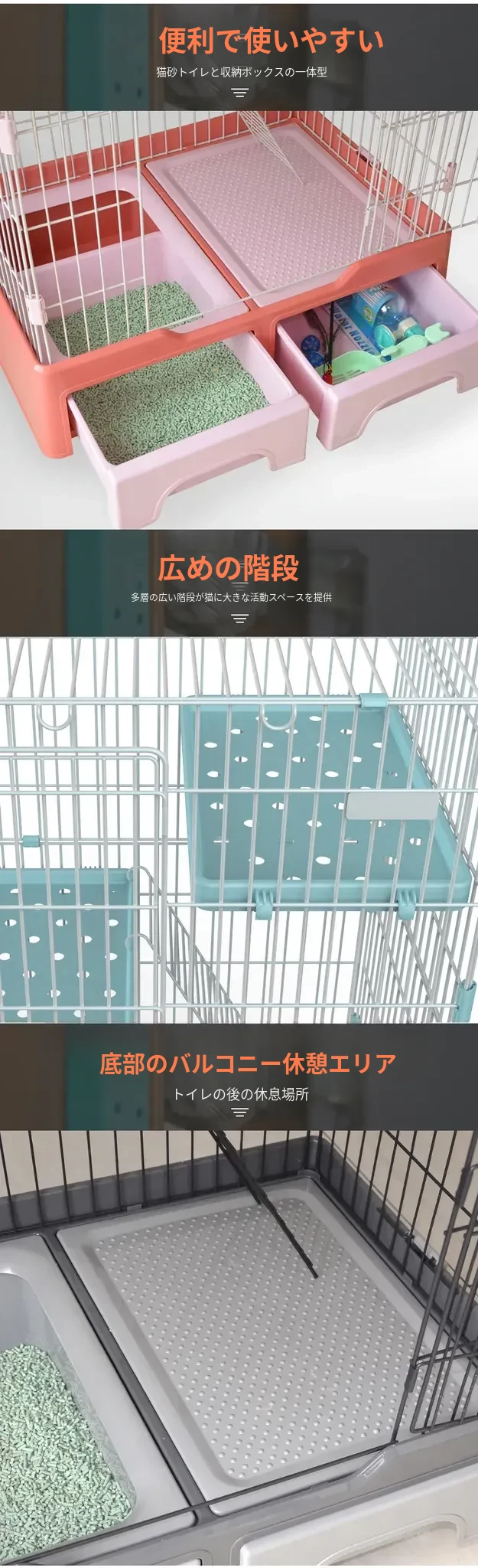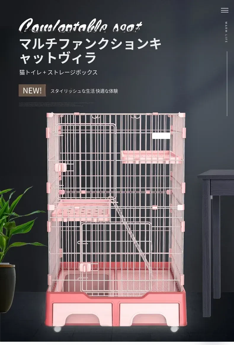 3段階の引き出し付きキャットハウス - 猫が快適に暮らせるペット用ヴィラ!トイレ付きで清潔さを保ち、室内で安心して過ごせる理想的な住まい。あなたの猫ちゃんに最高の空間を提供しましょう!