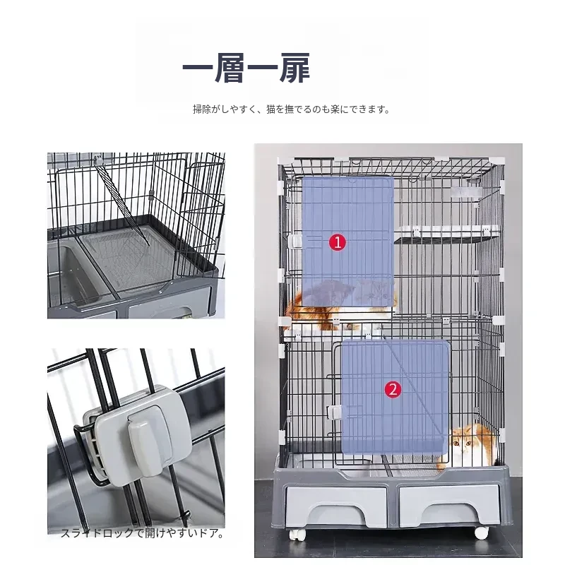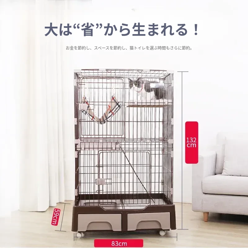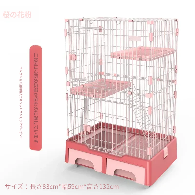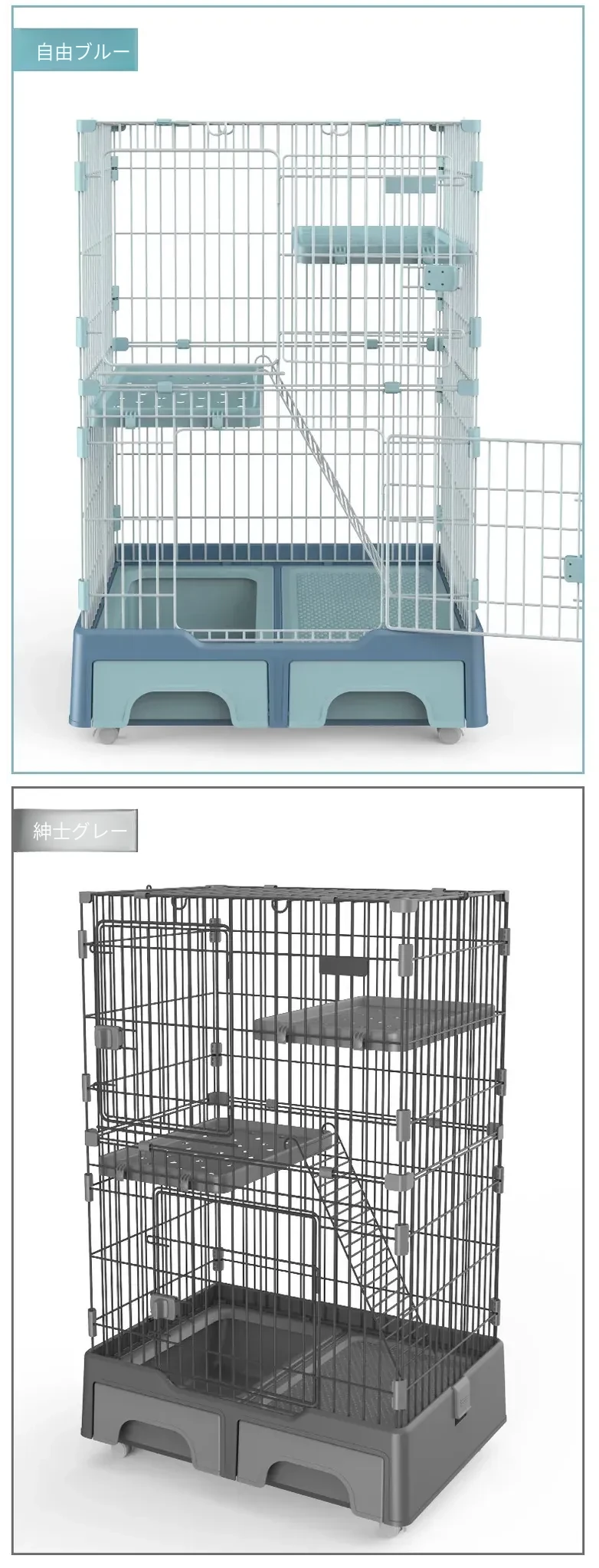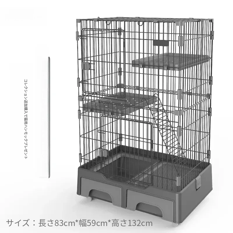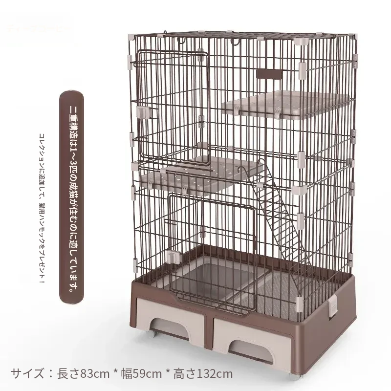 3段階の引き出し付きキャットハウス - 猫が快適に暮らせるペット用ヴィラ!トイレ付きで清潔さを保ち、室内で安心して過ごせる理想的な住まい。あなたの猫ちゃんに最高の空間を提供しましょう!