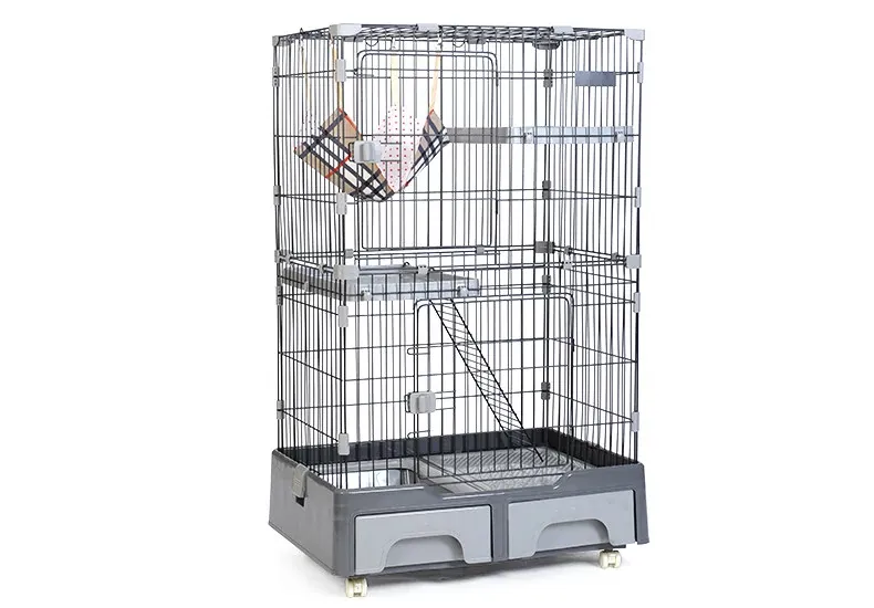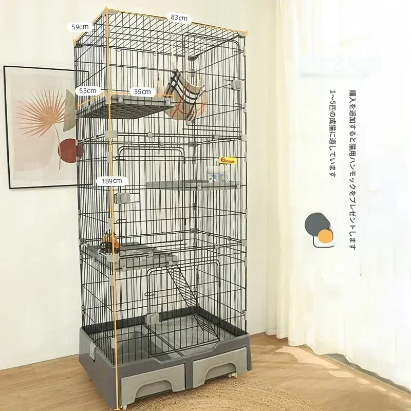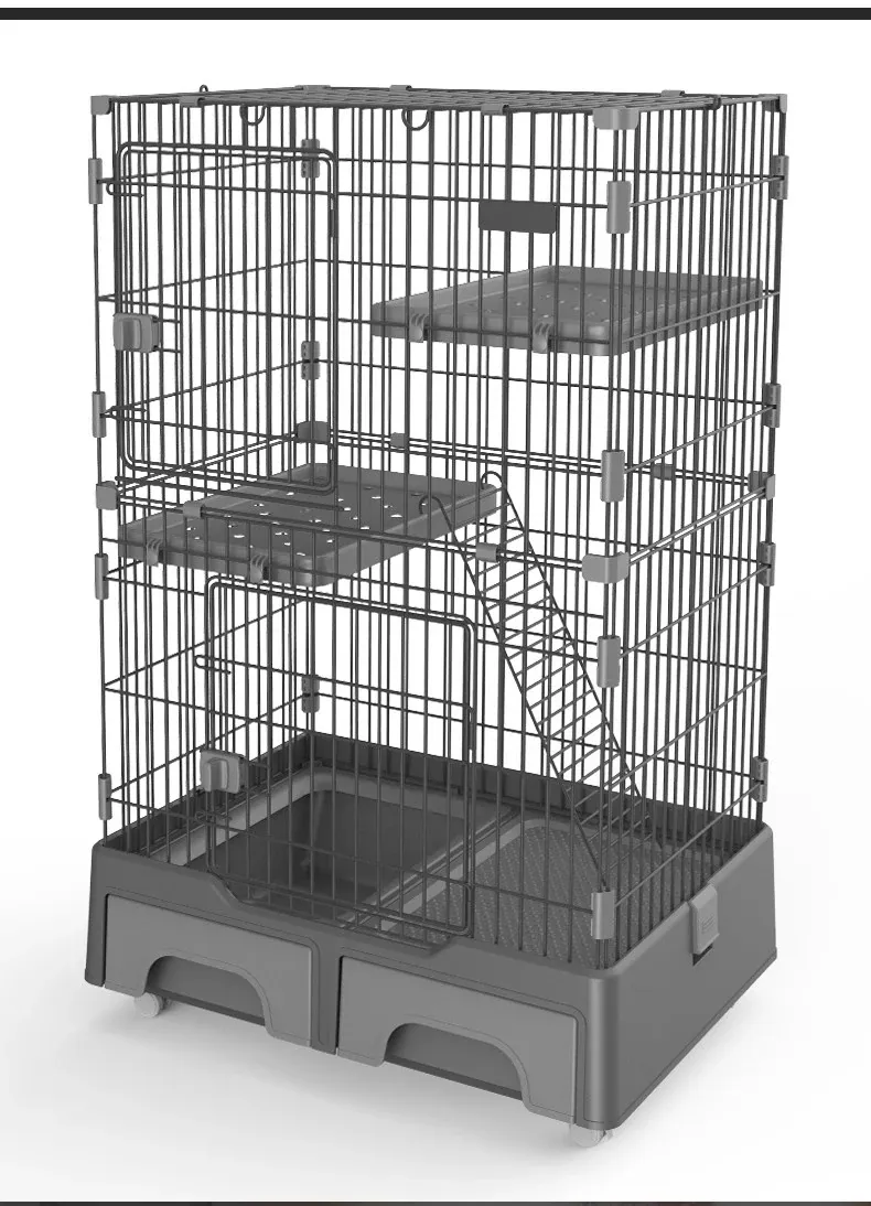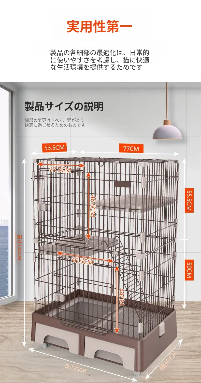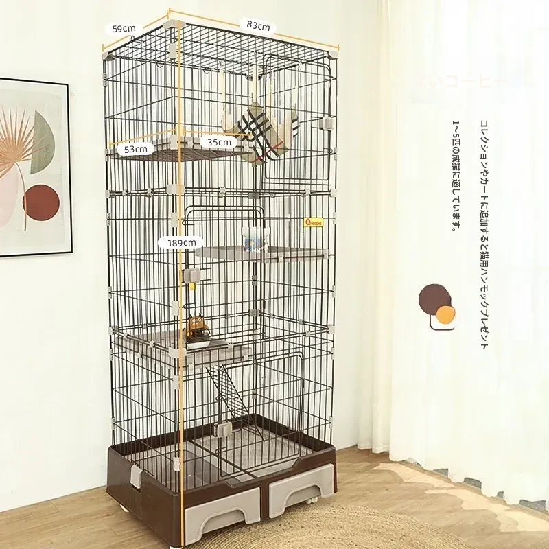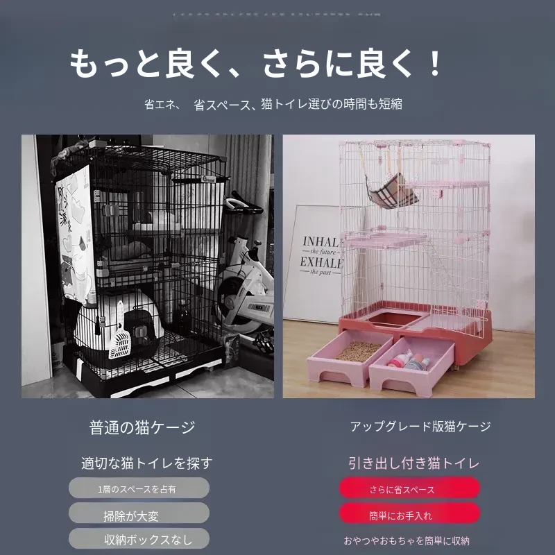 3段階の引き出し付きキャットハウス - 猫が快適に暮らせるペット用ヴィラ!トイレ付きで清潔さを保ち、室内で安心して過ごせる理想的な住まい。あなたの猫ちゃんに最高の空間を提供しましょう!