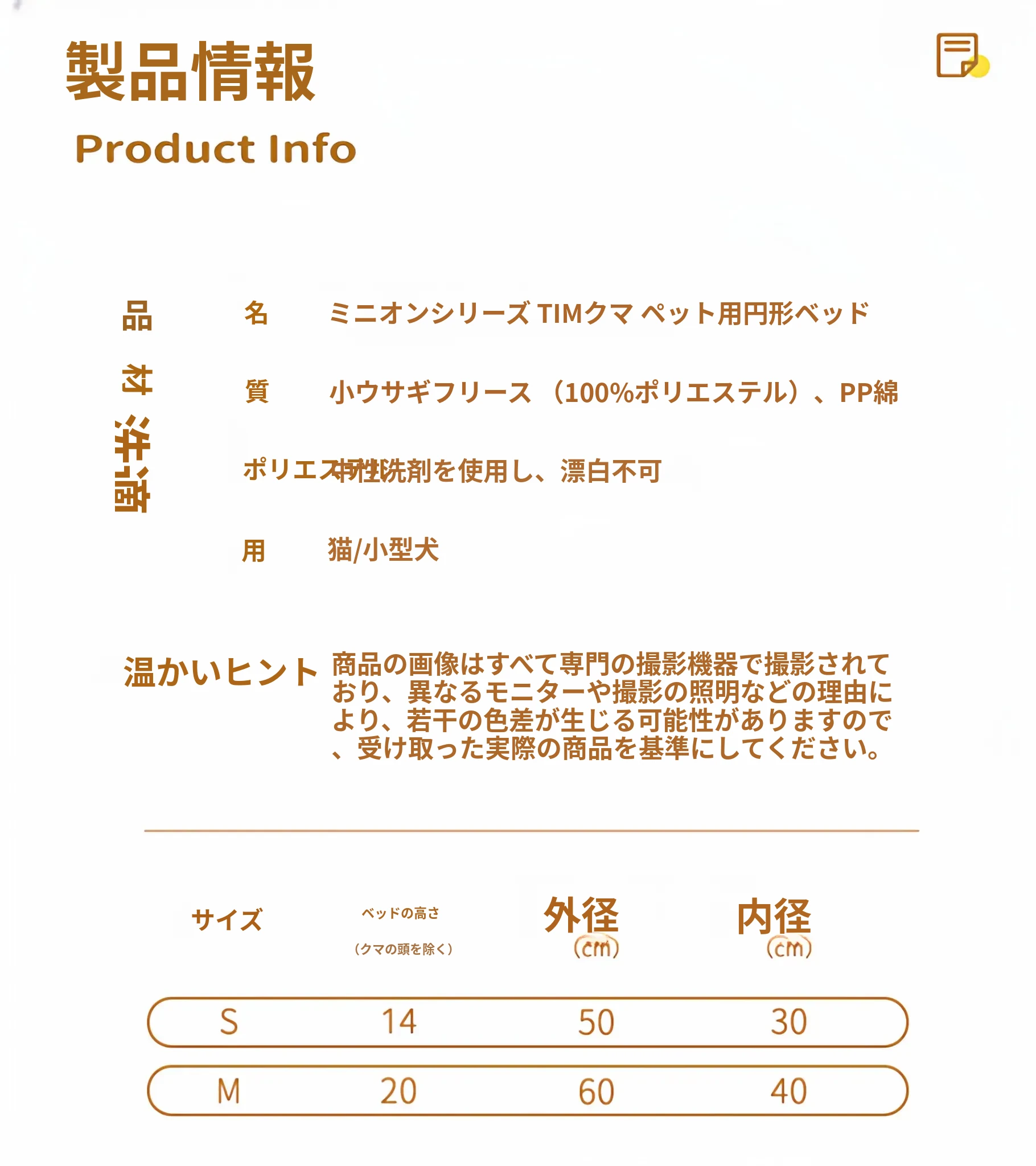 ミニオンTIMクマペット丸型ベッド S[50*50*14]