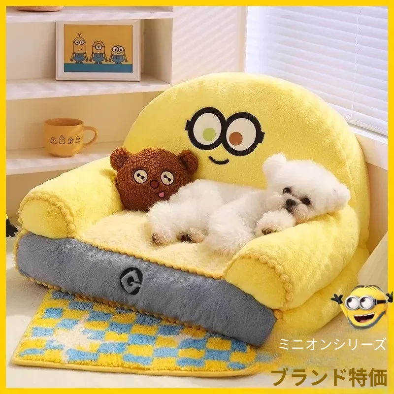 ミニオンTIMとボブのペット用深い眠りのソファ型ベッド!快適な猫の巣、子猫や小型犬に最適な居心地の良いおうち。あなたの愛するペットに最高の快適さを提供します!